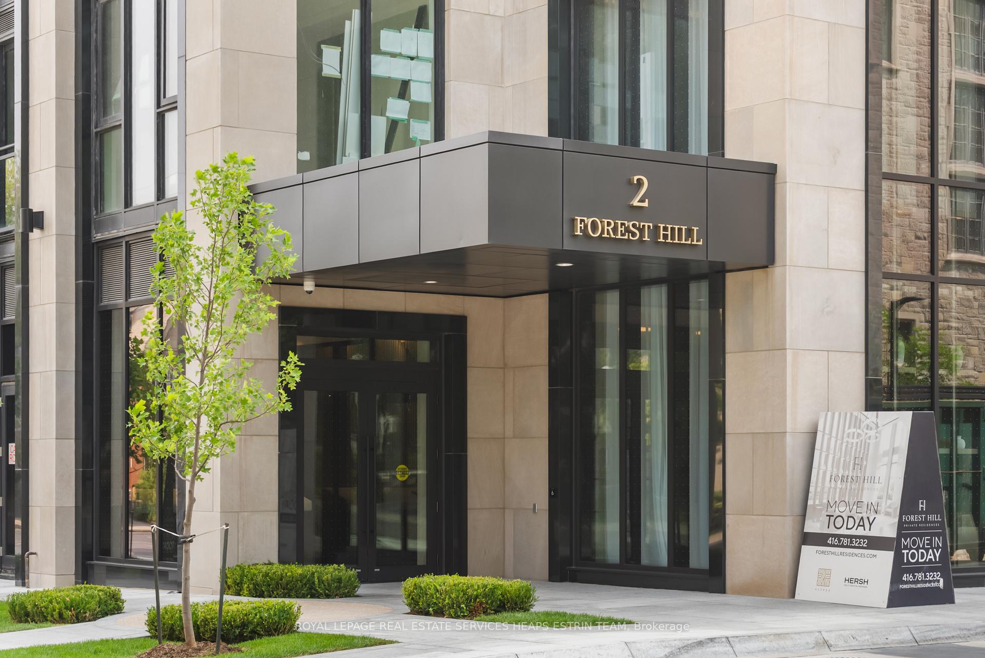 Experience the unmatched offering of a luxurious retreat that is purely Forest Hill. A sophisticated building situated in one of the most prestigious neighbourhoods in the city. Forest Hill Private Residences offers an array of exquisite features that most buildings could never replicate. Arrive home to upscale valet service that will park your car under the porte-cochere, and enter the grand lobby with a concierge that offers an array of other five-star services from The Forest Hill Group. This boutique building is also paired with a tranquil indoor pool with wet & dry saunas, private wine collection and storage, a second Porter lobby, a grand dining room with room for 20 dining guests, and an entertainment room with indoor/outdoor living into a serene terraced garden oasis, paired with a fully equipped catering kitchen. Enter into the carefully designed "The Birch" suite, a spacious 2-bedroom-plus-den, 3-bathroom suite with over 1,700 square feet of interior living space. Complemented by numerous upgrades and a desirable corner suite layout, the suite offers all one can ask for. Dramatic floor-to-ceiling windows facing south with a private outdoor terrace with a gas line. An open custom-designed Cameo kitchen with sleek marble counters and backsplash, a generous center island and premium Miele appliances. A gorgeous marble fireplace that spans from floor to ceiling in the living room, upgraded premium engineered herringbone flooring throughout, both bedrooms with custom walk-in closets, and both with ensuite bathrooms featuring white porcelain stone flooring. Walk into the stunning primary ensuite surrounded by porcelain, your own separate water closet, a soaker tub, a large double vanity, and heated floors. This ultra-luxurious apartment offers unparalleled elegance and comfort, showcasing expansive living spaces, top-of-the-line finishes, and world-class amenities, all in the most prestigious location. Nothing compares to coming home at 2 Forest Hill Road.