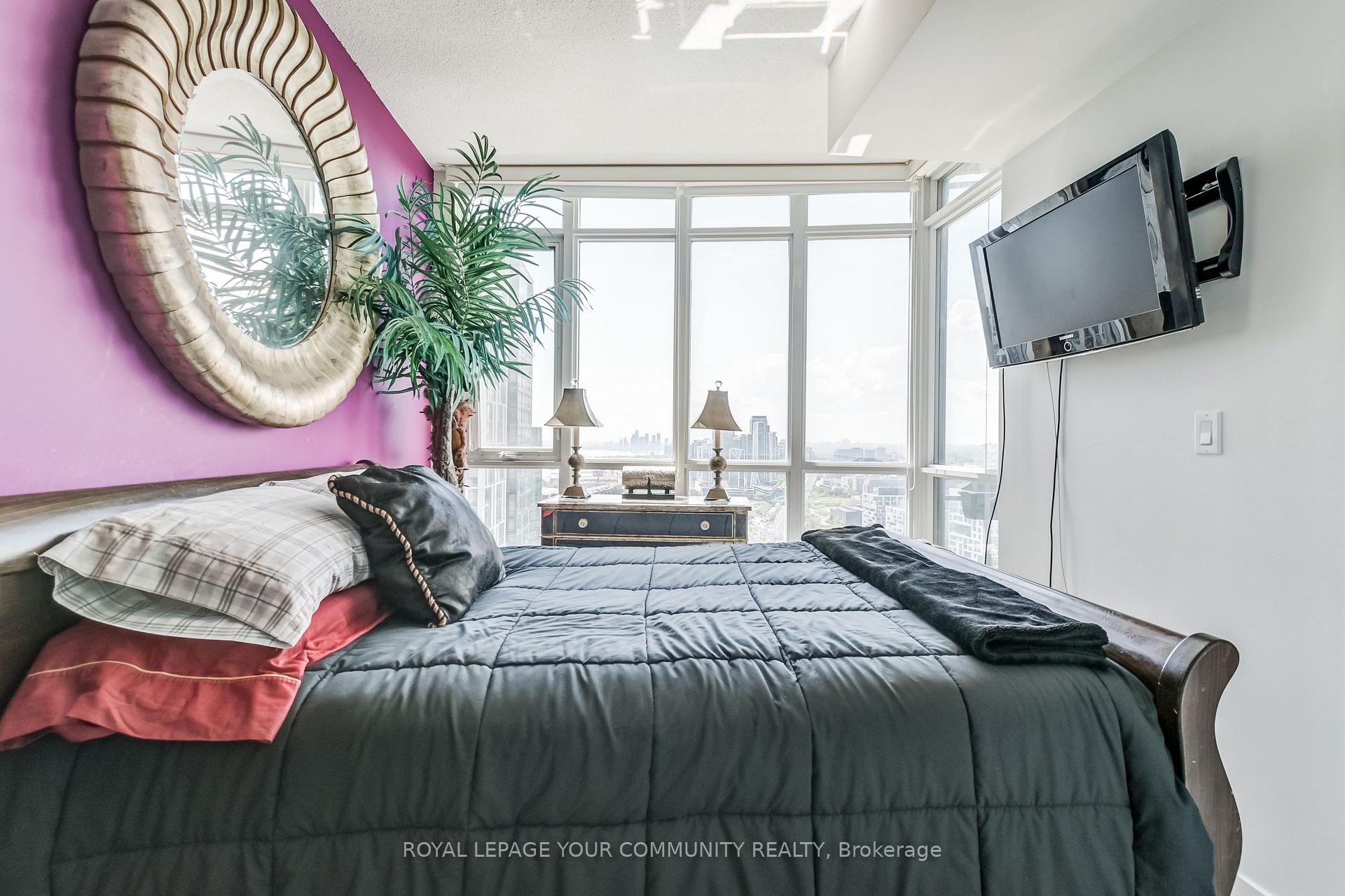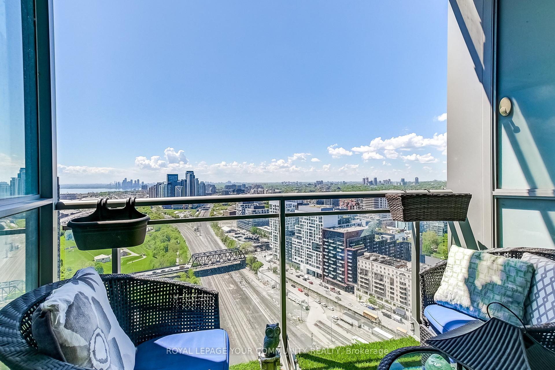 Experience unparalleled urban living in this exquisite 1+1 at 21 Iceboat Terrace. This thoughtfully designed 573 sqft residence boasts floor-to-ceiling windows & soaring 9-foot ceilings, creating an expansive & luminous atmosphere. Prepare to be captivated by breathtaking western views that stretch across the city, lake & historic Fort York. The spacious primary suite is a true sanctuary, featuring a luxurious 4-piece ensuite bathroom, abundant natural light & a substantial double closet. The versatile den offers endless possibilities easily transforming into a comfortable 2nd bedroom or your ideal work-from-home haven. Enjoy the convenience of included parking and a locker & indulge in a world-class array of amenities including a 24-hour concierge, squash courts, a 25M lap pool, steam rooms, aerobics/dance studio, hot yoga, fitness center, hot tub, spa, billiards, table tennis & an internet/Wi-Fi lounge. Your vibrant city lifestyle awaits!