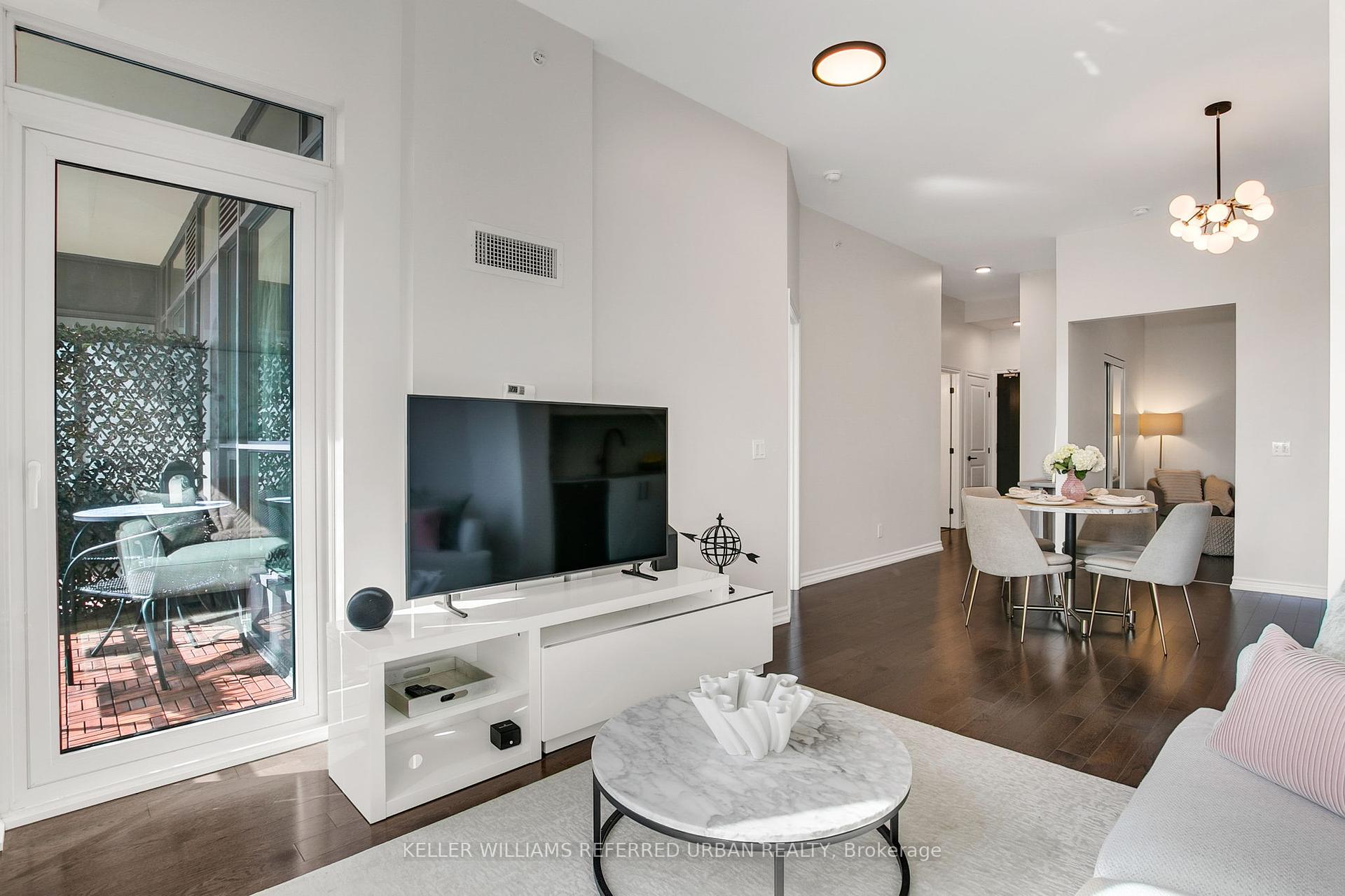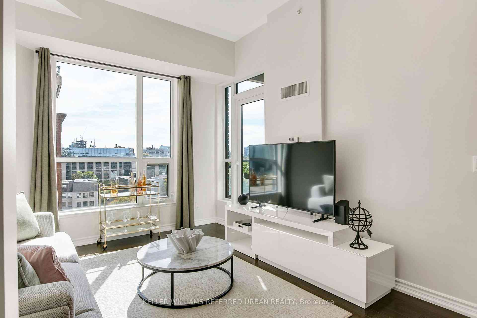 Welcome to Allure Condominiums, where boutique style meets midtown convenience. Suite 725 is a beautifully appointed 2-bedroom, 2-bathroom condo that blends elevated design with effortless comfort, perfect for those who want city energy without sacrificing calm.Suite 725 features 10-foot soaring ceilings, broad-plank hardwood floors, and a bright open-concept layout that flows seamlessly between the kitchen, dining, and living spaces. The condo has been renovated to include thoughtful upgrades such as fully updated kitchen cabinetry, updated bathroom vanities with a custom built-in medicine cabinet in the ensuite, upgraded glass shower doors in both bathrooms, custom floor-to-ceiling closets in the primary bedroom with added storage, and upgraded hardware throughout the entire condo.The modern kitchen is equipped with Miele appliances and granite countertops, combining timeless design with practical sophistication. Enjoy your morning coffee or evening glass of wine on the private balcony, where you can see the CN Tower and the treelined views of Chaplin Estates.Residents love the buildings sense of community, attentive management, and refined amenities, including a rooftop terrace, fitness centre, party lounge, and concierge service. Located just off Yonge & Davisville, you're steps from the subway, popular cafés & restaurants, June Rowlands Park, and the Beltline Trail, a local favourite for a stroll or morning run. Extras include: locker, in-suite laundry, premium finishes throughout, and Miele appliances that tie the space together with seamless sophistication.