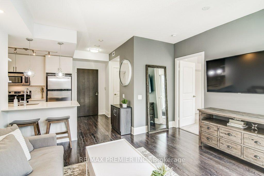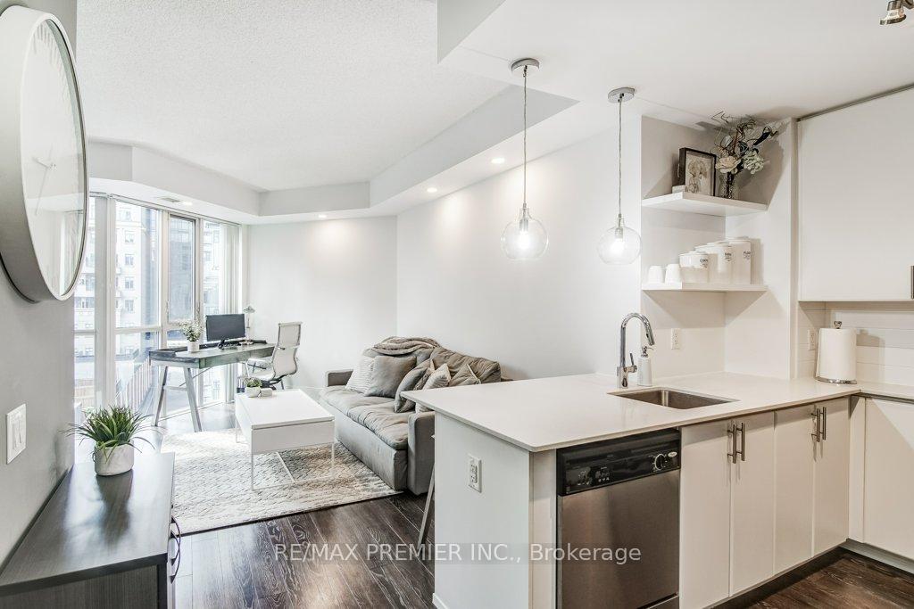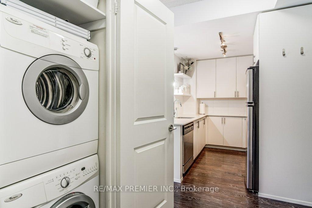 Luxury Living at The Reve by Tridel! Bright, spacious & elegant suite in this highly sought-after Condo, where upscale urban living meets contemporary design. Wow will be your first thought when you walk into this stylish 1-bedroom residence, which offers a modern open-concept layout with 9 ft. ceilings and thoughtful upgrades rarely found in similar units. Highlights: Open-concept kitchen with stainless steel appliances, breakfast bar & abundant counter space. Newer built-in dishwasher, and washer & dryer (2022). Spacious bedroom with floor-to-ceiling windows & double closet. Designer lighting, upgraded flooring, and elegant finishes throughout. Enjoy the CN Tower city skyline views! Locker included for convenient extra storage. The building amenities represent a lifestyle: a fully equipped fitness centre, media room, party/meeting room, rooftop terrace with city views, guest suites, and ample visitor parking. Prime downtown King St West location, just steps to Stackt Market, restaurants and shops, Rogers Centre, Waterfront/Queens Quay, Chinatown, and transit options, everything at your doorstep! This is your opportunity to own a piece of stylish downtown living in one of Tridel's finest boutique developments. Too many features to list, see the full marketing package for details!