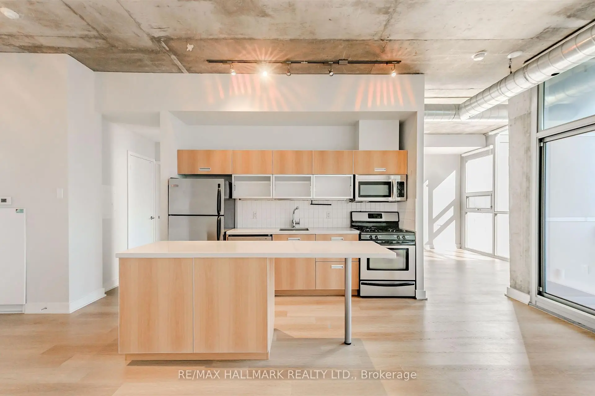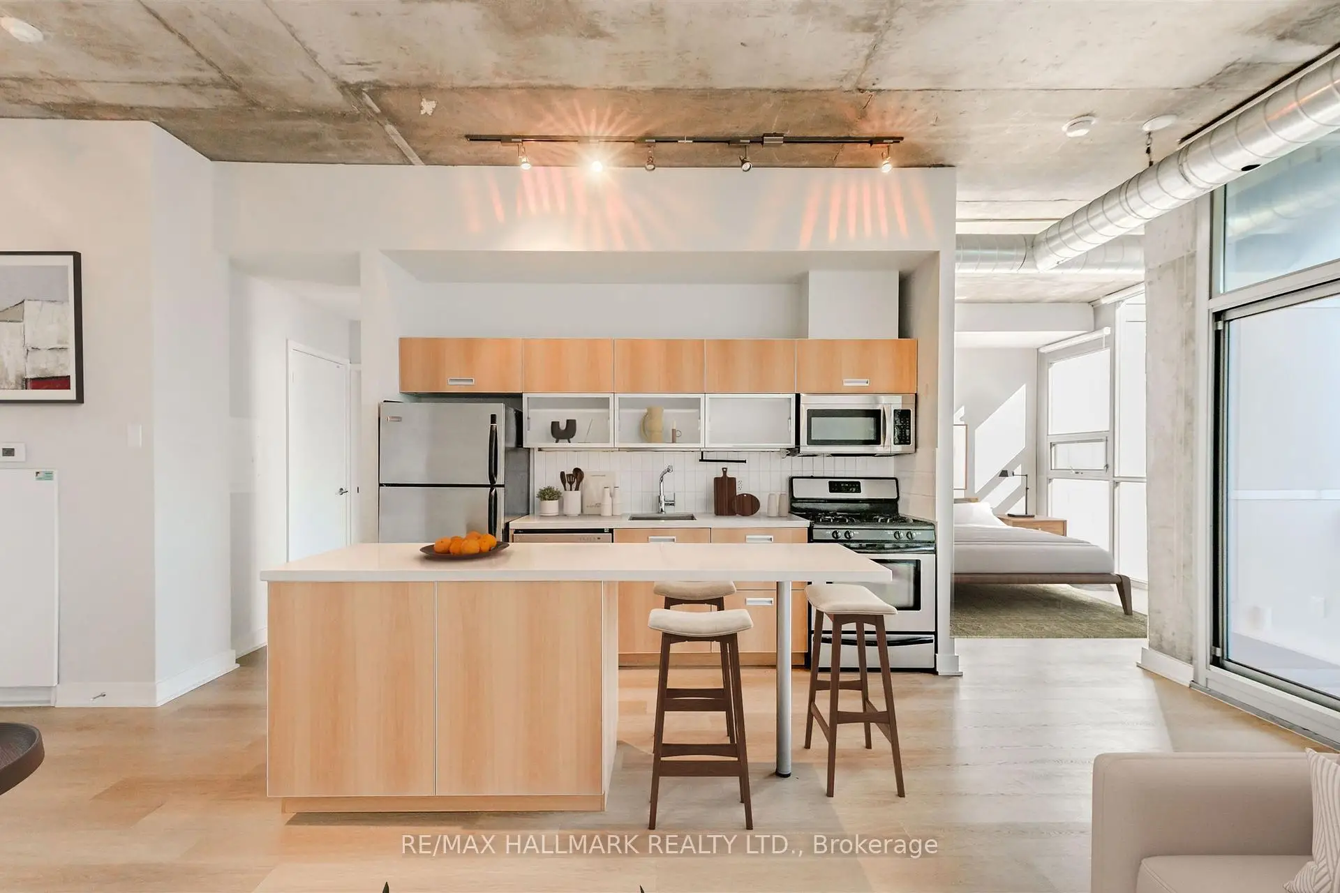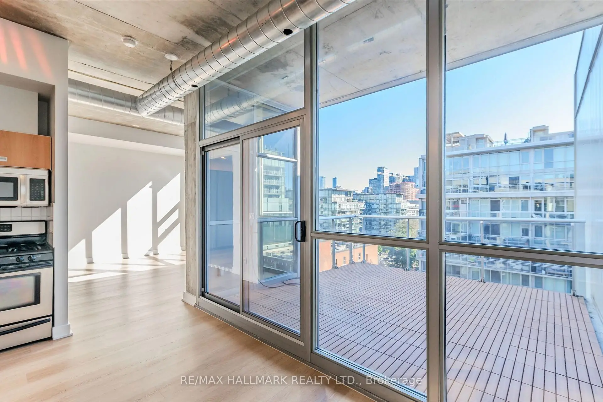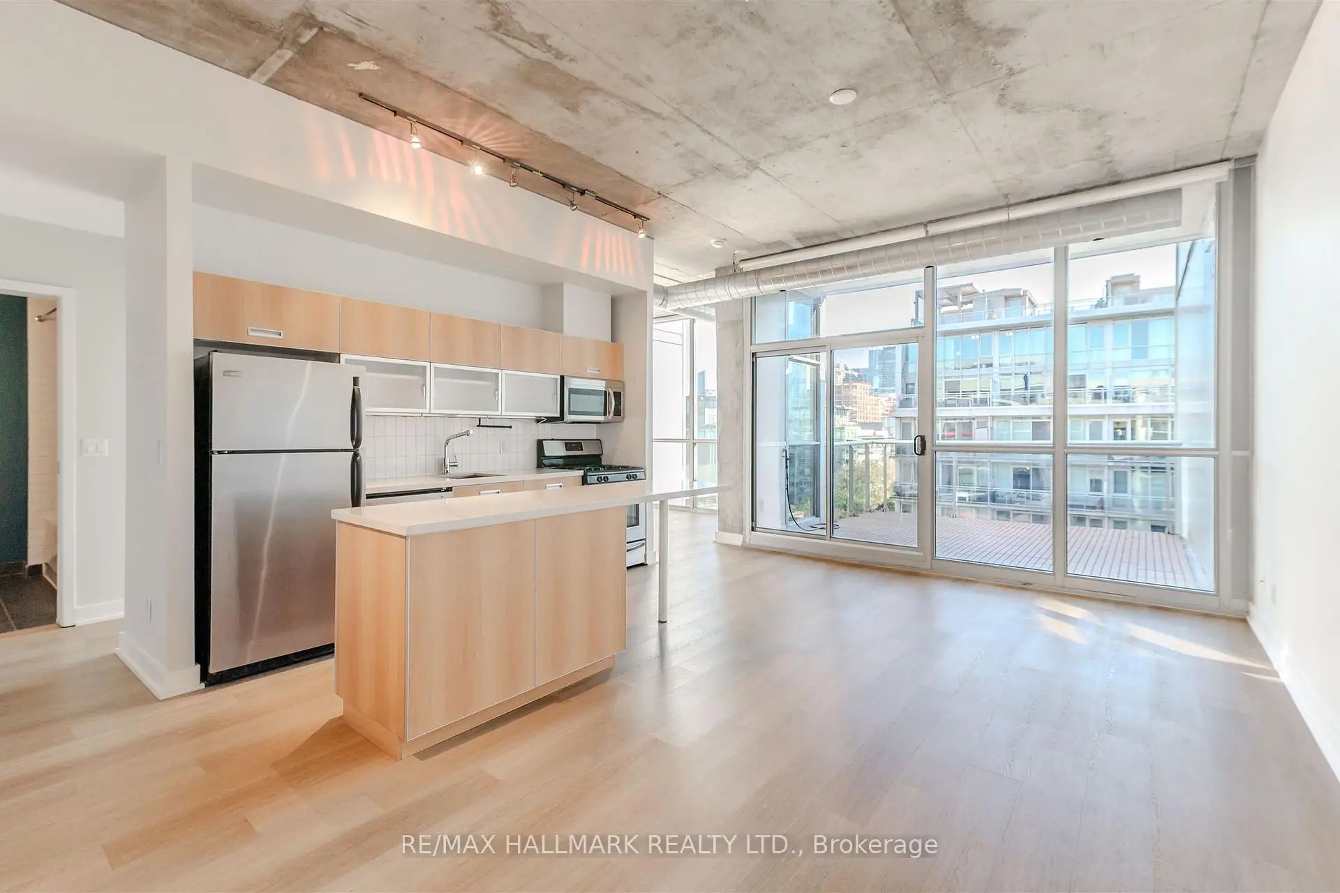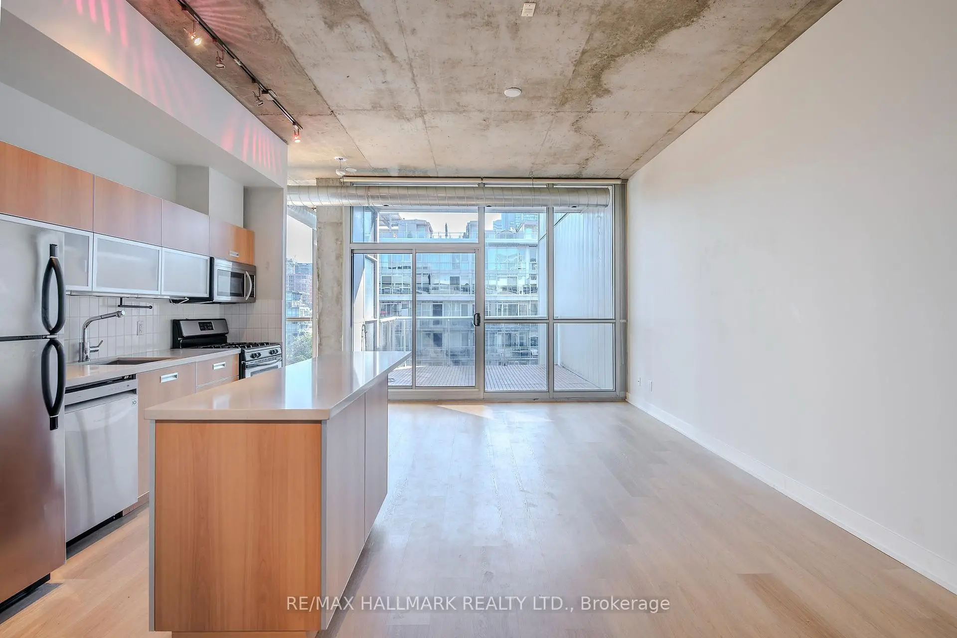 Welcome to your dream loft at 60 Bathurst St! Soaring 10-foot exposed concrete ceilings, a spacious and functional 1+den layout, and a private terrace with iconic CN Tower views. Fire up the BBQ (yes, there's a gas hookup on your oversized 144 square foot terrace) and entertain in style on one of the buildings best outdoor spaces. Inside, the open-concept living and dining area is perfect for both quiet nights in and hosting friends. Stainless steel appliances and caesarstone countertops in the kitchen, upgraded flooring throughout, floor to ceiling windows, and plenty of closet space, this loft checks all of the boxes. The den is large enough to function as a proper home office or guest space, while the primary bedroom offers comfort and style. Complete with a prime parking space (right across from the elevator), one storage locker, and located in a well-managed boutique building in the heart of King West. LOW MAINTENANCE FEES! Steps to everything - parks, 24 hour TTC, Billy Bishop airport, shops, restaurants, and bars. "Other" room is the terrace. *Property has been virtually staged.