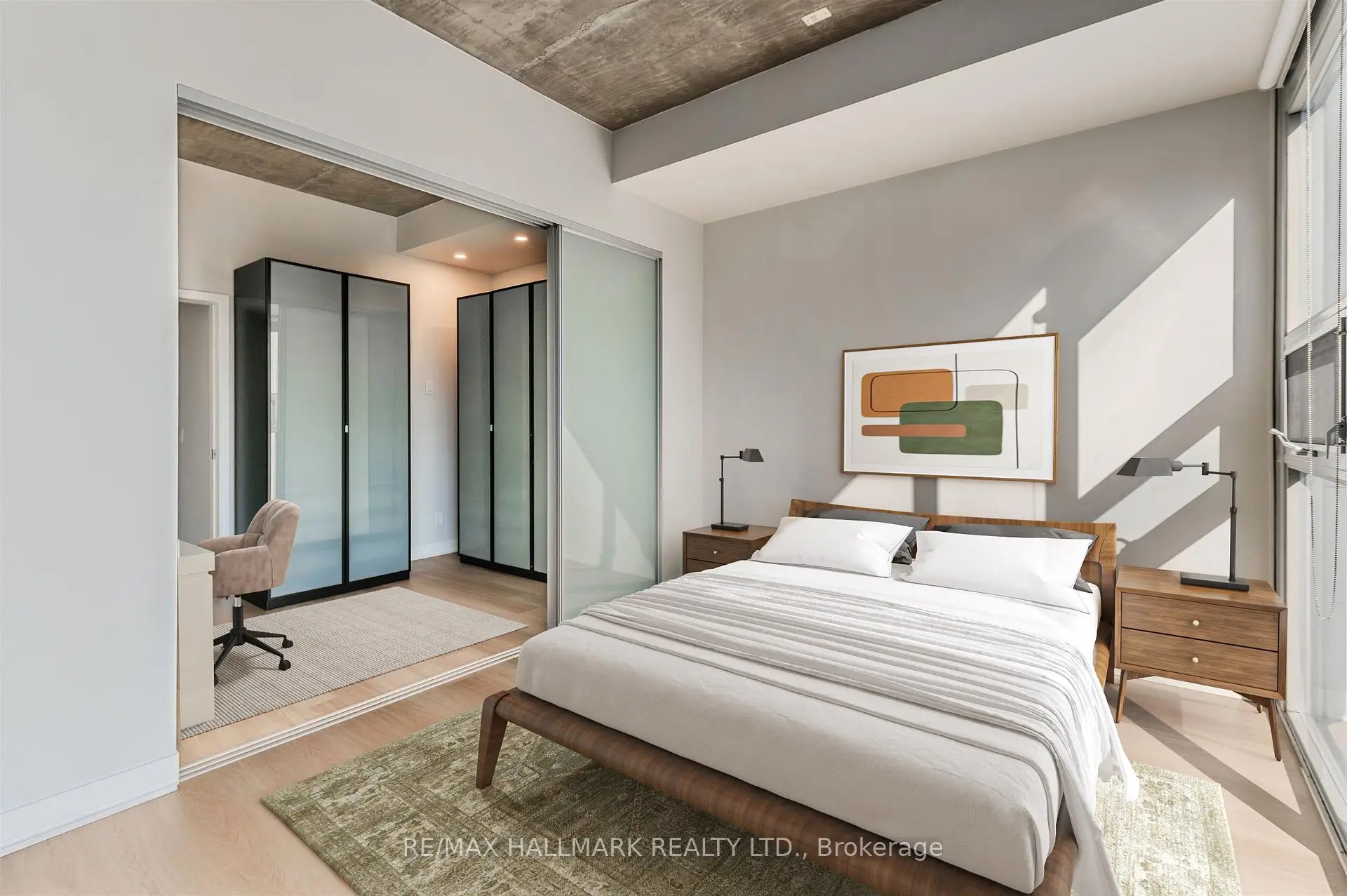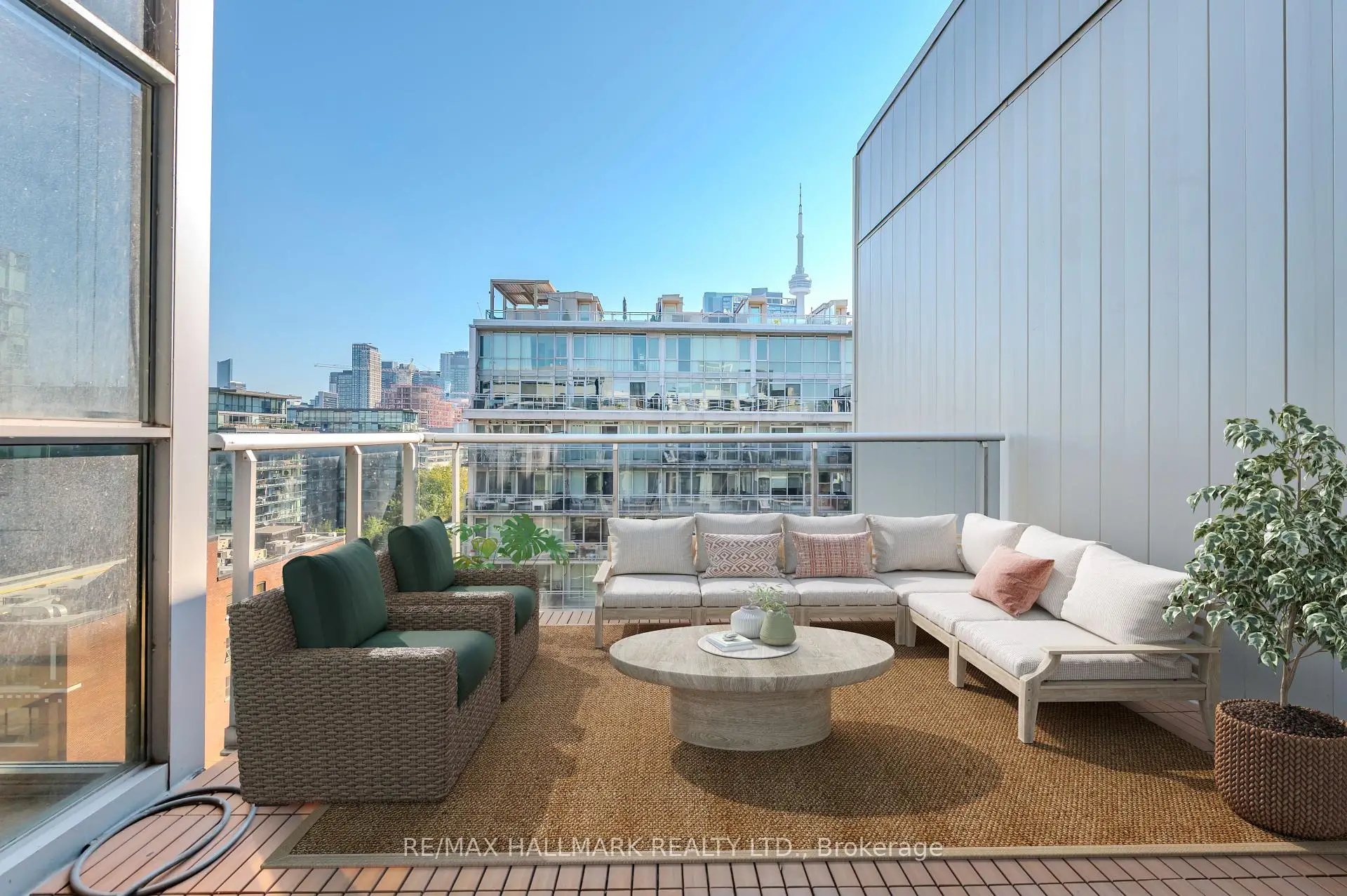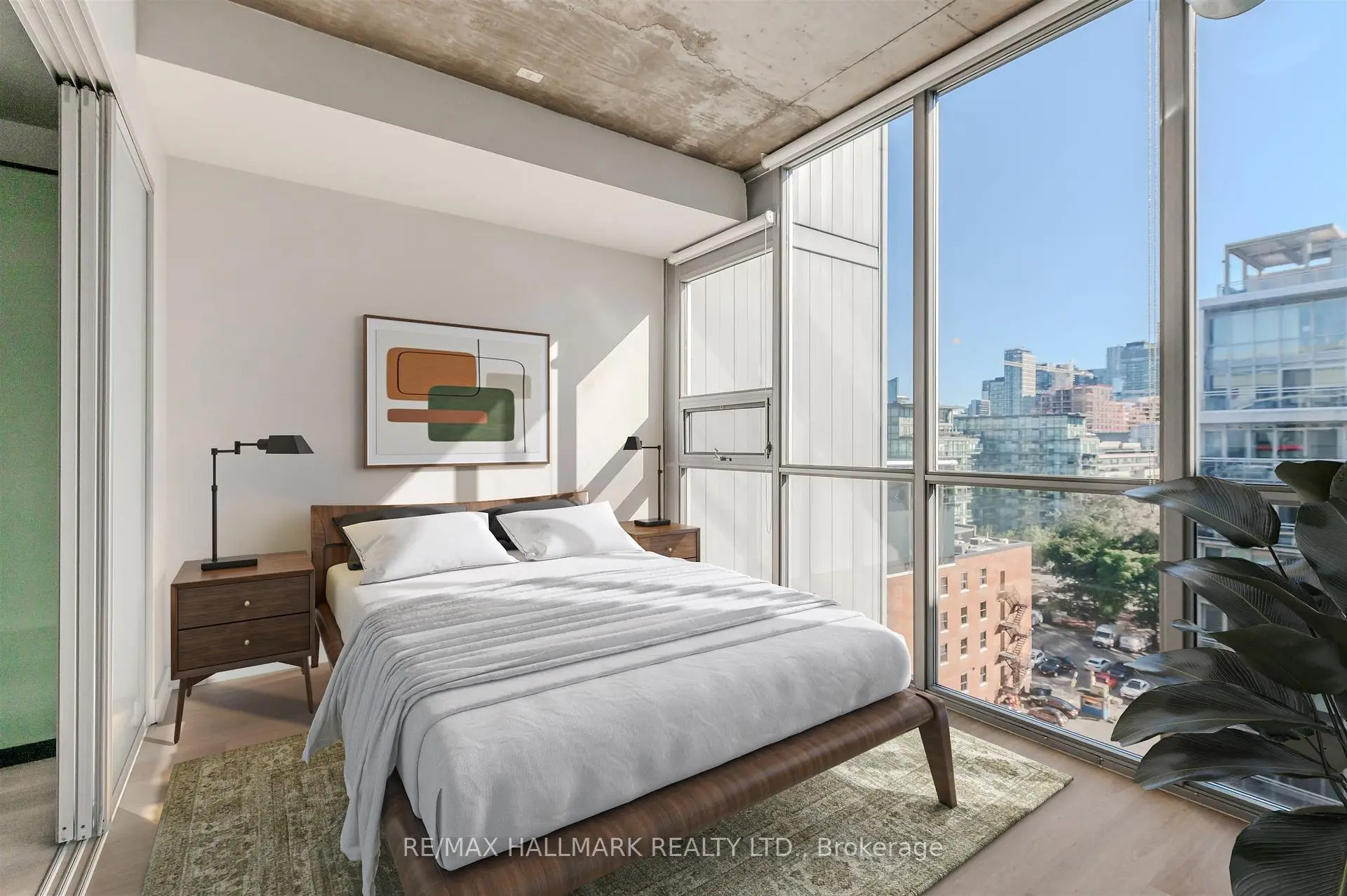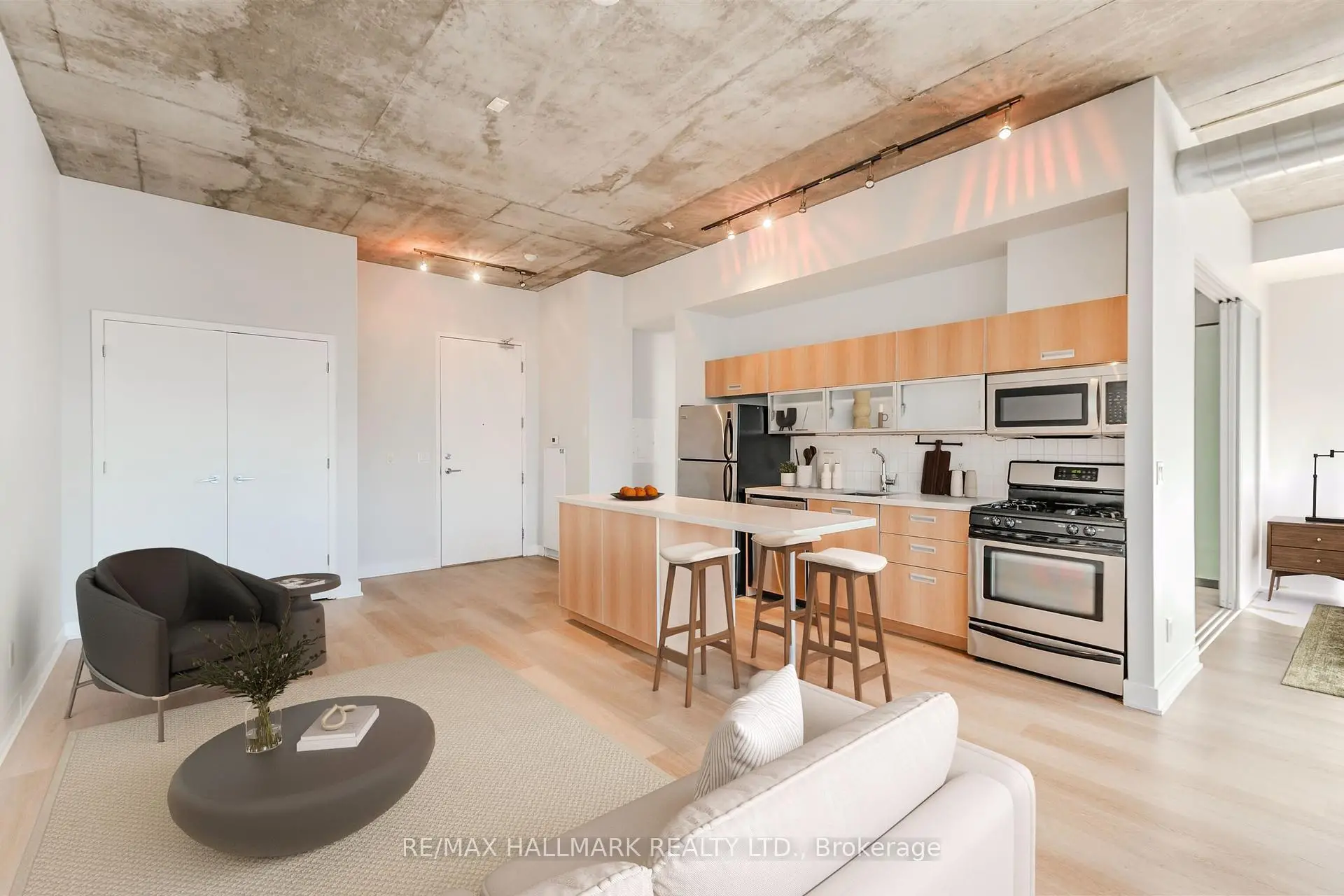 Welcome to your dream loft at 60 Bathurst St! Soaring 10-foot exposed concrete ceilings, a spacious and functional 1+den layout, and a private terrace with iconic CN Tower views. Fire up the BBQ (yes, there's a gas hookup on your oversized 144 square foot terrace) and entertain in style on one of the buildings best outdoor spaces. Inside, the open-concept living and dining area is perfect for both quiet nights in and hosting friends. Stainless steel appliances and caesarstone countertops in the kitchen, upgraded flooring throughout, floor to ceiling windows, and plenty of closet space, this loft checks all of the boxes. The den is large enough to function as a proper home office or guest space, while the primary bedroom offers comfort and style. Complete with a prime parking space (right across from the elevator), one storage locker, and located in a well-managed boutique building in the heart of King West. LOW MAINTENANCE FEES! Steps to everything - parks, 24 hour TTC, Billy Bishop airport, shops, restaurants, and bars. "Other" room is the terrace. *Property has been virtually staged.