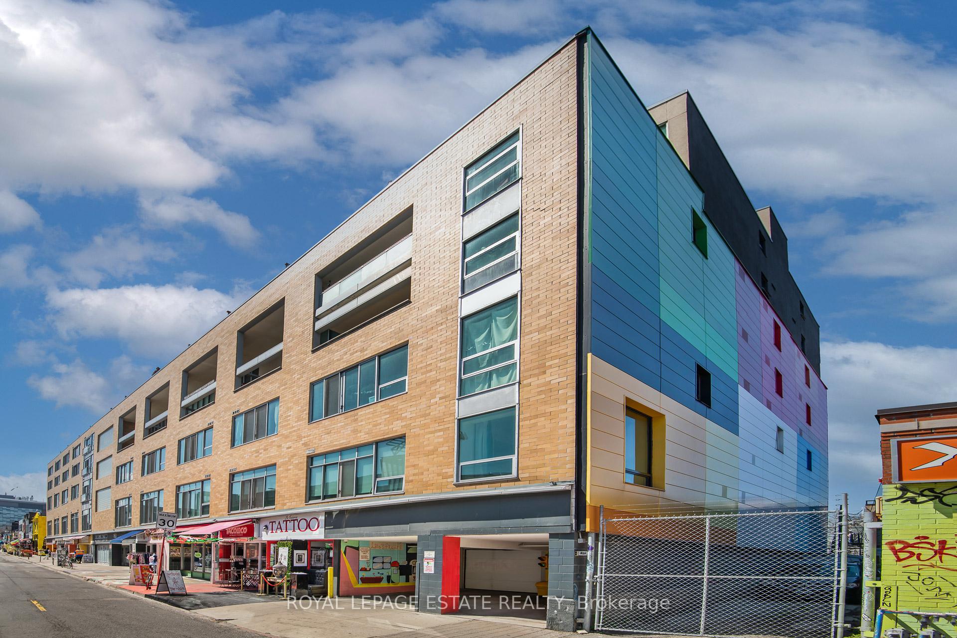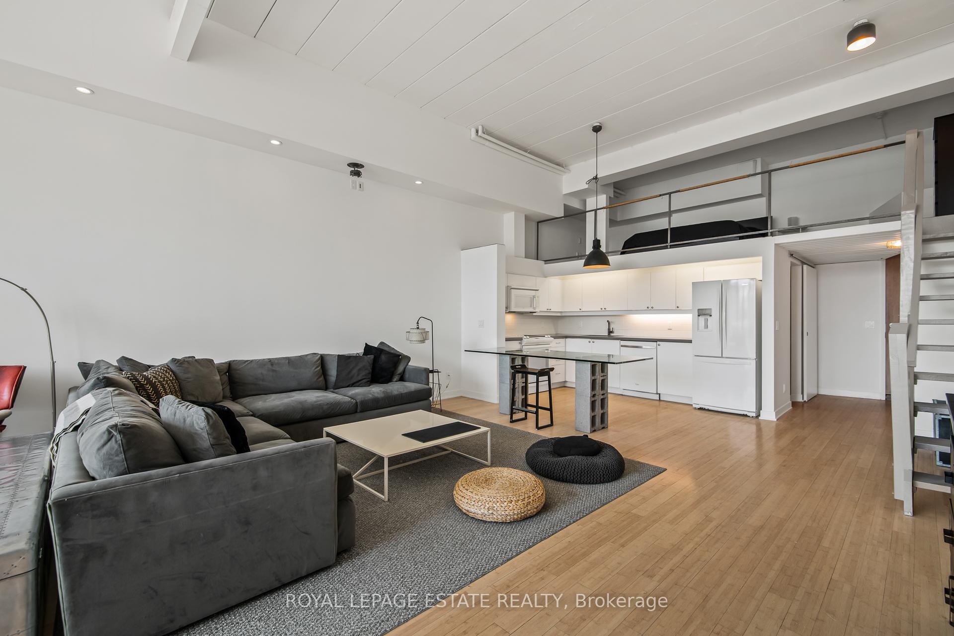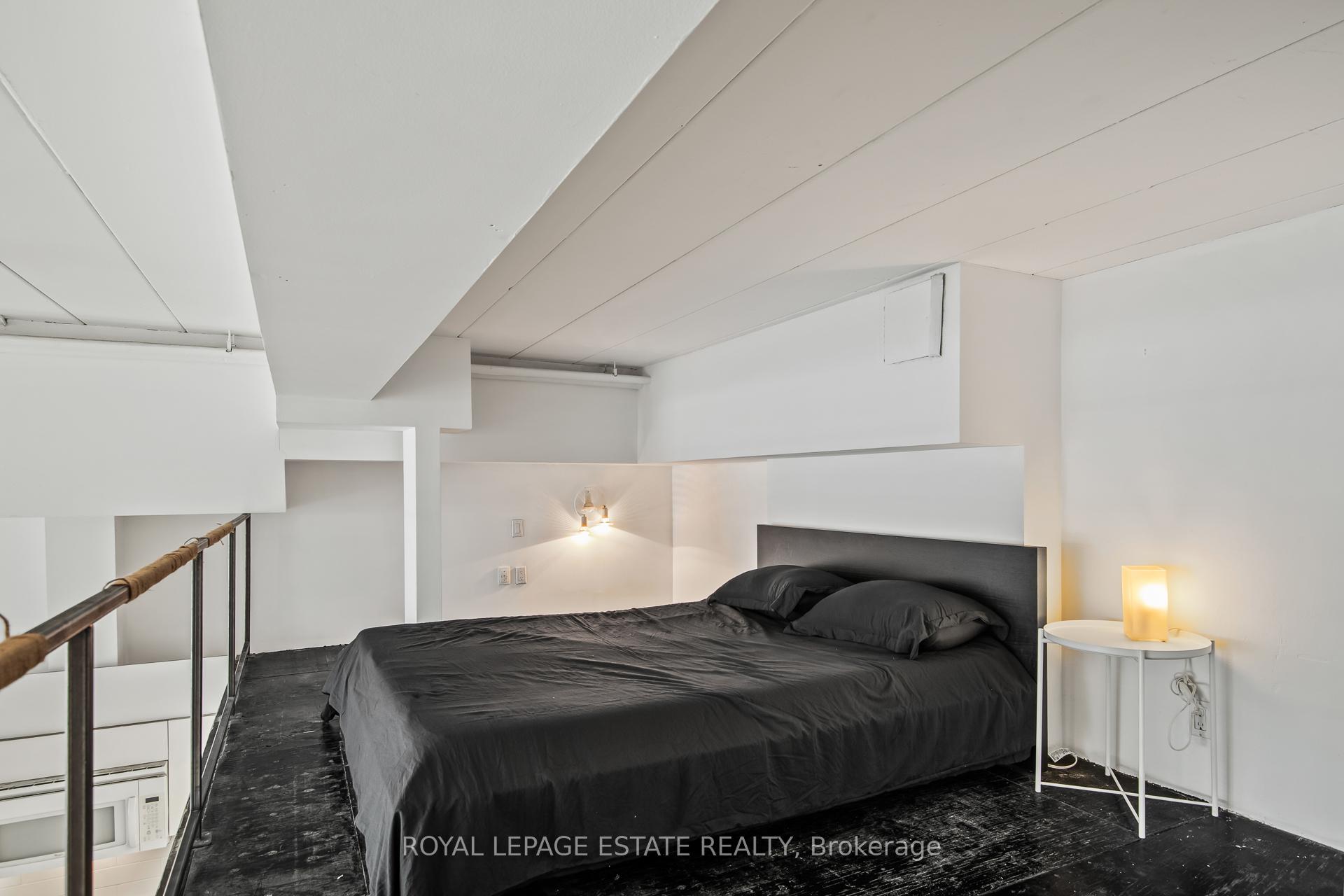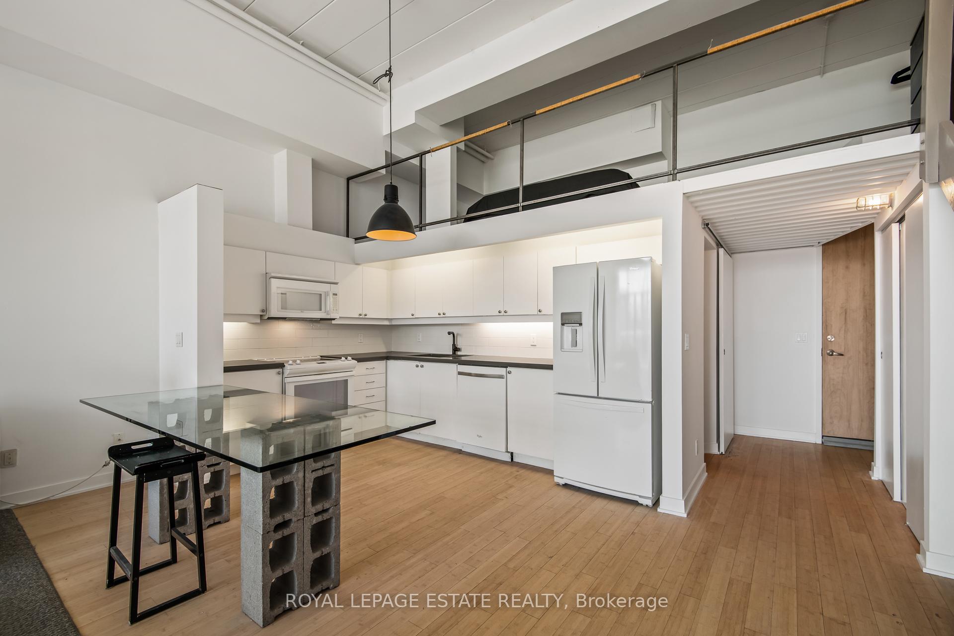 Welcome to Kensington Market Live/Work Lofts. Suite 301 is a magnificent south facing authentic 2 storey hard loft with unparalleled aesthetic grandeur. Possessing more than 1000 square feet, sprawling 13' + ceilings, dramatic wall to wall windows and Juliette balcony. Features include an open concept kitchen with ample storage, spa-like bath with ensuite laundry, hardwood floors throughout and a generous bedroom mezzanine level that spans entire width of the unit. The space is awash in sunlight, has cityscape views and has been meticulously curated. This genuinely expansive canvas is rarely found and hypnotising upon entry; personal design possibilities are limitless. The size and scale of the space are truly awe inspiring allowing for bold choices and endless configurations. This is a rare opportunity to fully realise your creative vision in a low turnover 7 storey boutique building in the true heart of Kensington market. The neighbourhood is vibrant, alive with a deep rooted sense of community. Every conceivable resource and amenity are steps away; shops, restaurants, TTC, schools, museums. Walk and Bike score of 100, no need to be hassled by driving. Building amenities include a lovely courtyard with picnic area and large party room. This space is dreamy and not to be missed. parking avail to rent in building and monthly permitted parking available at Green P across the street at discounted rate.