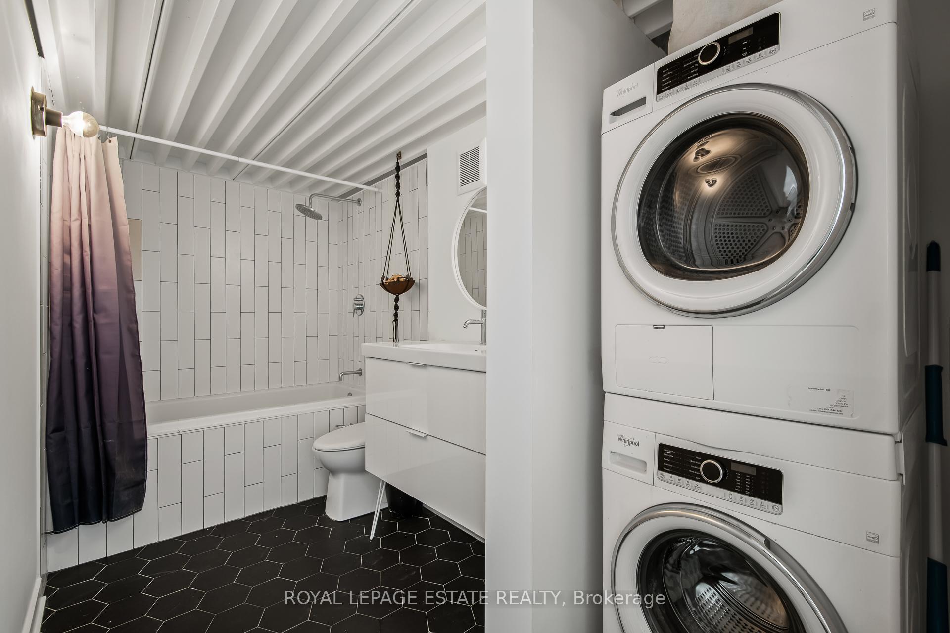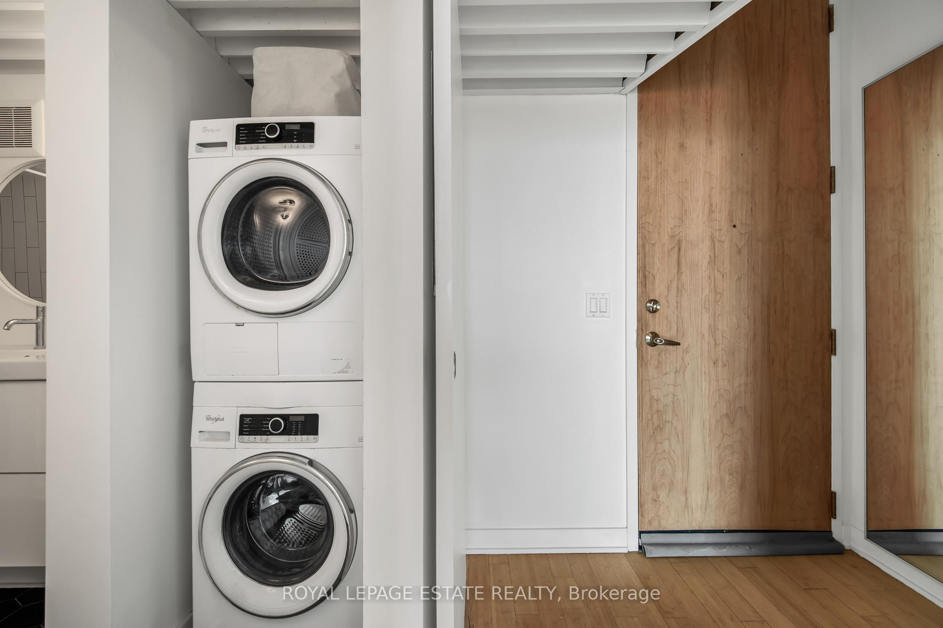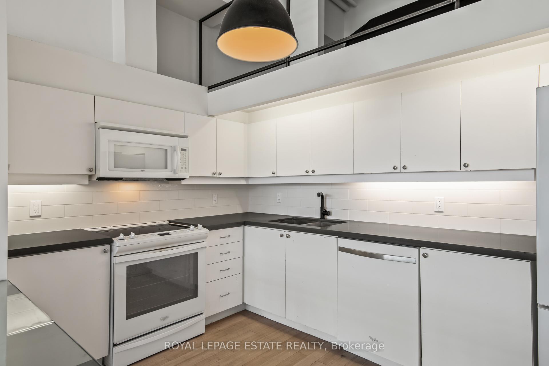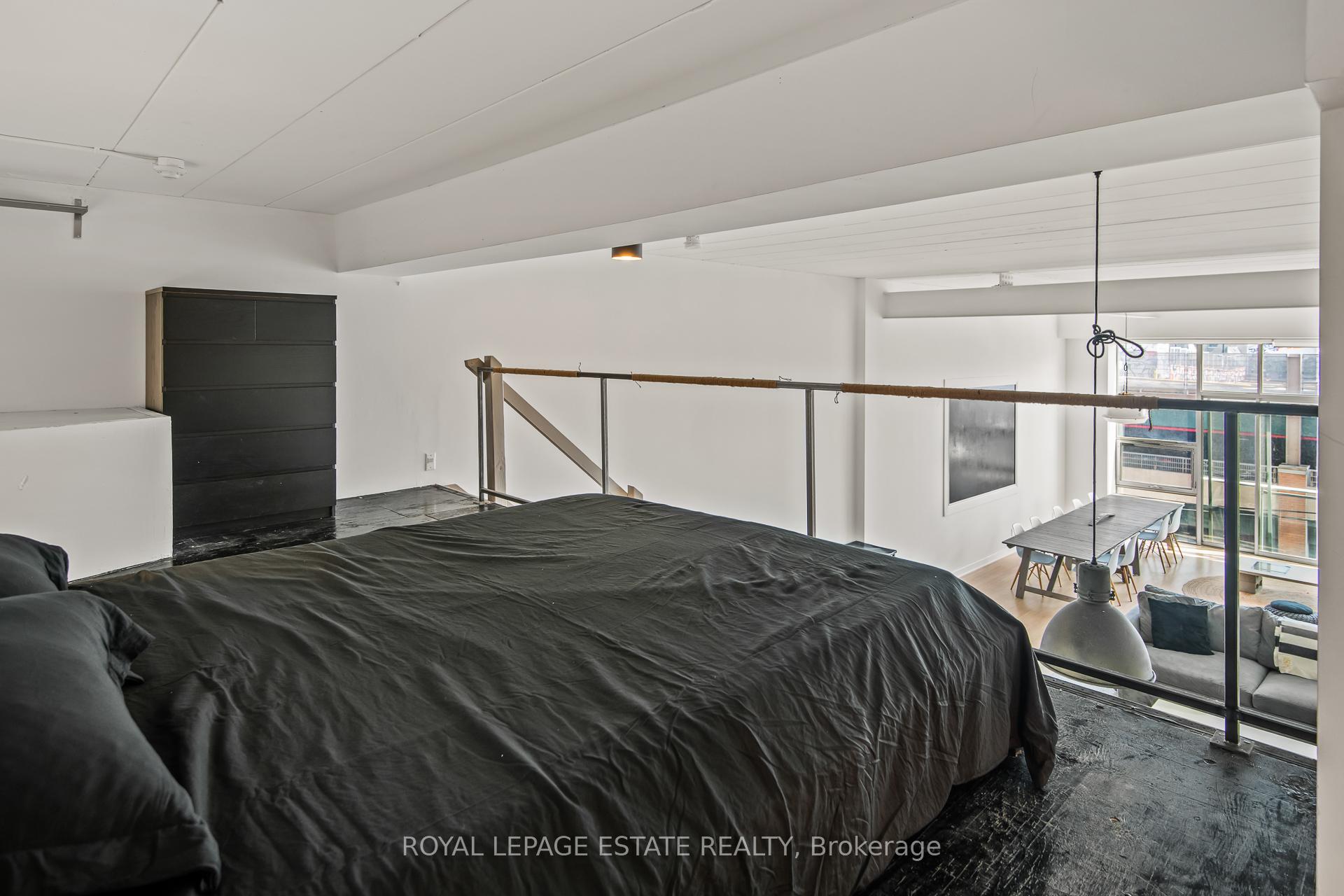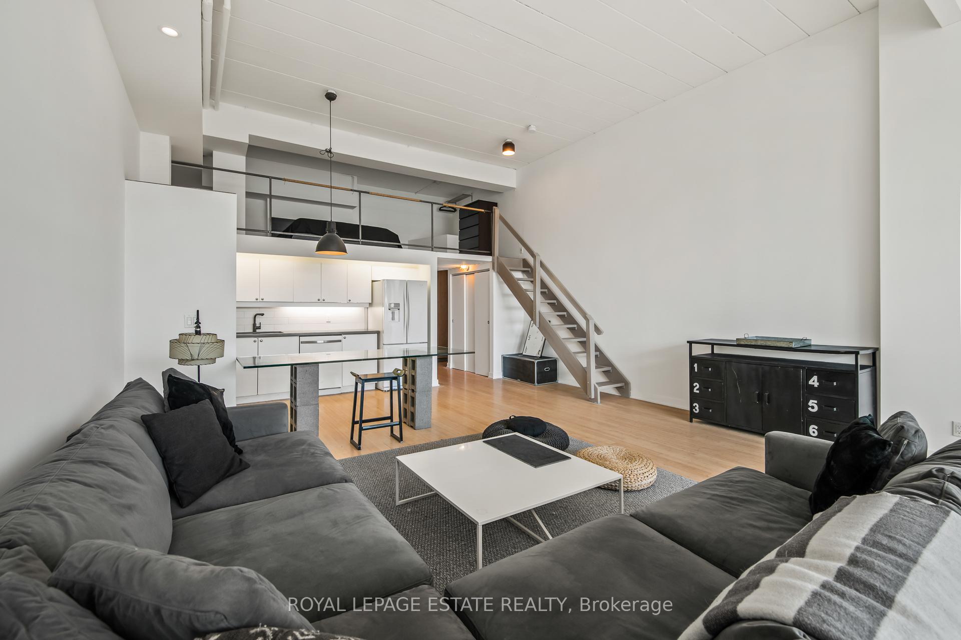 Welcome to Kensington Market Live/Work Lofts. Suite 301 is a magnificent south facing authentic 2 storey hard loft with unparalleled aesthetic grandeur. Possessing more than 1000 square feet, sprawling 13' + ceilings, dramatic wall to wall windows and Juliette balcony. Features include an open concept kitchen with ample storage, spa-like bath with ensuite laundry, hardwood floors throughout and a generous bedroom mezzanine level that spans entire width of the unit. The space is awash in sunlight, has cityscape views and has been meticulously curated. This genuinely expansive canvas is rarely found and hypnotising upon entry; personal design possibilities are limitless. The size and scale of the space are truly awe inspiring allowing for bold choices and endless configurations. This is a rare opportunity to fully realise your creative vision in a low turnover 7 storey boutique building in the true heart of Kensington market. The neighbourhood is vibrant, alive with a deep rooted sense of community. Every conceivable resource and amenity are steps away; shops, restaurants, TTC, schools, museums. Walk and Bike score of 100, no need to be hassled by driving. Building amenities include a lovely courtyard with picnic area and large party room. This space is dreamy and not to be missed. parking avail to rent in building and monthly permitted parking available at Green P across the street at discounted rate.