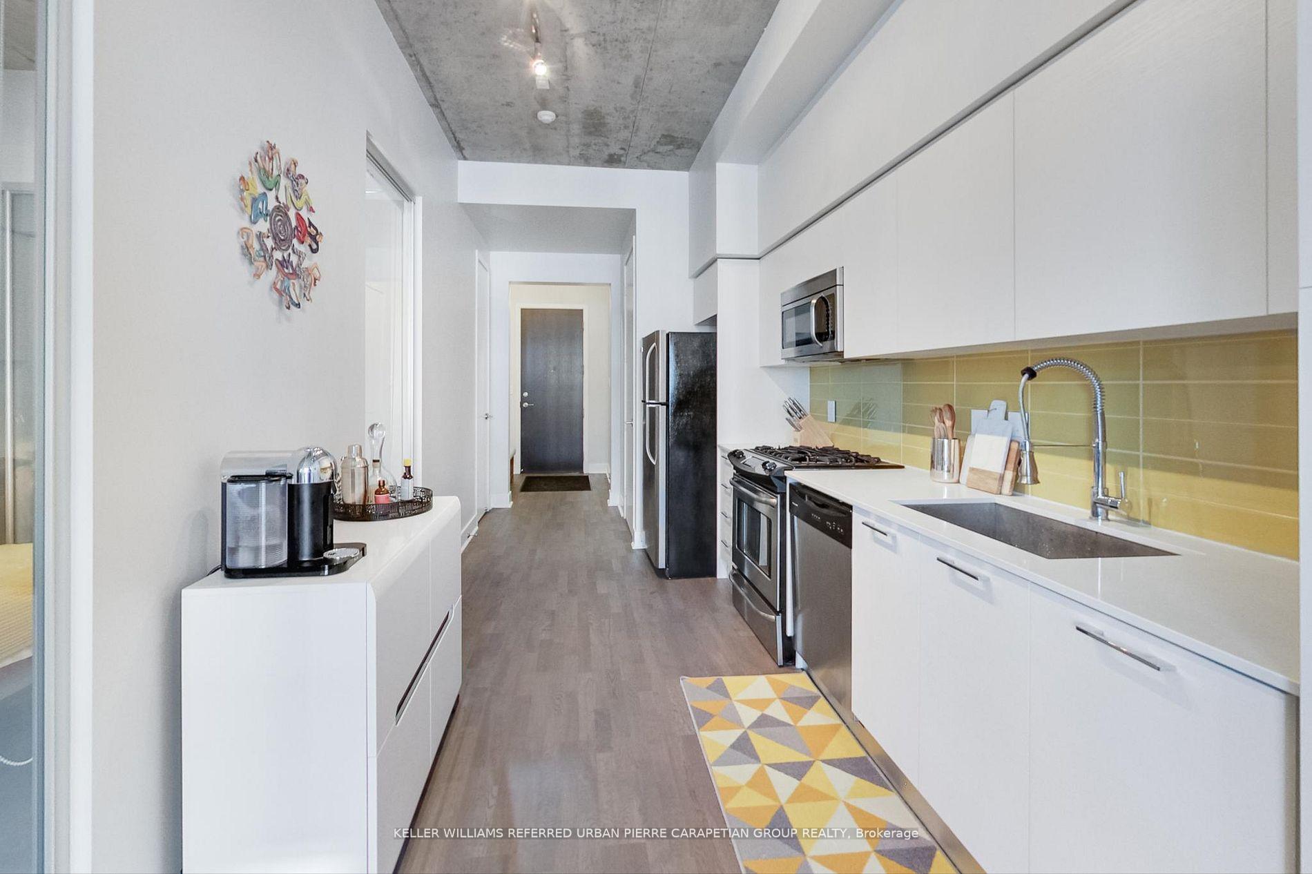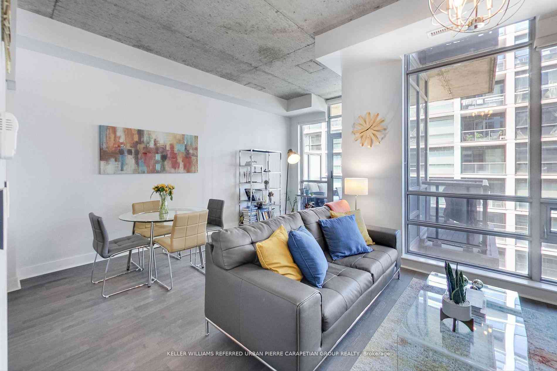 One of a kind unit at this mid size boutique building - 399 Adelaide. This Bright, 1 Bed, 2 Bath in coveted King West is one you'll be happy to all home. 783 Sq Ft functional floor plan with 10Ft ceilings and floor to ceiling windows - this unit is not the cookie cutter unit you'll find anywhere else! Modern galley kitchen with full sized appliances and gas stove. Fantastic living space and dining area with tons of room for a full desk as well as large dining table - perfect for entertaining! Large bedroom with ensuite bathroom and sizeable closet. Parking and locker included. Nestled in a great building just blocks away from the hustle and bustle of King West! The building has a fantastic sense of community that'll make you feel right at home. You're steps to Toronto's best Restaurants, Waterworks, Othership, Bars, Cafes, Loblaws, TTC, Bike Lanes & More!