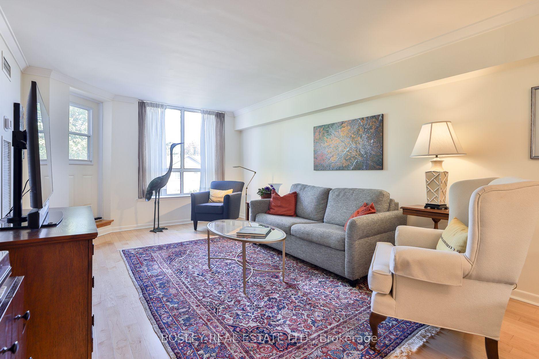 Remarkable suite at Leaside Gate! Beautifully renovated (refer to attached Features & Upgrades) 2 bdrm 2 bathroom 1,171 SF suite with great East facing view over the rooftops of South Leaside homes. Everything is done to perfection and is move-in ready! The all white kitchen now opens onto the dining room. The open concept dining and living room with a walk-out to the balcony ensures an easy flow and optimal entertaining. The primary bedroom walk-in closet has lots of new storage features and baskets for additional storage. The en-suite bathroom now provides the security of shower grab bars, new modern shower tiles and a new custom vanity with stone countertop. The 2nd bathroom has a new custom vanity with stone countertop, new lighting, new glass shower door & a new shower system plus so much more. The amenities here include an exercise room, sauna, games room, billiards room, workshop, conservatory/party room (with patio) and also provides 20+ visitor parking. Examples of current activities at Leaside Gate include bridge, yoga, line dancing and movie nights (as per their website). TTC is at your door, the Leaside Curling Club & Memorial Gardens Pool is a walk away. Walk to shopping plazas with services & restaurants on Millwood. Loblaws is nearby on Redway Rd and Longos & Shoppers Drug Mart are at Leaside Village nearby too. The public library & Trace Manes Park are a few mins walk away. Walk to Bayview Ave for all kinds of service providers & a great selection of restaurants. And it's a short car ride to Costco on Overlea Blvd. This condo is ideal for mature, quiet individuals seeking a peaceful living environment while enjoying the vibrant community and convenience of South Leaside and all it has to offer. This property includes 1 parking & an extra large locker.