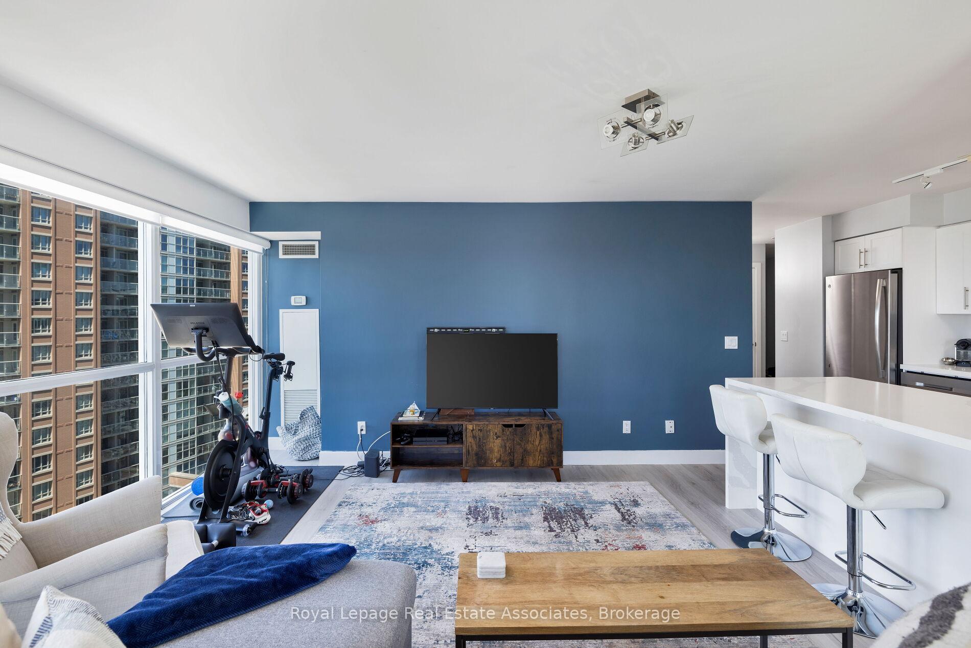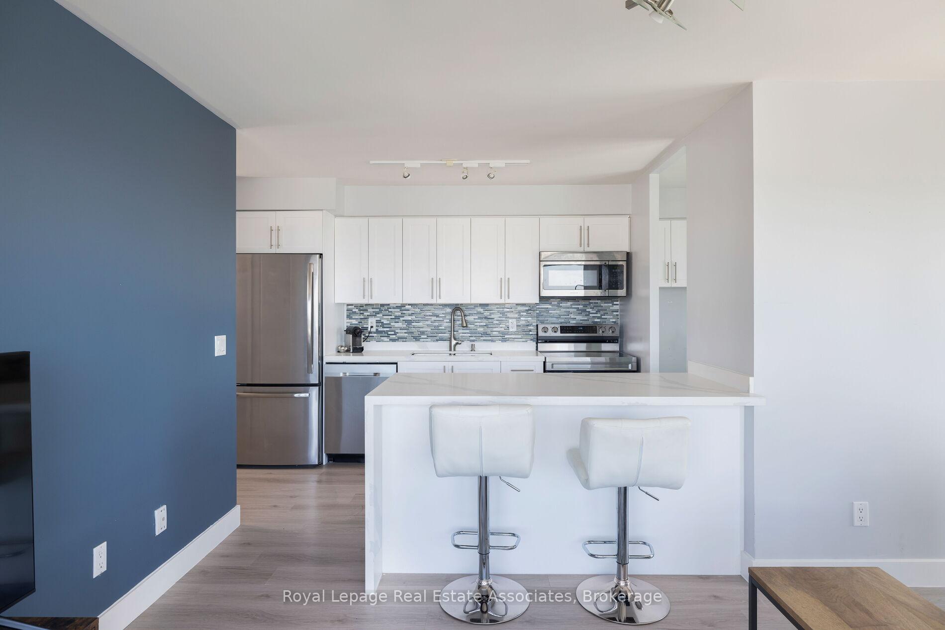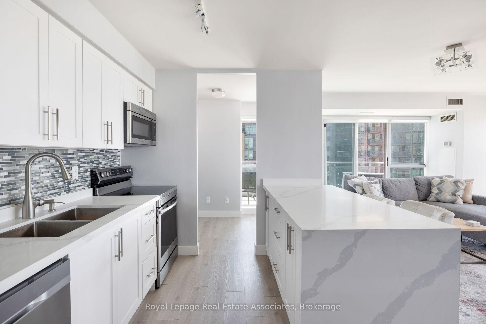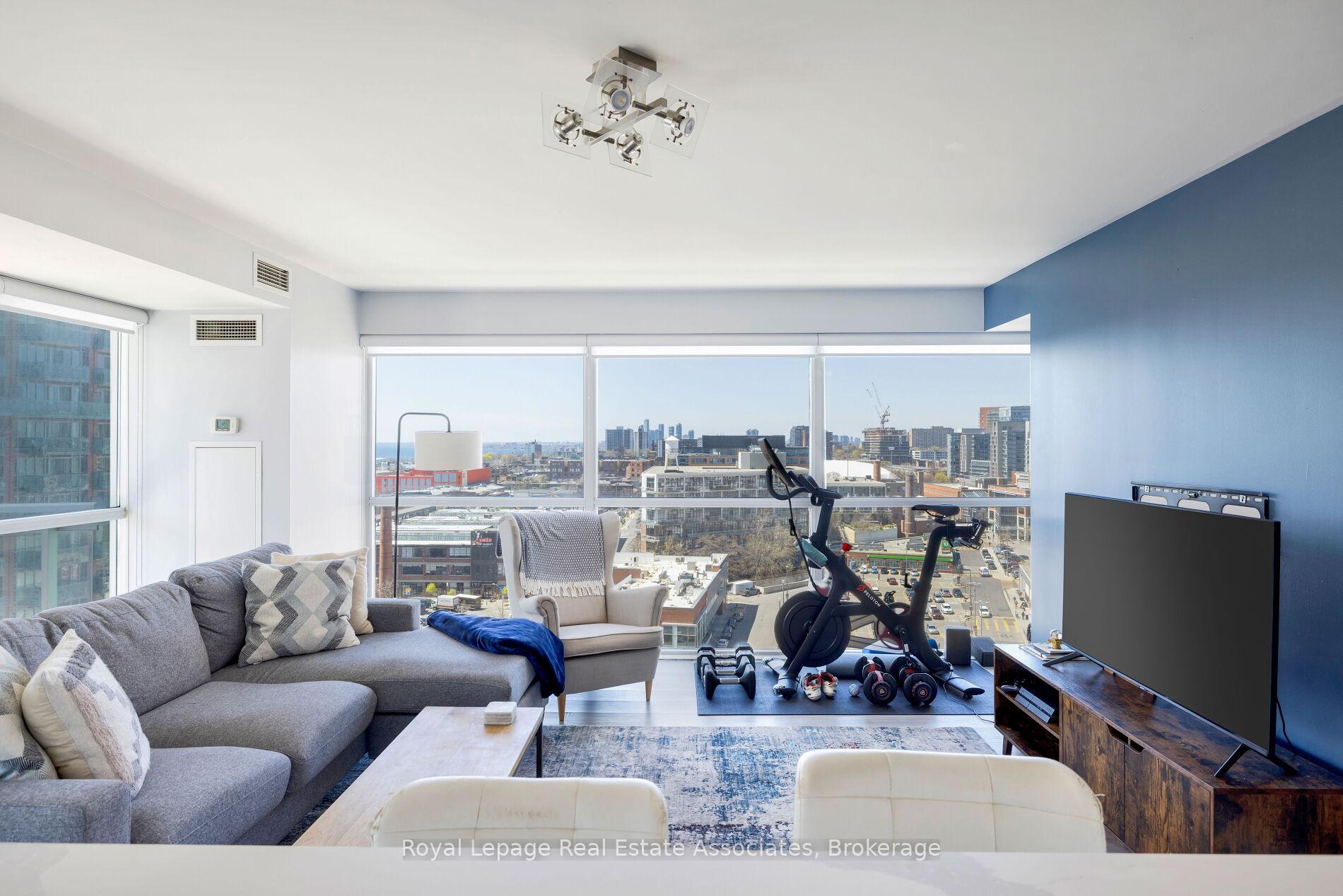 Rare & Beautiful Corner One Bed Plus Den In Liberty Village With Views Of Lake Ontario. This is Liberty Village Living At It's Finest! Very Bright Open Concept 753 Square Feet Of Living Space With Tons Of Natural Light And Floor To Ceiling Windows. Sophisticated Corner Unit With Awesome South & West Views. Two Balconies With Views Of The Lake And To Watch The Sunset! Updated Waterfall Counter Kitchen Island, Bathroom Vanity Counter Top And Light Fixtures. Stainless Steel Appliances, Wall Opened Up In Den Gives Direct Access To Kitchen and Additional Natural Light. Eat-In Kitchen Breakfast Bar Area With Room For Stools, Spacious Primary Bedroom With Huge Closet And A Perfect Bright Den With South Exposure To Function As A Home Office. Mini Dog Off Leash Area Right Across The Street, 95 Walking Score, 92 Transit Score and 88 Biking Score. Move In And Start Living. 1 Parking Space And 1 Locker Included. Excellent Building. Amenities Include Indoor Pool, Gym, Meeting Room, Exercise Room, Guest Suites, Visitor Parking, 24 Hour Security, Viewing Room And Bike Storage.
