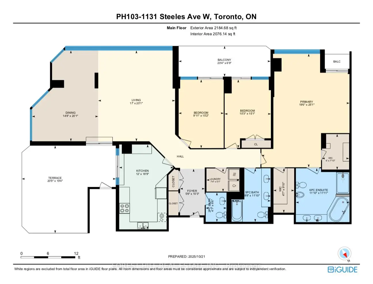 Welcome To The Primrose 3 Residence. As You Enter Through The 24Hr Gate House Security, You Will Get The Feeling Of Tranquility As You Drive Through A Canopy Of Mature Trees Leading To A Beautifully Landscaped Circular Drive In Front Of Your Building. When You Go Up To Your Suite, You Will Be Entering Into A Rare Penthouse Corner Unit That Is Just Over 2,100 Sq.Ft. That Tranquil Feeling Will Continue With An Abundant Of Natural Light And Spectacular South, East and West Views. Your Suite Features 9-Ft Ceilings, Hardwood Floors Throughout The Living & Dining Areas And Hallway. The Eat-In Kitchen Is Very Warm, Spacious And Functional, While The Open-Concept Living And Dining Areas Provide An Inviting Flow For Large Family Gatherings. The Approx. 400 Sq-Ft Outdoor Terrace Can Be Accessed From The Kitchen And Dining Room. This Is A Wonderful Space To Sit Outside And Relax On Your Own Or With Family And Friends And Watch Some Stunning Sunsets. There Are 3 Bedrooms And 2 Full Bathrooms And A Powder Room For Guests. The Large Primary Bedroom Includes A Very Spacious Ensuite Bathroom, Two Walk-In Closets And A Small Balcony. The Primrose Offers Exceptional Building Amenities Featuring Beautifully Manicured Grounds To Walk Around. Well-Maintained Tennis Crts, And A Resort Style Outdoor Pool. Inside Your Building You Will Enjoy The Use Of A Well-Equipped Exercise Room, Jacuzzi, Sauna, Party/Meeting Rm, Billiards & Games Rm And Even A Squash Court. You Have TTC Bus Service Along Steeles Ave & Bathurst St. Basic Everyday Services Like Grocery Stores, Medical Offices, Restaurants And Places Of Worship All Within A Few Minutes. Lots Of Public And Private Schools Close By. York University Is A 5-Minute Drive Away. Addt'l Features ------ 2 More Balconies, Laundry Rm W/Full-Size Washer/Dryer, Third Bed Can Be Used As A Den/Office, 2 Undgrnd Parking Spaces, 2 Storage Lockers (1 Undgrnd + 1 In Unit On The Terrace). Condo Fees Include: Heat, Hydro, Water, Cable TV, High-Speed Internet.