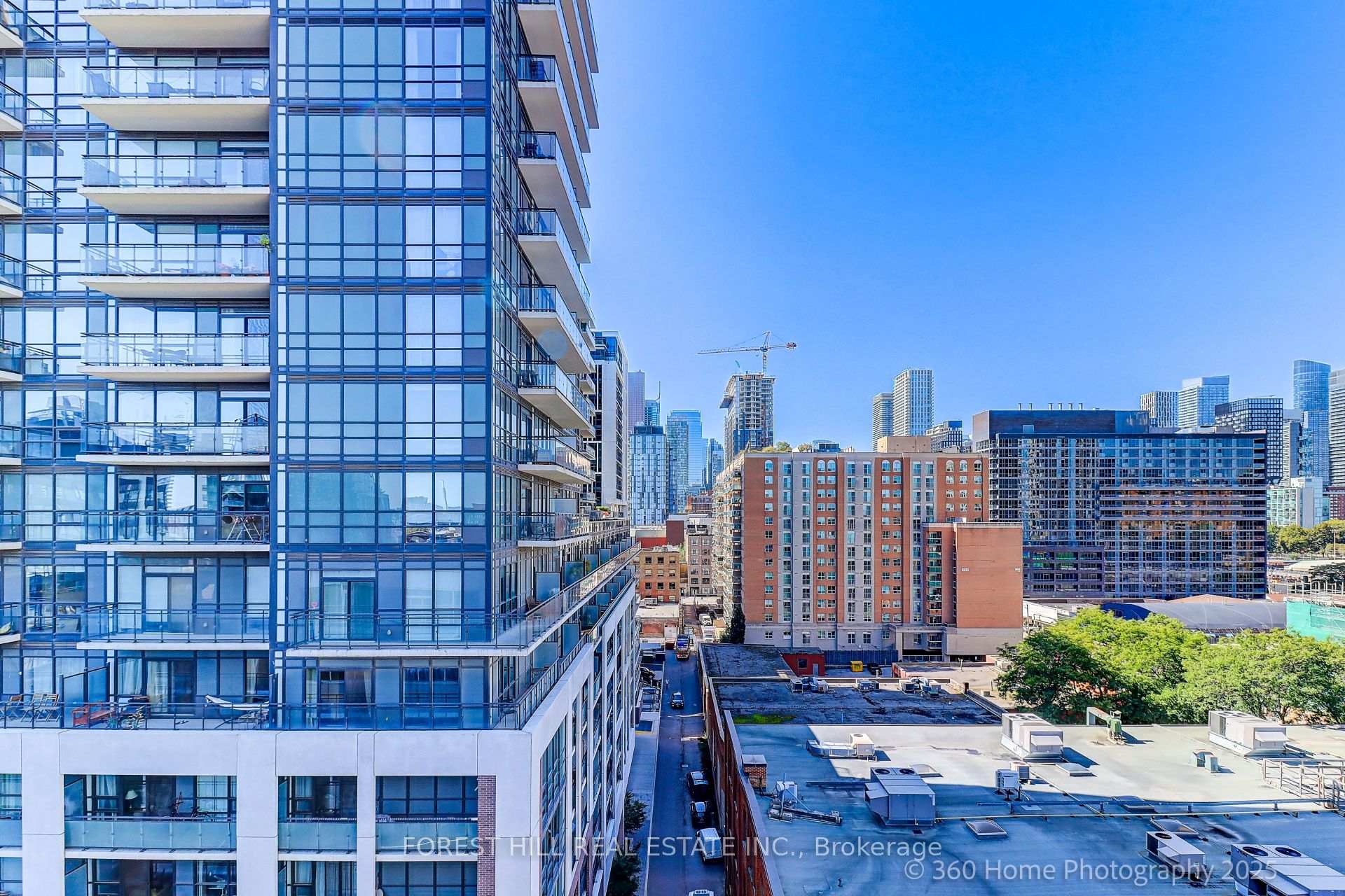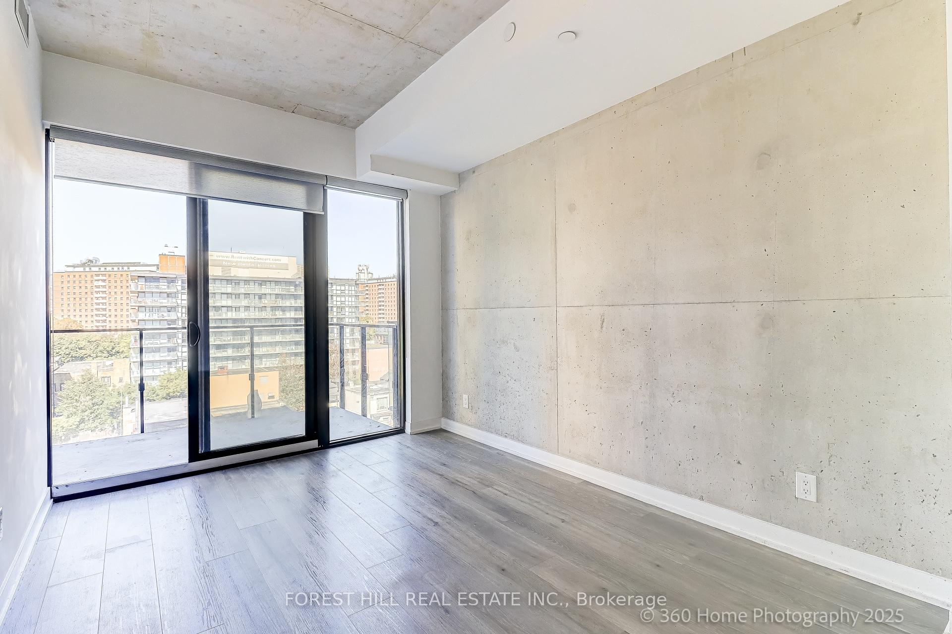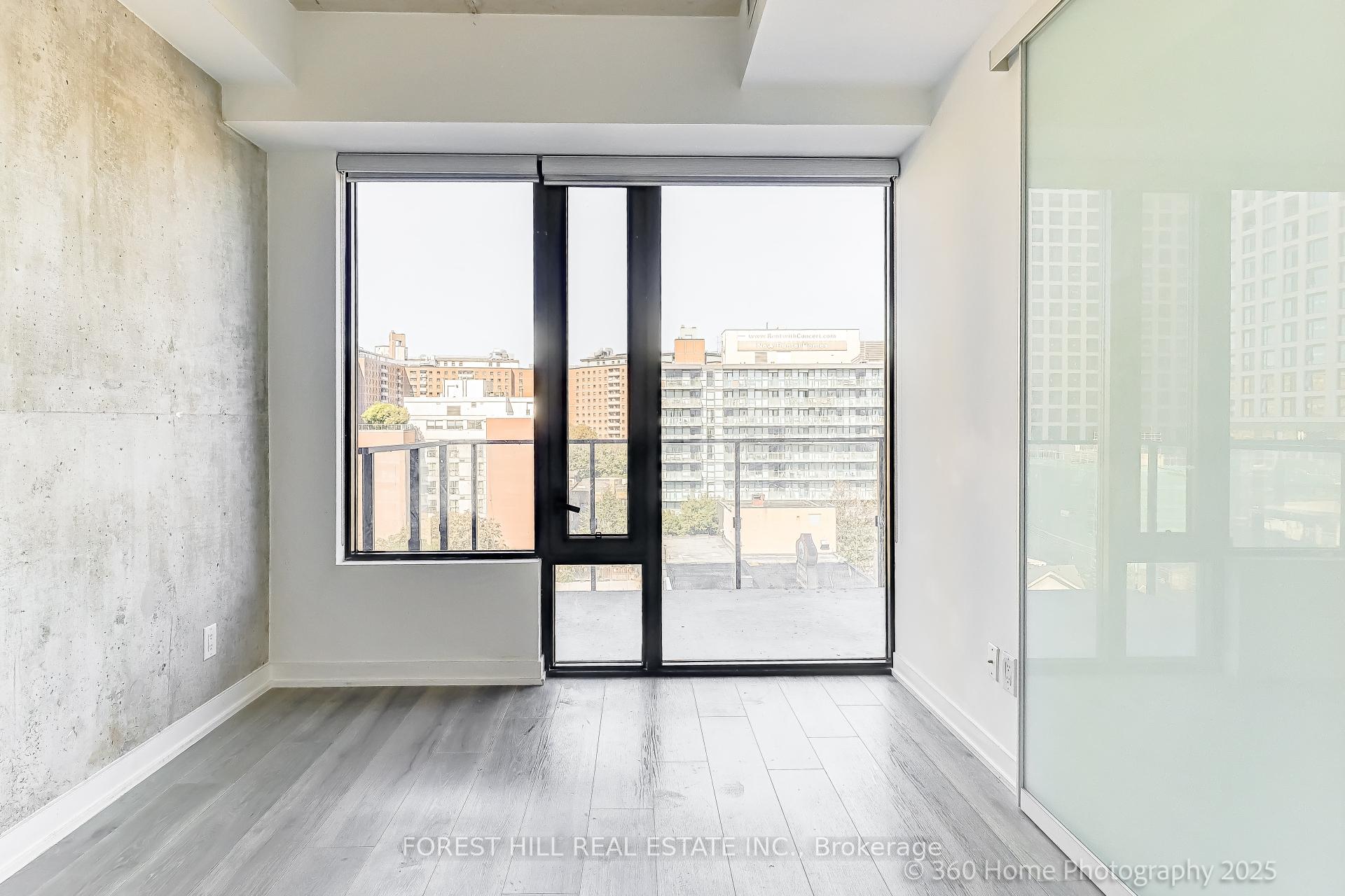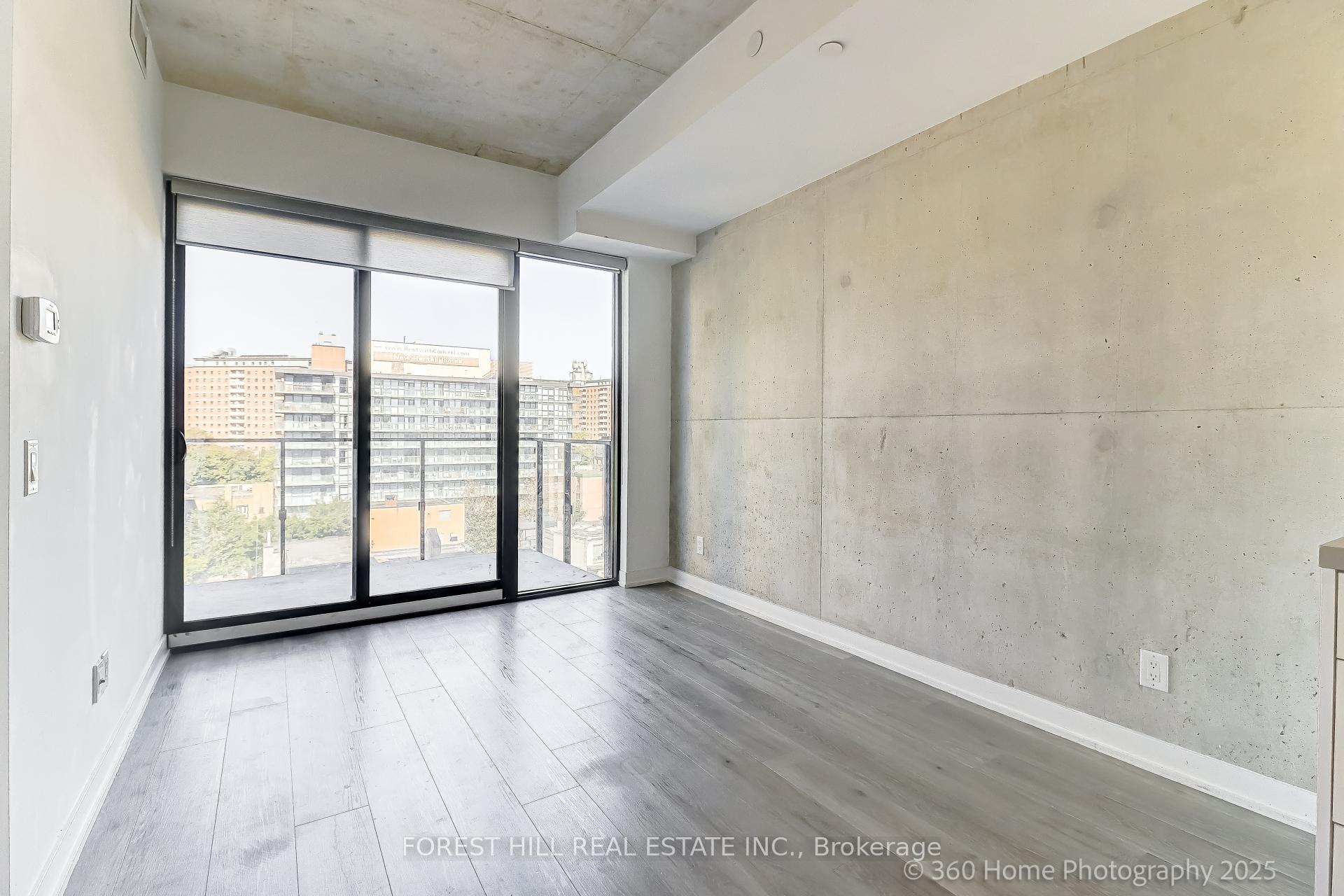 Welcome to EAST 55, Toronto's chic condo located on quiet, leafy Ontario Street. This 1 BR plus Den, HIROSHIMA MODEL is the ideal home for anyone looking for a stylish urban retreat. Bright open concept LR has wall-to-wall glass windows with a walk-out to a huge balcony with an unobstructed view. The soaring 10.5 ft exposed concrete ceiling provides a spacious feel. Freshly painted in a modern color palette. Extended Kitchen cabinets (30"), Drawer under the oven, under-cabinet lighting and a smart quartz Island defines this modern kitchen. The Spa-like bathroom boasts elegant marble flooring and shower walls. Friendly concierges and secure access make this a desirable place to call home. Location is perfect, with proximity to the Distillery district, St.Lawrence market, King street Street cars, George Brown College, and steps to TTC. Excellent walking score. Hurry! This sophisticated condo won't last!!!