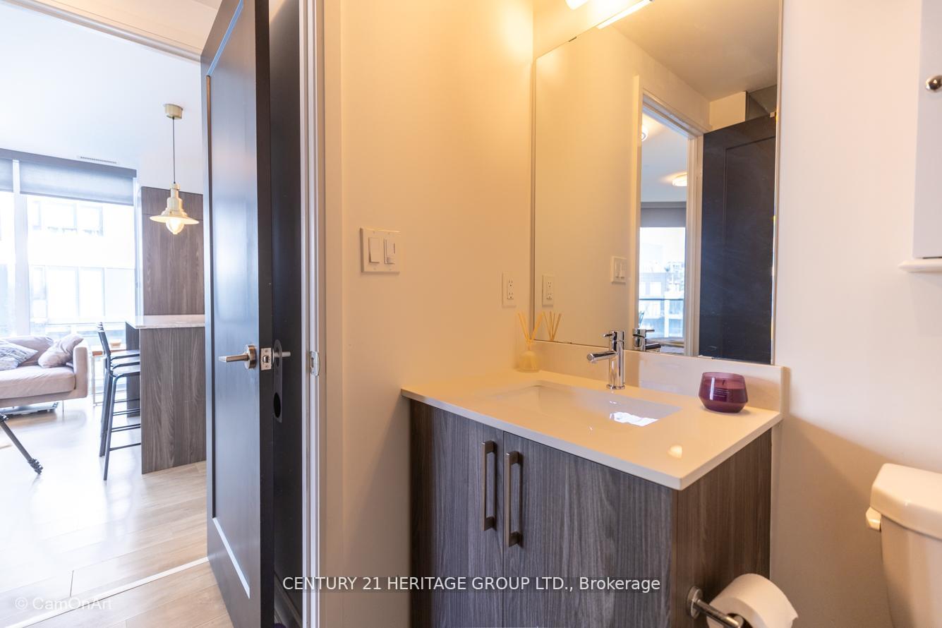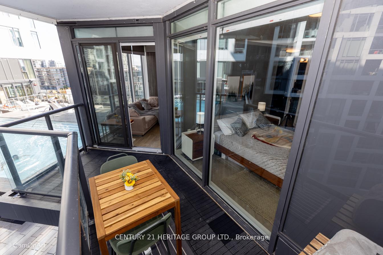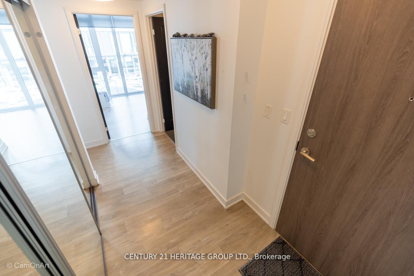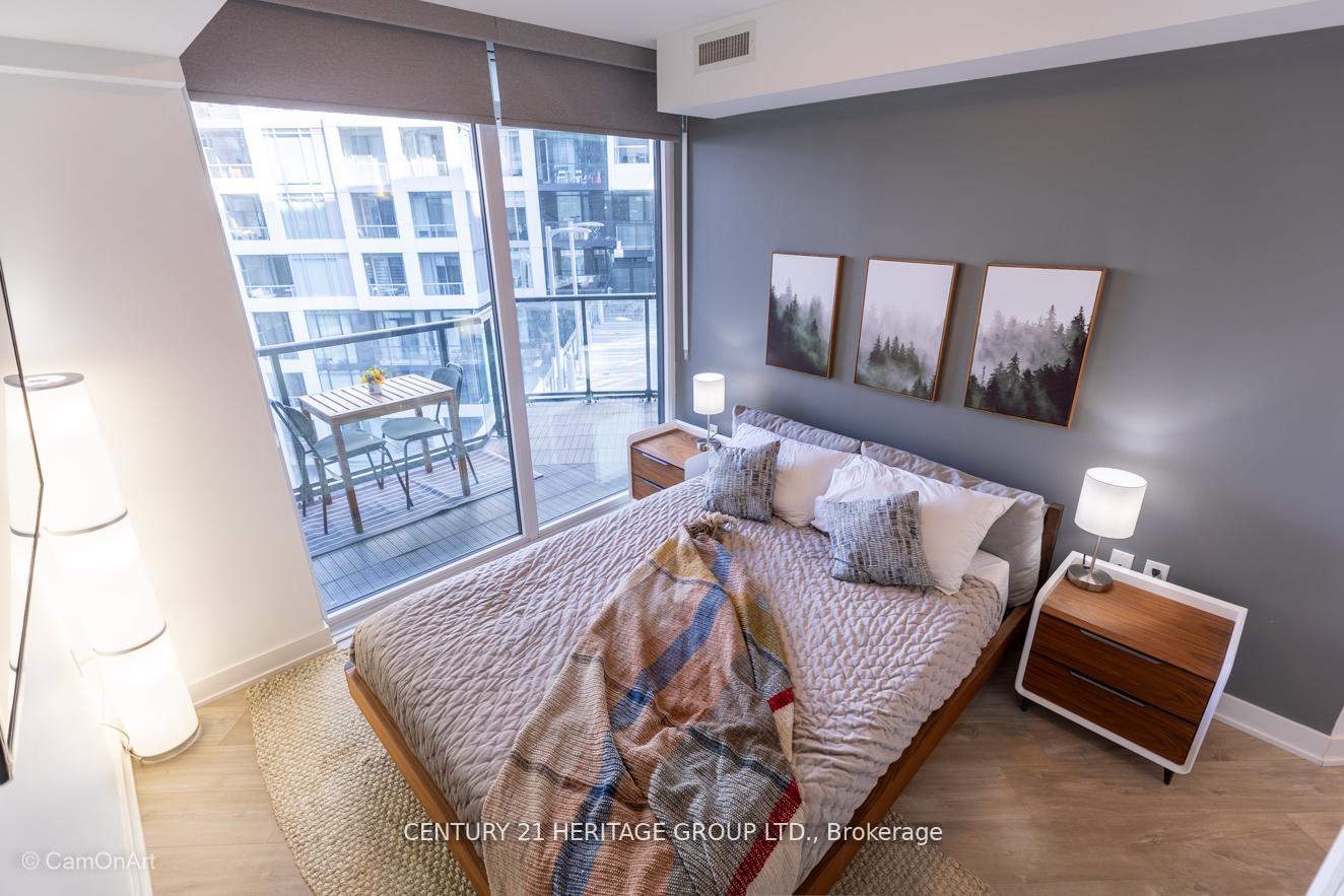 CORNER UNIT with 810 Square Feet of living space with balcony. Glimpse Lake Ontario from your second bedroom windows. This is a larger than average two bedroom unit when compared to other units. One underground parking and storage locker are included in the price. Daylight surrounds you via the 9-foot floor-to-ceiling windows. Meticulously maintained, with upgrades in the kitchen and bathrooms, including new like stainless steel high end built-in oven and microwave, a four element cooktop, upgraded kitchen island. The primary has a large walk-in closet, immaculate three piece ensuite. The main 4-piece bathroom is like new with a full-sized tub. Roller blinds on all the 9-foot floor-to-ceiling windows provide privacy and/or darkness. Living room has electronic roller blinds. Enjoy breakfast on your spacious 83 sq ft balcony with space for a couch and a table where you can sit and enjoy your morning coffee. Current owner stores a bicycle and cooks there. Minto's sterling reputation for exceptionally high quality construction with LEED certification is reflected in the reasonable maintenance fees. The remarkable architecture makes this property instantly recognizable. The quality of materials and amenities including a sophisticated fitness centre, 24 hr. security and concierge, beautiful rooftop patio and pool, three luxurious lounges, party, media rooms, shared BBQ's, community courtyard. You will be in the heart of the action: the Well, Stackt and unlimited dining and shopping plus the proximity to the lake. FarmBoy and Dollarama are conveniently located on the ground floor. A 99 Walk Score and 95 Transit Score! The New Ontario Transit Line will be a short walk awaymaking this property even more valuable. The quality of workmanship materials and amenities and location, location make this a highly desirable building complex. Underground parking and locker are included, you can earn $3300/ per month rental income.