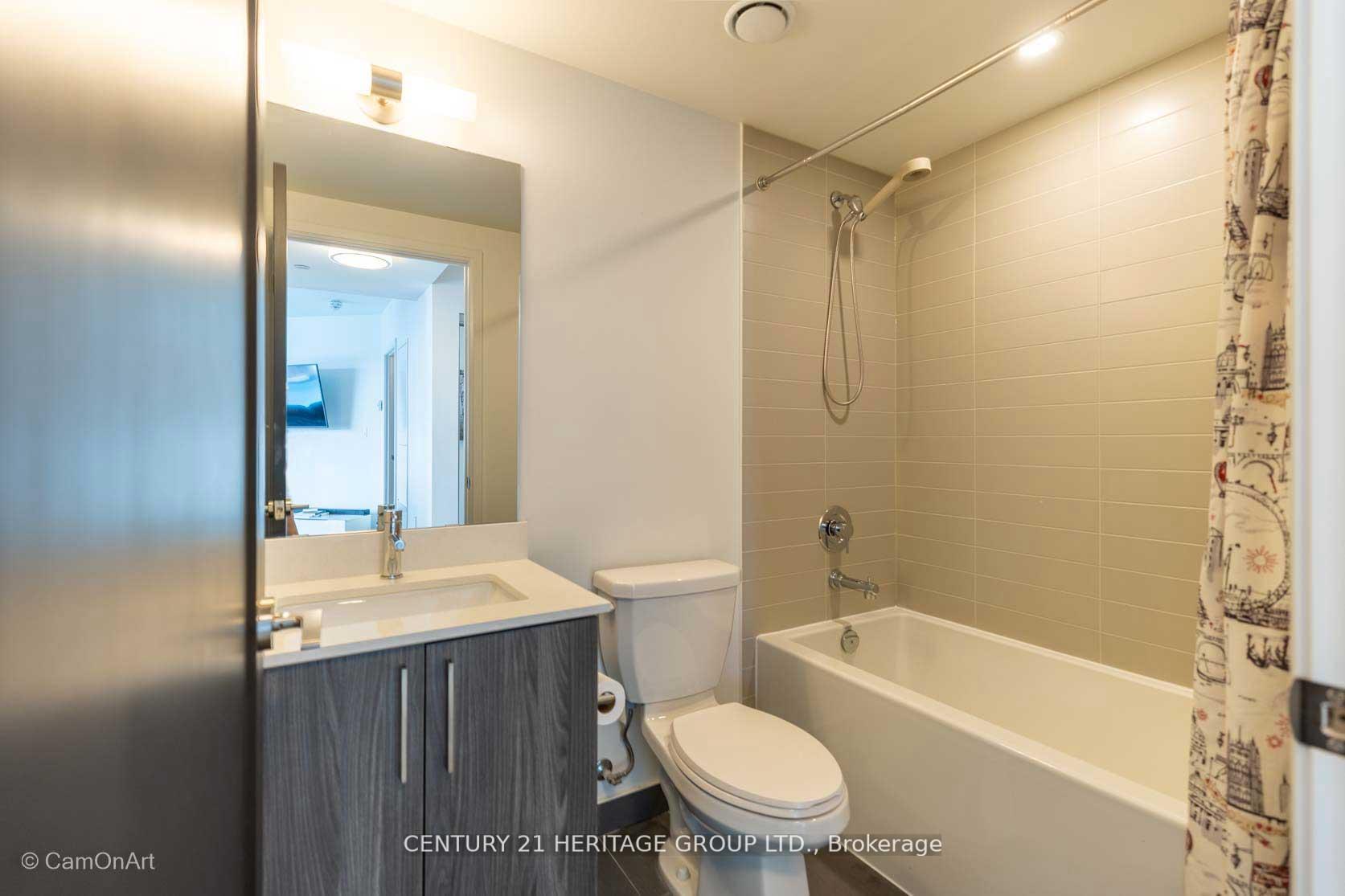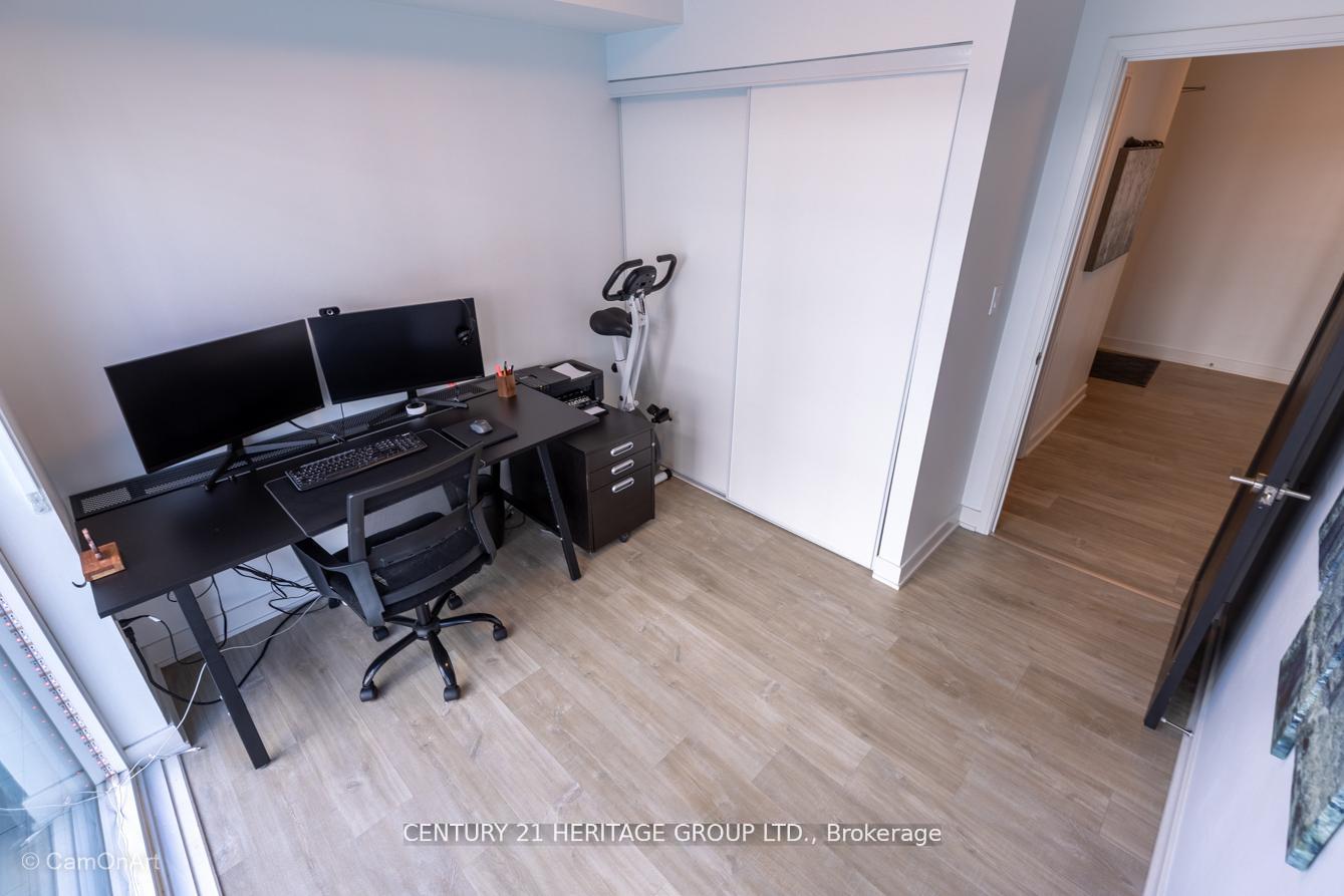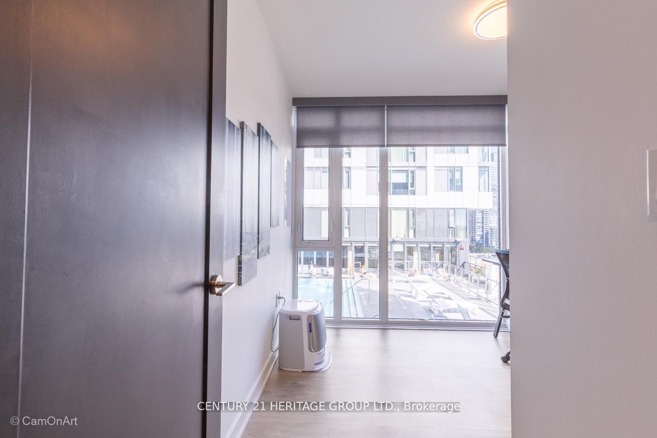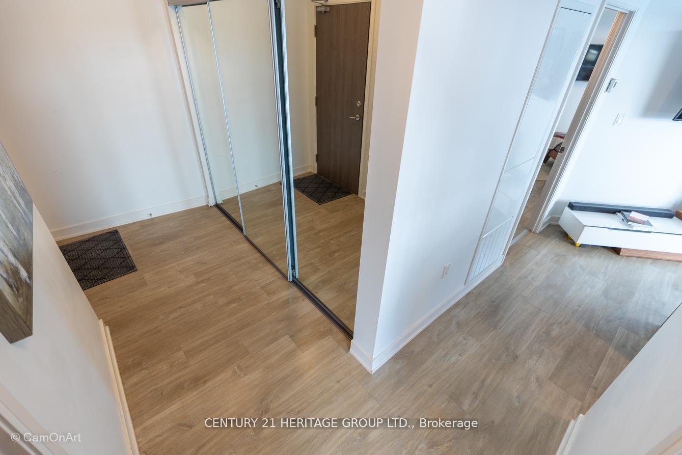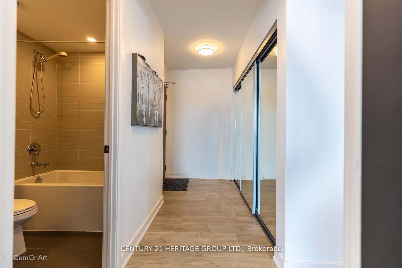 CORNER UNIT with 810 Square Feet of living space with balcony. Glimpse Lake Ontario from your second bedroom windows. This is a larger than average two bedroom unit when compared to other units. One underground parking and storage locker are included in the price. Daylight surrounds you via the 9-foot floor-to-ceiling windows. Meticulously maintained, with upgrades in the kitchen and bathrooms, including new like stainless steel high end built-in oven and microwave, a four element cooktop, upgraded kitchen island. The primary has a large walk-in closet, immaculate three piece ensuite. The main 4-piece bathroom is like new with a full-sized tub. Roller blinds on all the 9-foot floor-to-ceiling windows provide privacy and/or darkness. Living room has electronic roller blinds. Enjoy breakfast on your spacious 83 sq ft balcony with space for a couch and a table where you can sit and enjoy your morning coffee. Current owner stores a bicycle and cooks there. Minto's sterling reputation for exceptionally high quality construction with LEED certification is reflected in the reasonable maintenance fees. The remarkable architecture makes this property instantly recognizable. The quality of materials and amenities including a sophisticated fitness centre, 24 hr. security and concierge, beautiful rooftop patio and pool, three luxurious lounges, party, media rooms, shared BBQ's, community courtyard. You will be in the heart of the action: the Well, Stackt and unlimited dining and shopping plus the proximity to the lake. FarmBoy and Dollarama are conveniently located on the ground floor. A 99 Walk Score and 95 Transit Score! The New Ontario Transit Line will be a short walk awaymaking this property even more valuable. The quality of workmanship materials and amenities and location, location make this a highly desirable building complex. Underground parking and locker are included, you can earn $3300/ per month rental income.