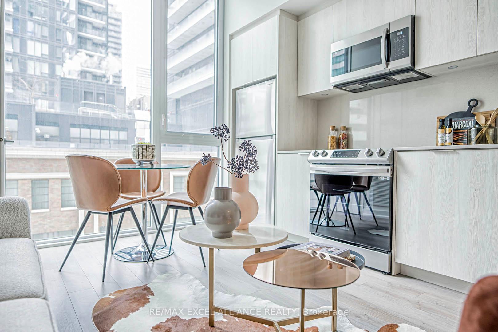 Experience luxurious downtown living in this brand-new 2-bedroom, 2-bathroom suite at Great Gulf's iconic 357 King West. Spanning 957 sq.ft., this stunning unit features approximately 9' ceilings and an open-concept design, offering a spacious living and dining area perfect for both relaxation and entertaining. The modern kitchen boasts stainless steel appliances, quartz countertops, and ample cabinet space, while the contemporary bathrooms add to the unit's appeal. Additional conveniences include in-suite laundry and a fully furnished interior with brand-new furniture. Ideally located with easy access to the Financial District, world-class shopping, dining, and entertainment, and just steps from the CN Tower, Rogers Centre, and Roy Thomson Hall.