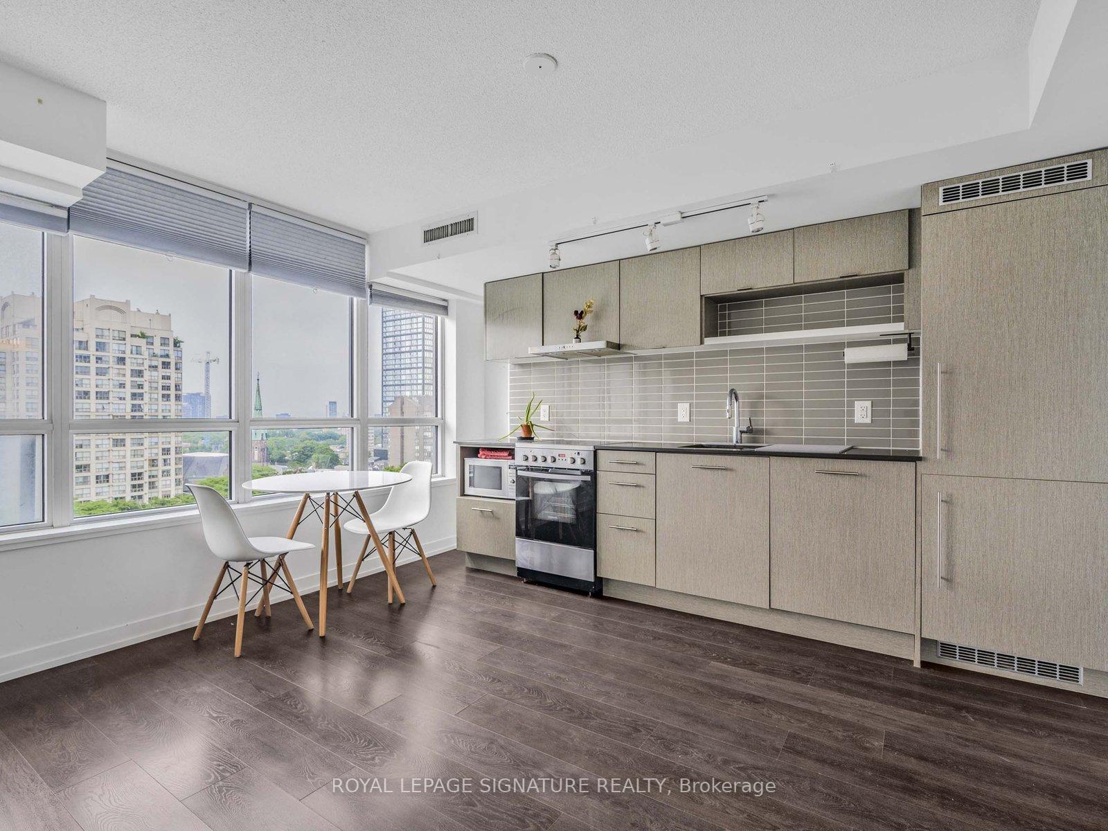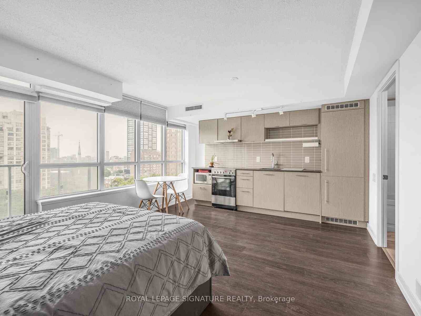 Sleek and smartly designed studio condo offering 405 sq ft of functional living space plus a private balcony with an unobstructed east-facing view. This open-concept unit features modern finishes throughout, including wide-plank laminate flooring and built-in stainless steel appliances. Perfectly located just steps from Toronto Metropolitan University, U of T, TTC, Eaton Centre, Dundas Square, major hospitals, and the Financial District. Groceries, shopping, dining, and entertainment are all at your doorstep - plus a perfect Walk Score to prove it. Enjoy an impressive array of building amenities: 24-hour concierge, well-equipped gym, yoga studio, party room, rooftop terrace with BBQs, theatre room, and more. Whether you're a student, professional, or investor, this is downtown living at its most convenient and stylish.