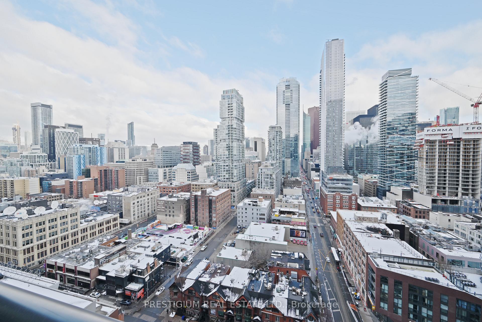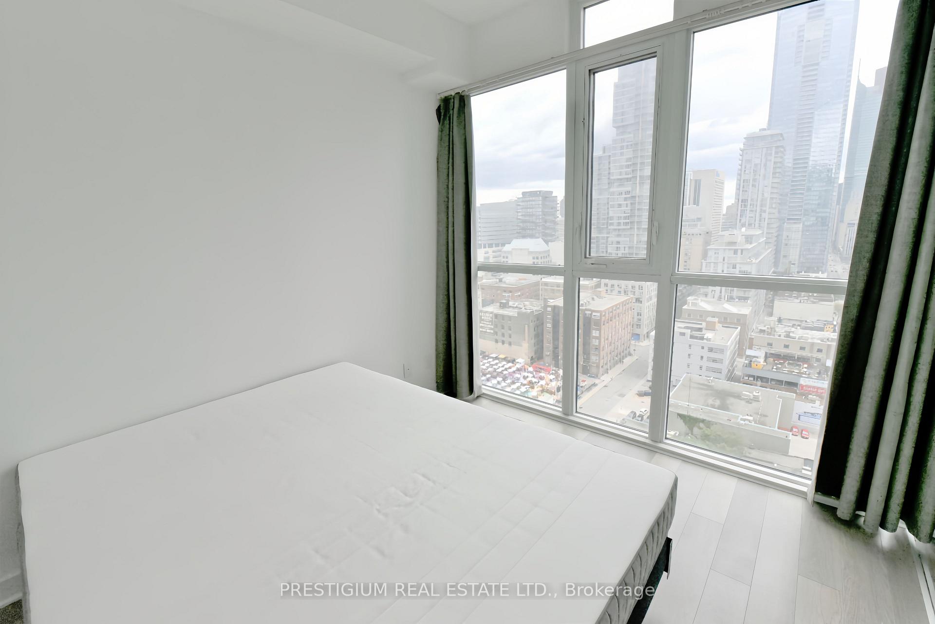 Welcome to this stunning southeast-facing corner suite offering over 800 square feet of bright, beautifully designed living space. Floor-to-ceiling windows wrap the unit, filling it with natural light and showcasing spectacular city views. Every detail reflects modern elegance - from the 9-foot ceilings and contemporary cabinetry to the designer bathrooms and sleek finishes throughout.The gourmet kitchen features premium stainless steel appliances, quartz countertops, and an undermount sink, perfect for both entertaining and everyday living. The open-concept layout creates a seamless flow, maximizing functionality with no wasted space.Located steps from Toronto's most iconic landmarks, the Financial District, premier dining, world-class entertainment, and effortless transit access, this residence captures the essence of sophisticated downtown living. Some photos taken previously.