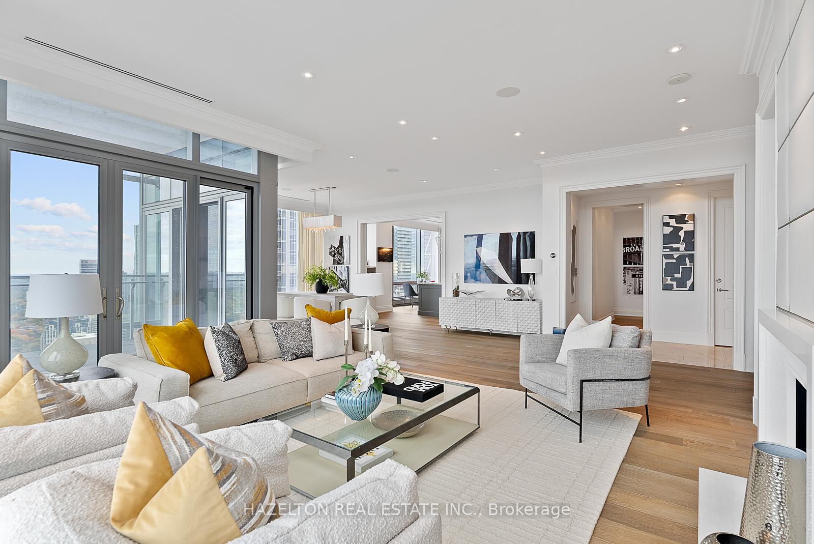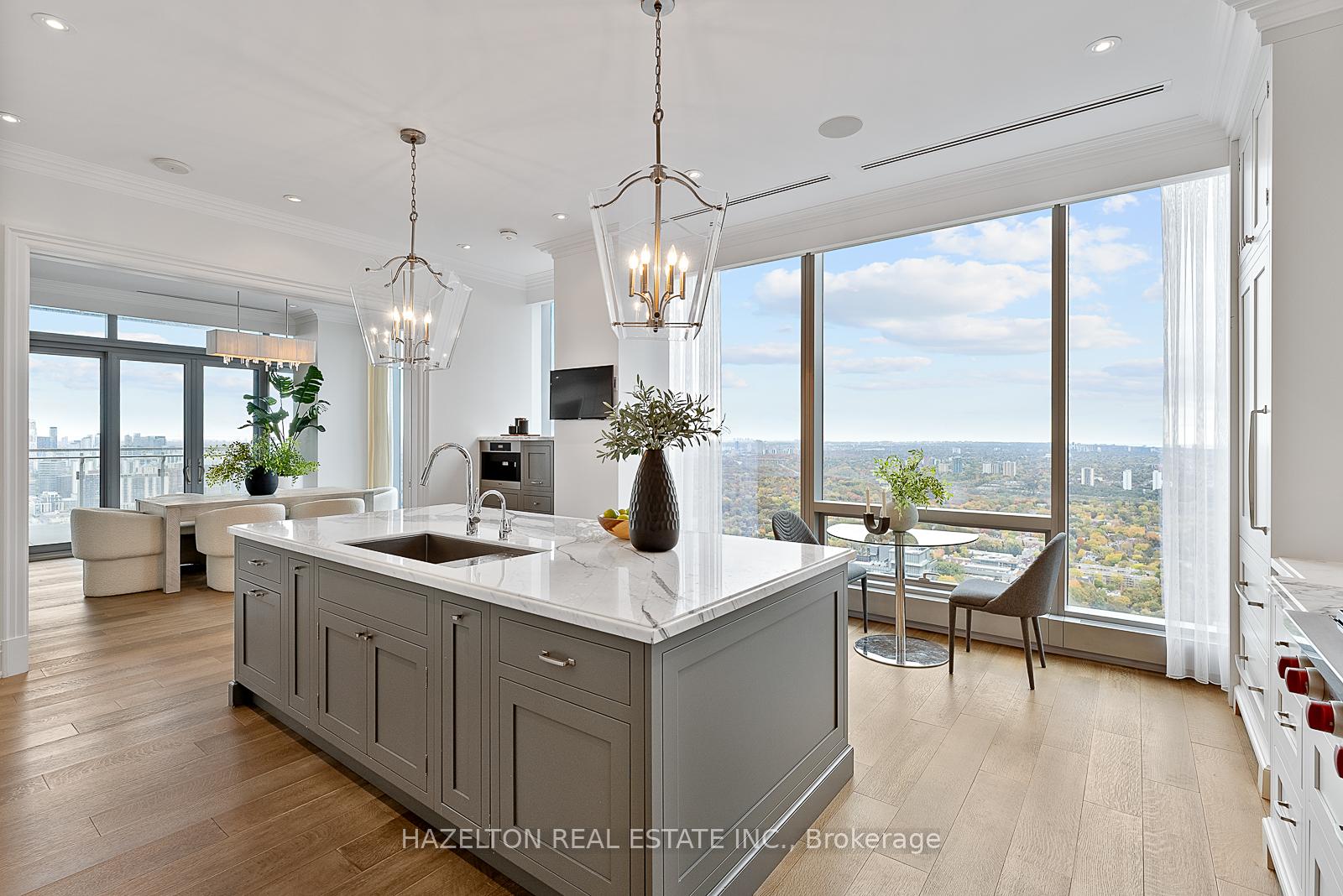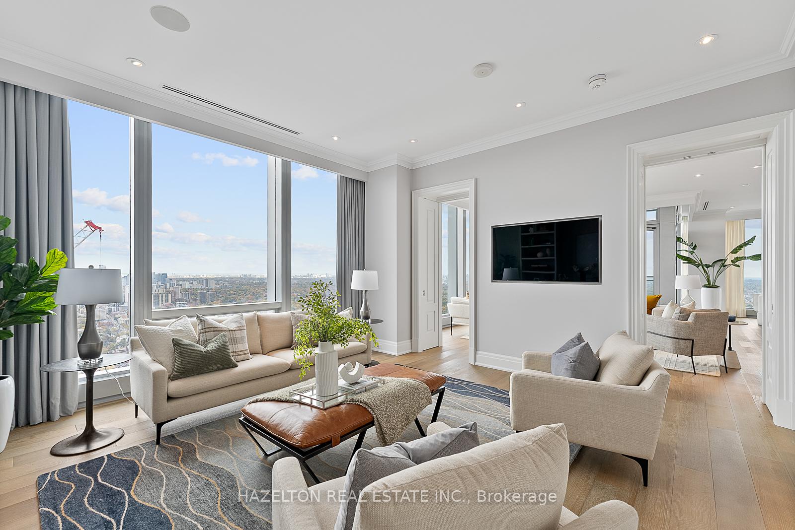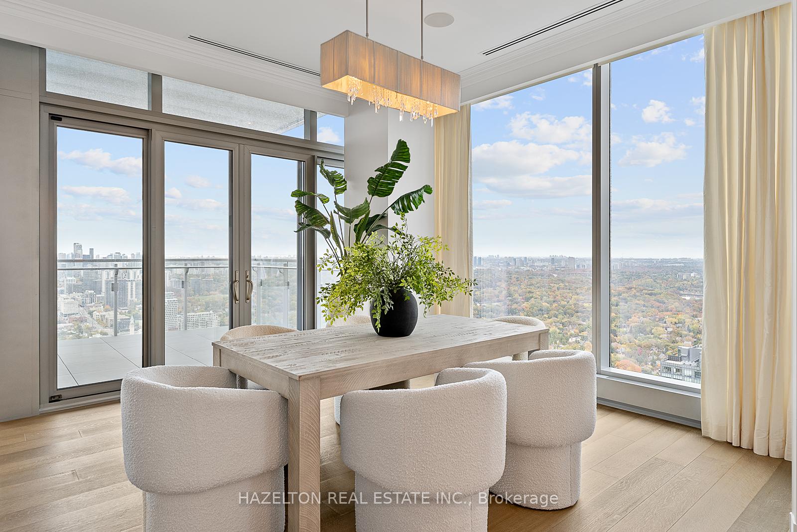 Experience unmatched luxury with breathtaking views at this rare opportunity in Four Seasons Private Residences, on the north-east corner of the 48th floor. This size and high floor rarely becomes available. Revel in truly unobstructed panoramic views stretching across the cityscape, and Rosedale Valley, offering a spectacle of sunrise and sweeping vistas from floor-to-ceiling windows. This remarkable suite stands apart with its redesigned, custom-built floor plan (far from the standard layout) , offering a unique living experience tailored for comfort and style. Soaring ceilings (with no bulkheads) and a generous 12 x 12 ft corner balcony provides a sweet spot for morning coffee or evening cocktails. The open entertaining space is generously proportioned, and the family room could be used as a second bedroom if preferred. The kitchen is like no other, exceptionally large and well planned with an abundance of storage and marble countertop space plus a walk in pantry. The primary suite is extravagant with an abundance of built ins, two walk in closets and a decadent spa like 7 piece ensuite. Truly a wonderful spot to call home in the heart of Yorkville.