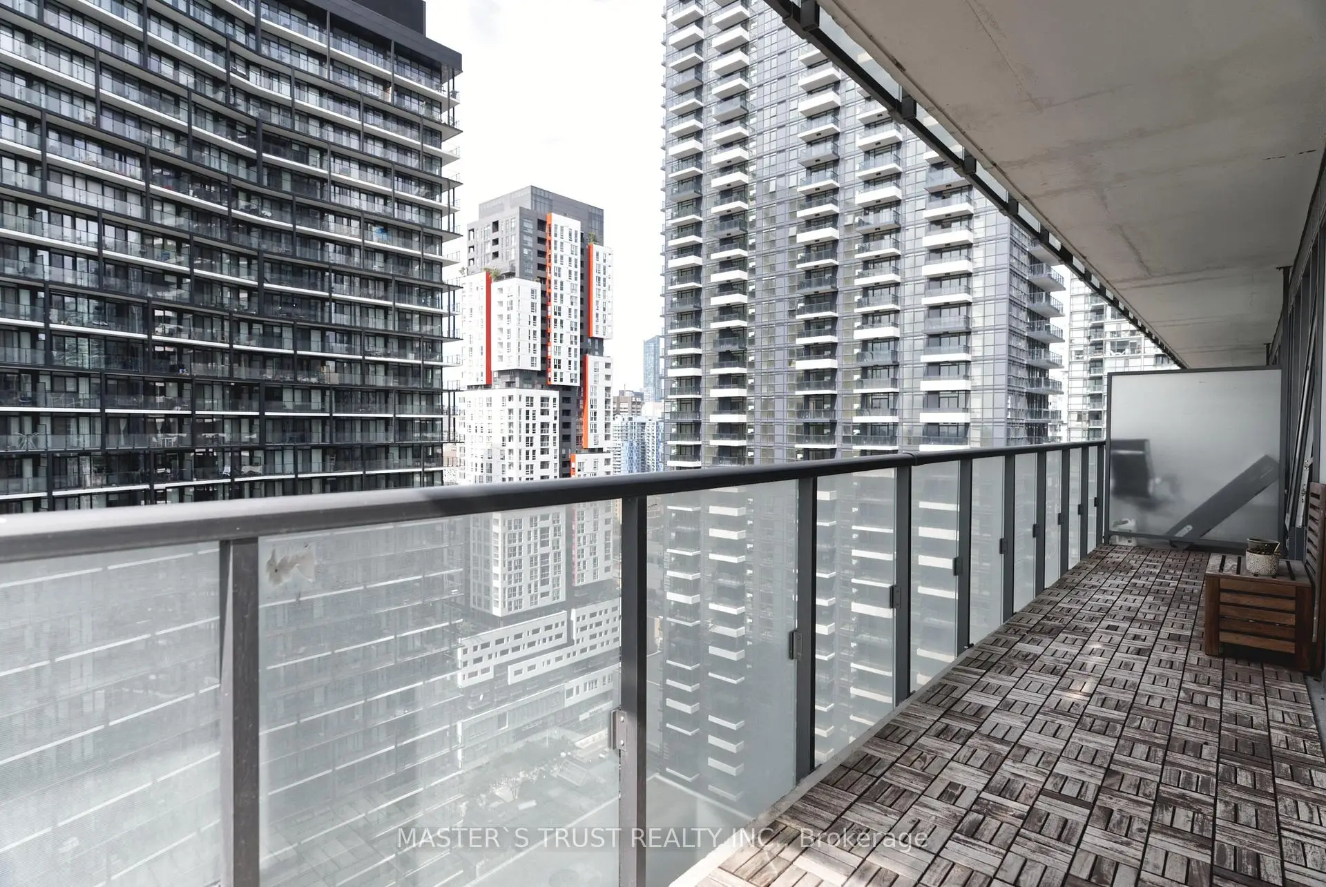Immaculate 2 Bedroom, 2 Bath Corner Unit On High Floor In The Heart Of King West! 9' Ceiling, Wood Floor Throughout, Floor To Ceiling Windows, Gourmet Kitchen with Stone Countertops, around 772 Sf Interior Space Plus 158 Sf Extra Wide Balcony upgraded with RUNNEN Decking! Steps To Ttc, Subway And Walking Distance To Financial District, Cn Tower Rogers Center, Shopping & Schools. This unit is a must see in person, Pictures don't do the view and space justice.