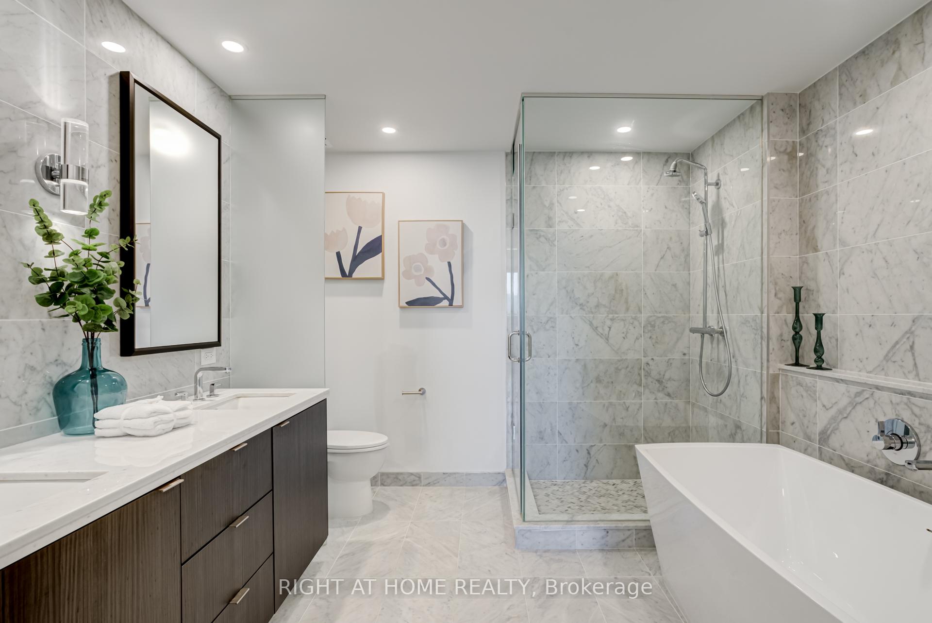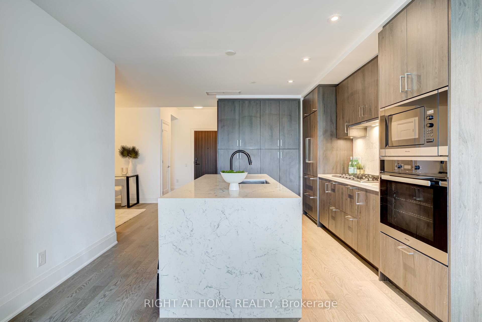 Welcome to Tridel's Bianca residences Suite 410 as part of premium Annex Collection, this bright spacious over 1300 sq ft south facing suite boosts unobstructed view of CN tower, Designer kitchen cabinetry with contemporary full height flat panel doors complete with integrated Miele appliances. Quartz kitchen countertop and matching backsplash with polished double square edge and deep undermount sink, Distinctive multitask island with waterfall edge countertop. Miele 36" integrated refrigerator with matching panel door, Miele30" built-in stainless steel convection wall oven, Miele 36" built-in gas cooktop, Miele 24" integrated dishwasher, Miele built-in, stainless steel microwave, Wiring done for motorized window blinds. Includes one parking at P1 Level and one locker.