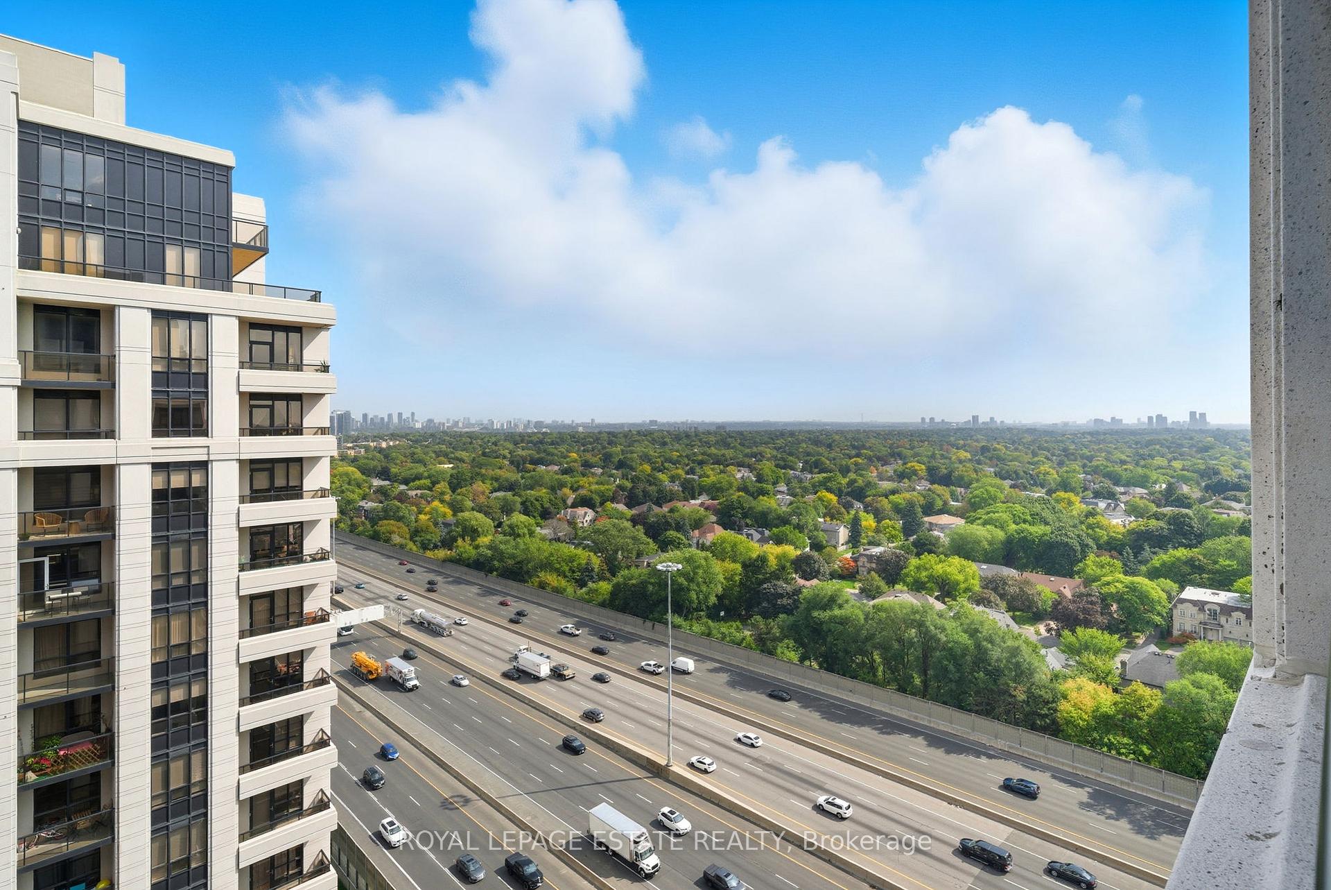 Excellent choice for professionals, couples and families alike! Welcome to 100 Harrison Garden Blvd. #1808, set within the highly desirable Avonshire Condos by Tridel in the heart of North York. Harrison Gardens is known for its safe, quiet, and family-friendly atmosphere, featuring beautifully landscaped gardens and an inviting community feel. This sun-filled 1+Den suite on the 18th floor boasts soaring 9ft ceilings, an open-concept layout, and a sleek modern kitchen with breakfast bar & stainless steel appliances. Step out onto your completely private balcony and take in the sweeping city skyline and lush green views - the perfect spot to relax, unwind, watch the sunrise or catch the city fireworks display! The spacious primary bedroom includes a full wall-to-wall mirrored closet with custom built-in shelving. While the versatile spacious den offers the flexibility of a home office or 2nd bedroom. Resort-style living awaits with an incredible list of amenities: 24hr concierge, indoor pool, whirlpool, sauna, gym, billiards, theatre, library, party room, dining room, guest suites, visitors parking and more! Enjoy movie nights in the park and community summer BBQ's. With Yonge & Sheppard Subway Stations, Parks, Longo's, Restaurants, Shops, Mall and Hwy 401 access all at your doorstep, this suite offers both convenience and lifestyle. Experience city living with a view! - Your perfect North York retreat!