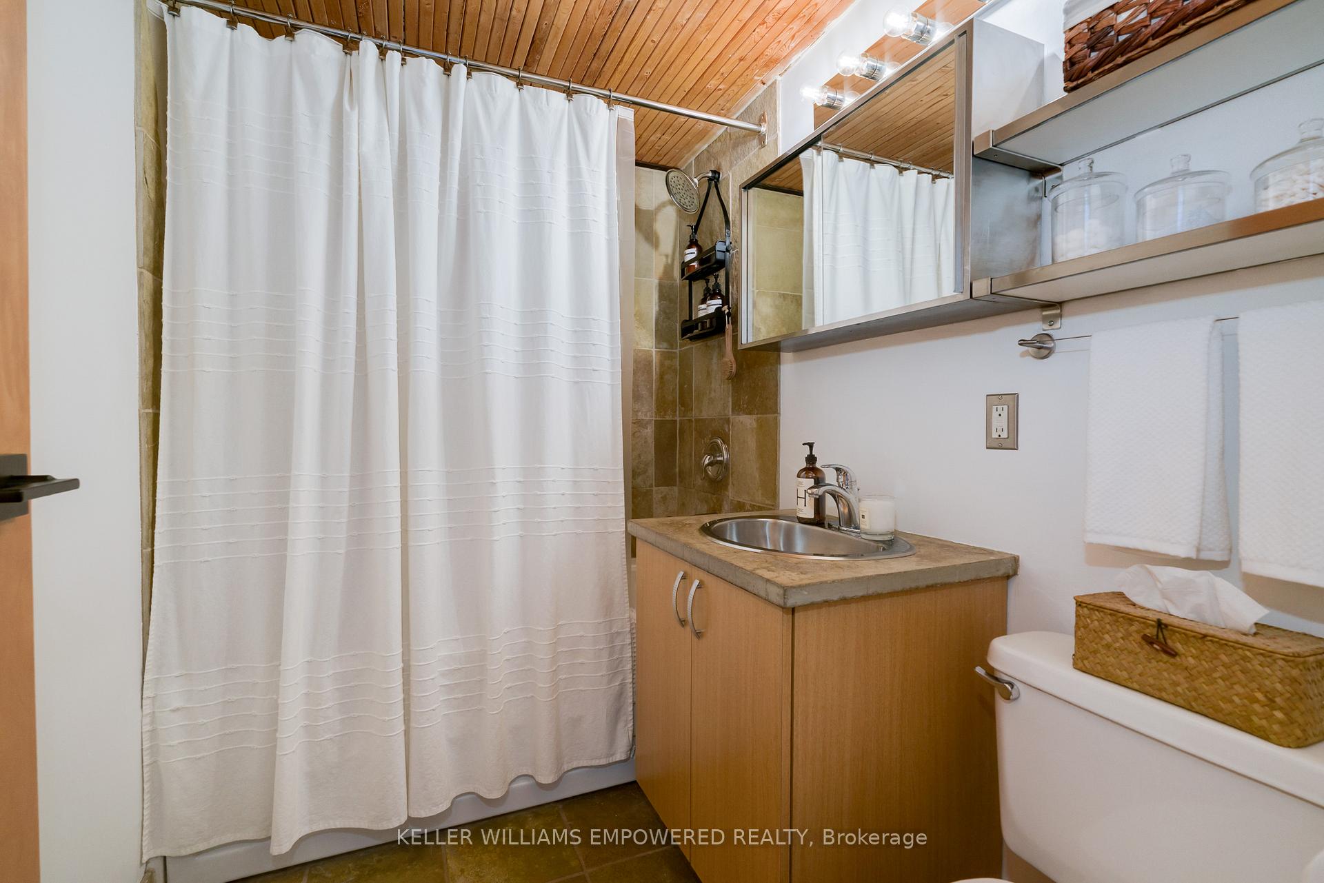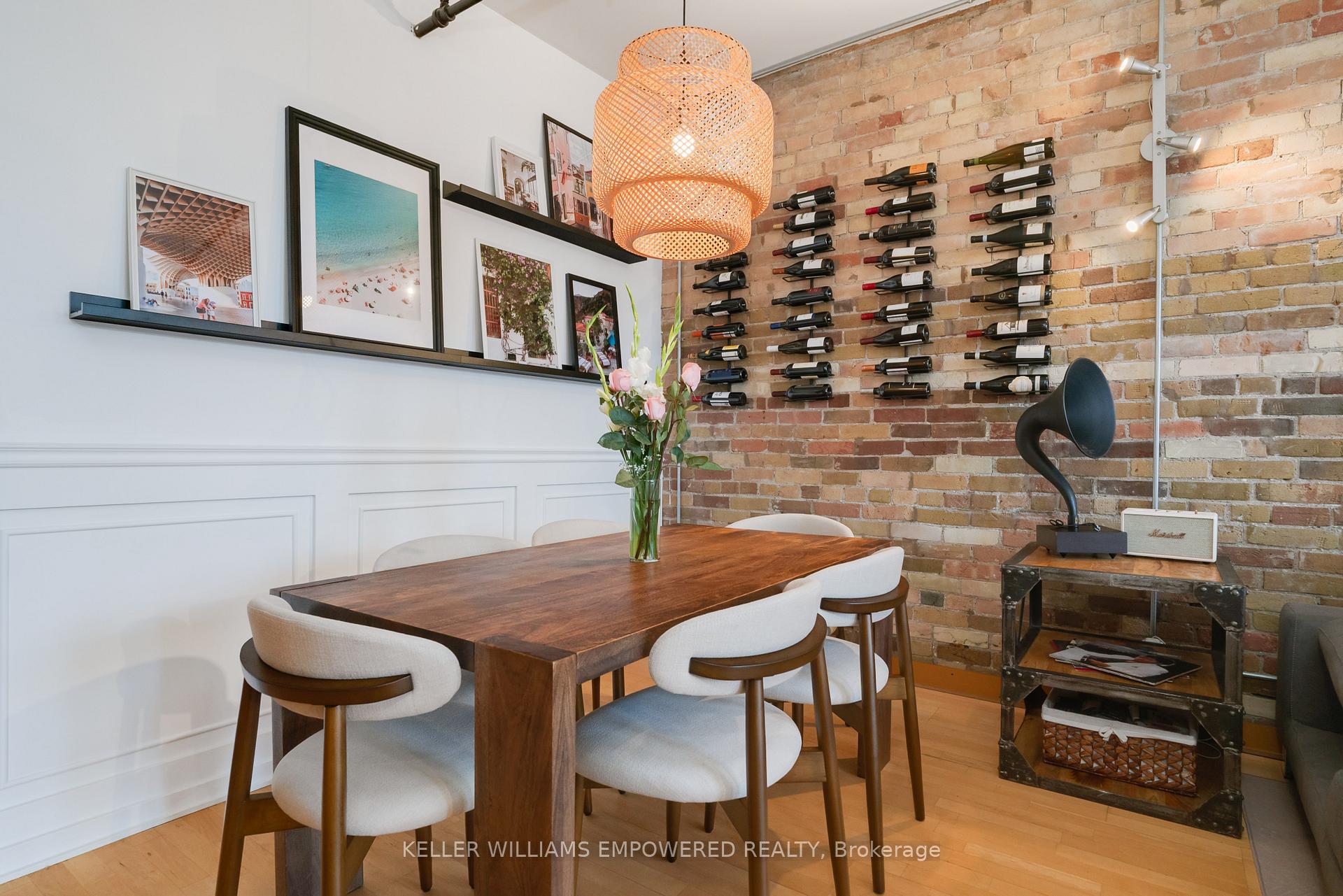 Welcome to Suite 5 of the Boiler Factory Lofts, a boutique heritage conversion with only 11 units. This is a rare opportunity to own a piece of history with exceptional value potential, thanks to the upcoming Ontario Line subway and redesigned park across the street. This true hard loft with low monthly fees offers 890-sqft featuring exposed brick & beams, 10-ft ceilings, oversized windows flooded with natural light, and a 30-ft statement chalkboard wall. The fully upgraded kitchen boasts ceiling-high cabinets and features a Viking professional gas range and hood, Blomberg fridge, Grohe semi-professional faucet, and Franke fireclay farmhouse sink. Thoughtful layout includes spacious bedroom that can easily accommodate a king-sized bed, formal dining area, two closets, ensuite storage unit, and laundry closet. Experience total Zen in your own 243-sqft. private rooftop terrace with striking skyline views, a true urban oasis for relaxing or entertaining. Convenient parking on Britain Street with direct rear access to the building. With a walk score of 98, you are steps to St. Lawrence Market, Distillery District, Financial Core, Eaton Centre, multiple parks, and have quick access to the Gardiner and DVP.