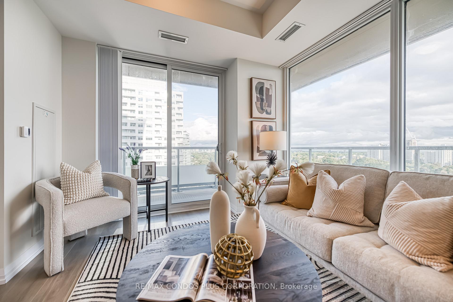 Luxurious Three-Bedroom, Two-Bath Corner Unit At Plaza Midtown By Plaza Group, Built Just One Year Ago. Step Onto The Southeast-Facing Wrap-Around Balcony For Unobstructed, Breathtaking Views Of Downtown And The City Skyline. This Stunning Residence Features Three Spacious Bedrooms And Two Modern Bathrooms, Perfectly Designed For Comfortable And Stylish Living. Enjoy The Airiness Of 9-foot Ceilings Throughout. The Primary Bedroom Boasts A Private Ensuite And Generous Closet Space, Creating The Ultimate Retreat. Enjoy A Sleek Contemporary Kitchen With Stainless Steel Appliances, Laminate Flooring Throughout, And Floor-To-Ceiling Windows That Fill The Home With Natural Light. Located In The Heart Of Yonge And Eglinton, You'll Be Steps Away From Top Schools, Subway Access, Shopping Centres, Cinema, Renowned Restaurants, Banks, And More. One Parking Spot And One Locker Are Included For Your Convenience. Experience The Best Of Urban Living In One Of Toronto's Most Vibrant And Highly Sought-After Neighbourhoods.