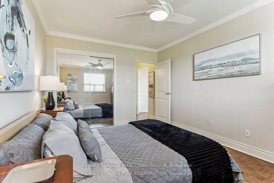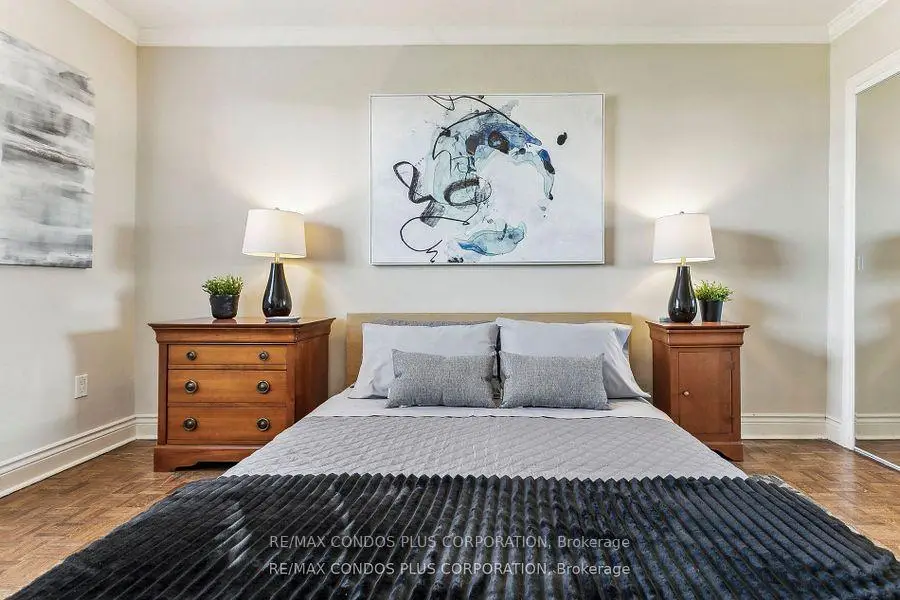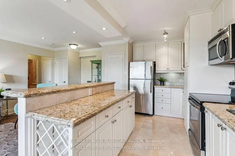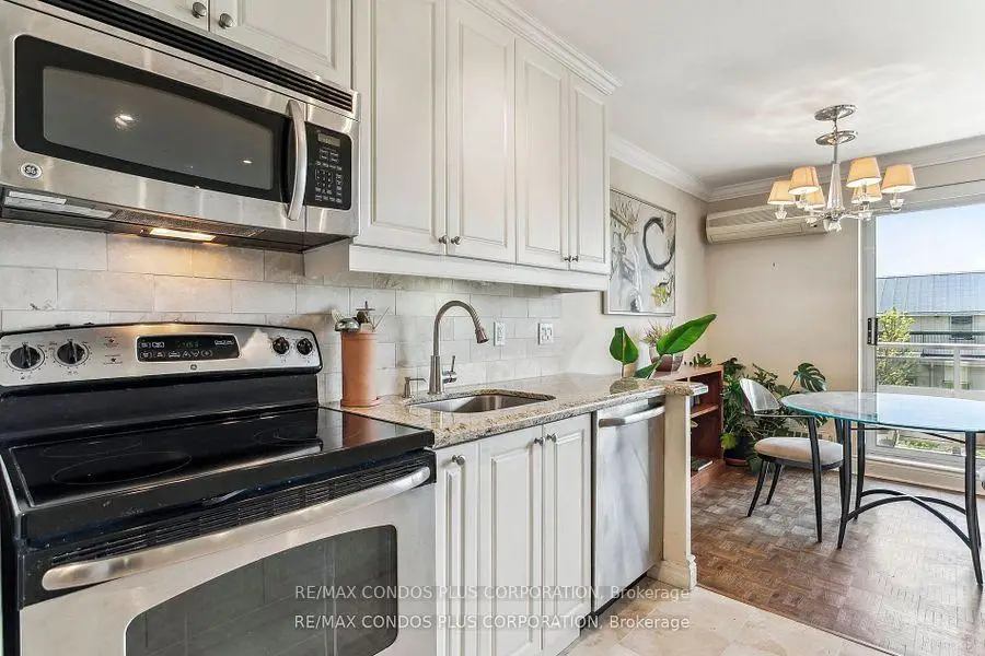 Buyers & Agents check this out! Turn Key Unit that checks all the boxes! Save W/All inclusive Maintenance & Property Taxes ONLY $628.69 Value-Space-Location! Top Floor, 735 Sq. Ft. 1 Bdrm. Dining Room W/Sliding door W/O to Private 138 Sq Ft Balcony-only 3 one BR units have this size Balcony. Superb bright S/W Panoramic View on Quiet North York residential Street W/Multi million dollar Townhomes. This full Reno Total Custom Upgraded unit W/continuing updates to present HAS Large thermal windows-smooth ceilings-crown moldings-7 in. baseboards. 2 Panel doors-Recessed lighting & tracks-Updated Electrical W/Extra Decora wall outlets & Dimmer Switches- High end finishes. 13 Ft Granite Counters. Kit w/4 SS Appliances-12 drawers-abundant storage upper Cabinets - spacious Base cabinets -Chrome Lazy Susan-Slat wood Wine rack. Large Breakfast bar, Travertine stone Backsplash & Flooring. Ready for Gourmet cooking & Sumptuous entertaining--before strolling to the private 31.8 ft Balcony Painted , Furnished & Updated W/Protective netting April 2025 to enjoy a beautiful evening view. LRT on Eglinton East. Bermondsey & Victoria Park stops working soon, Minutes to all amenities in multiple Plazas & Bus to Downtown. East parking lot entrance has wheelchair accessibility, easy access to lockers, furniture moving and in and out & deliveries. Note low ALL inclusive means Heat ,Hydro, Water, A/C, Parking, Locker & Property Taxes Do not miss out on this markets amazing opportunity. Not a co-op, No Board approval, No shares
