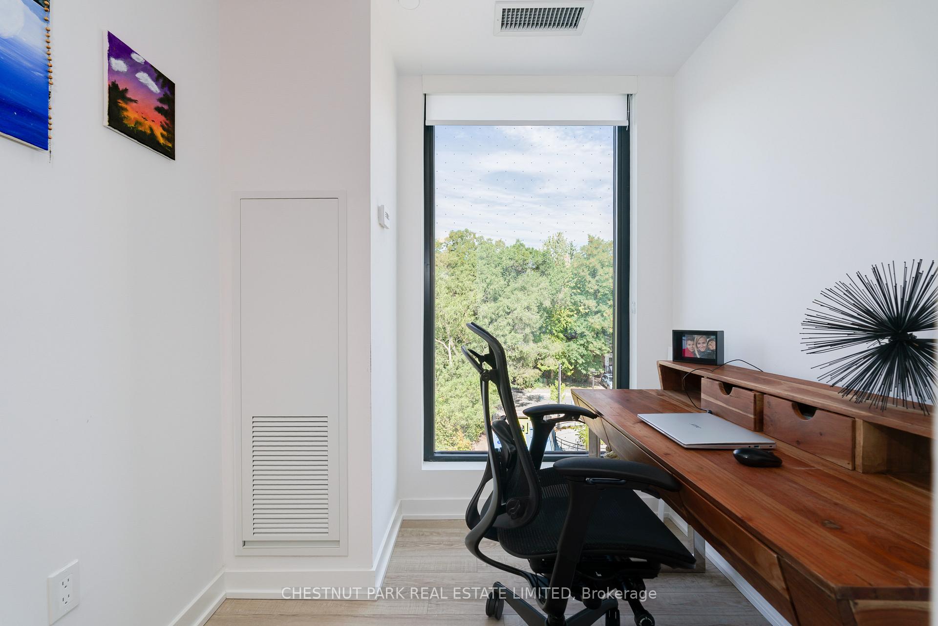 Welcome to 250 Lawrence at Avenue Road, where contemporary design meets timeless sophistication. This recently completed, northeast-facing 2-bedroom + den, 2-bathroom corner suite offers 921 square feet of thoughtfully planned living space, tailored to suit a variety of lifestyles. The intelligently designed layout ensures every square foot is fully functional and adaptable, making it easy to customize to your personal tastes. The open-concept living & dining areas extend seamlessly to a private balcony, creating the perfect blend of indoor and outdoor living. The sunlit kitchen is a chef's delight, boasting integrated appliances, elegant quartz countertops, a stylish tile backsplash, and sleek contemporary cabinetry. The highly desirable split-bedroom floor plan ensures privacy and space. The primary suite can accommodate a king-size bed, with ample closet space and a spa-inspired 4-piece ensuite. A well-appointed 4-piece semi-ensuite bath services the second bedroom, and the adjacent enclosed den is a perfect option for a beautifully designed home office. Included is 1 owned locker & 1 parking space. Life at 250 Lawrence is enhanced by resort-like amenities designed for both relaxation and productivity. Residents enjoy a 24-hour concierge, a state-of-the-art fitness centre & yoga studio, a fireplace/media lounge, and a rooftop club lounge with a beautifully landscaped terrace. For those working from home, the co-working lounge, meeting room, and kitchenette provide the perfect balance of convenience & comfort. Perfectly situated, this boutique building places you minutes from public transit, major highways, and a wide array of shopping, dining, & entertainment options. Families will appreciate the proximity to some of the city's most highly regarded public and private schools, while nature enthusiasts will love being surrounded by lush parks, trails, and green spaces. Experience a new standard of sophisticated urban living.