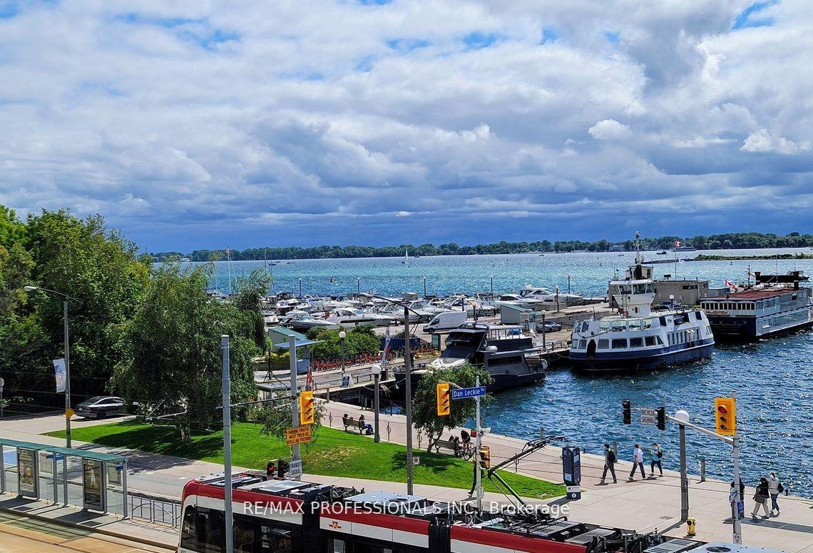Gorgeous 10th Floor Suite in Toronto's Prime Waterfront Queens Harbour Condos!!! This Beautiful & Rarely Offered 1 Bedroom Waterfront Unit Exudes Stunning Southwest Lake Views Oozing Tons of Natural Light Thru-Out! Featuring a Spacious & Efficient Layout w/ 9ft' Ceilings, Laminate Floors, an Open Concept Kitchen w/ Newer Stainless Steel Appliances & Sizable Breakfast Bar, this Unit has it All! Owned Parking & Locker. Unit Just Freshly Painted! Water, Heat, AC & Hydro Included in Maintenance Fees! Well Managed Condo w/ Superb Amenities: 24hr Concierge, Gym & Yoga Studio, Sauna, Party/Games Room, Library, 2 Guest Suites, Bike Storage, BBQ Terrace & Ample Visitor Parking. Enjoy the Best of Waterfront Downtown Living w/ Leisurely Park Walks Right at Your Door! Steps to the Marina, Bike Trails, Ferries, Harbourfront Centre, Union Station, Ttc, QEW, Rogers & Scotia Centre, CN Tower, the Entertainment District, Loblaws, LCBO, Restaurants, Cafes & So Much More! This is Waterfront Living at its Finest!