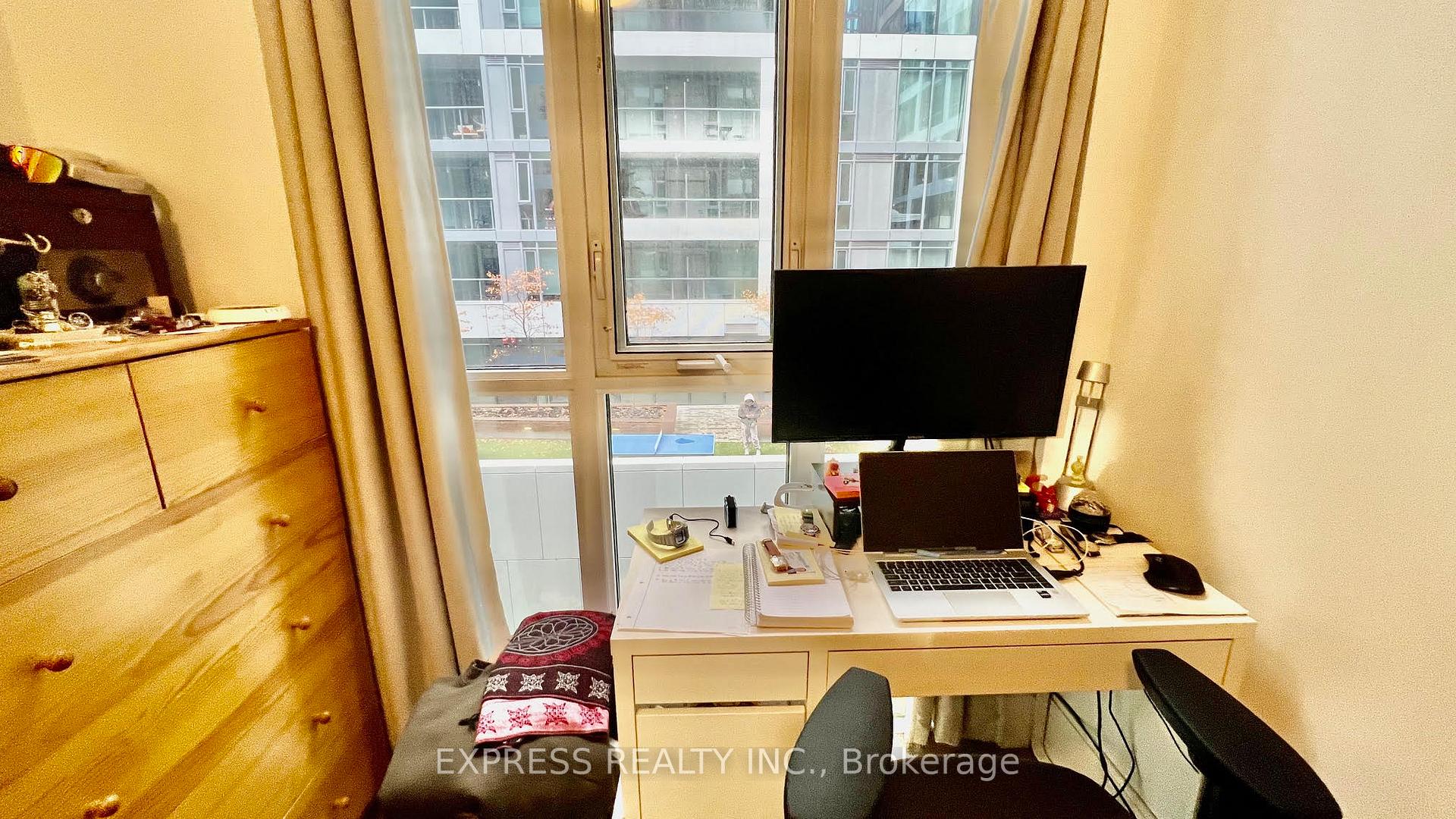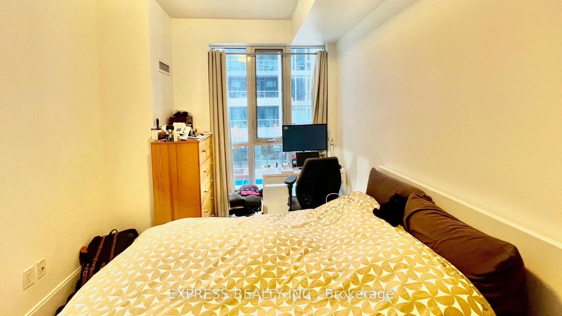 Live stylishly in the heart of downtown at Reve by Tridel - where modern design meets urban convenience. Step into this bright, spacious, and impeccably designed 1-bedroom suite in one of King West's most coveted boutique residences. This suite features stainless steel appliances, quartz countertops, and a private balcony with a view of the courtyard. Enjoy floor-to-ceiling windows, 9-ft ceilings, a smart open-concept layout, central air conditioning, and underground parking in a building packed with upscale amenities: 24/7 concierge, gym, sauna, media room, and rooftop terrace. The bedroom features floor-to-ceiling windows which makes the bedroom a very pleasant living and resting space. Resort-style amenities include a fully equipped gym, media room, party/meeting space, rooftop terrace with panoramic views, and abundant visitor parking. Located steps from the new iconic the Wells community, groceries, entertainment, the waterfront trails, Rogers Centre, Chinatown, LCBO and the best of King West's best restaurants, bars, cafés, shopping, and nightlife. TTC and transit options are at your doorstep. This is your chance to own a piece of downtown luxury in a Tridel masterpiece. Perfect for professionals seeking a vibrant lifestyle with comfort and connectivity.