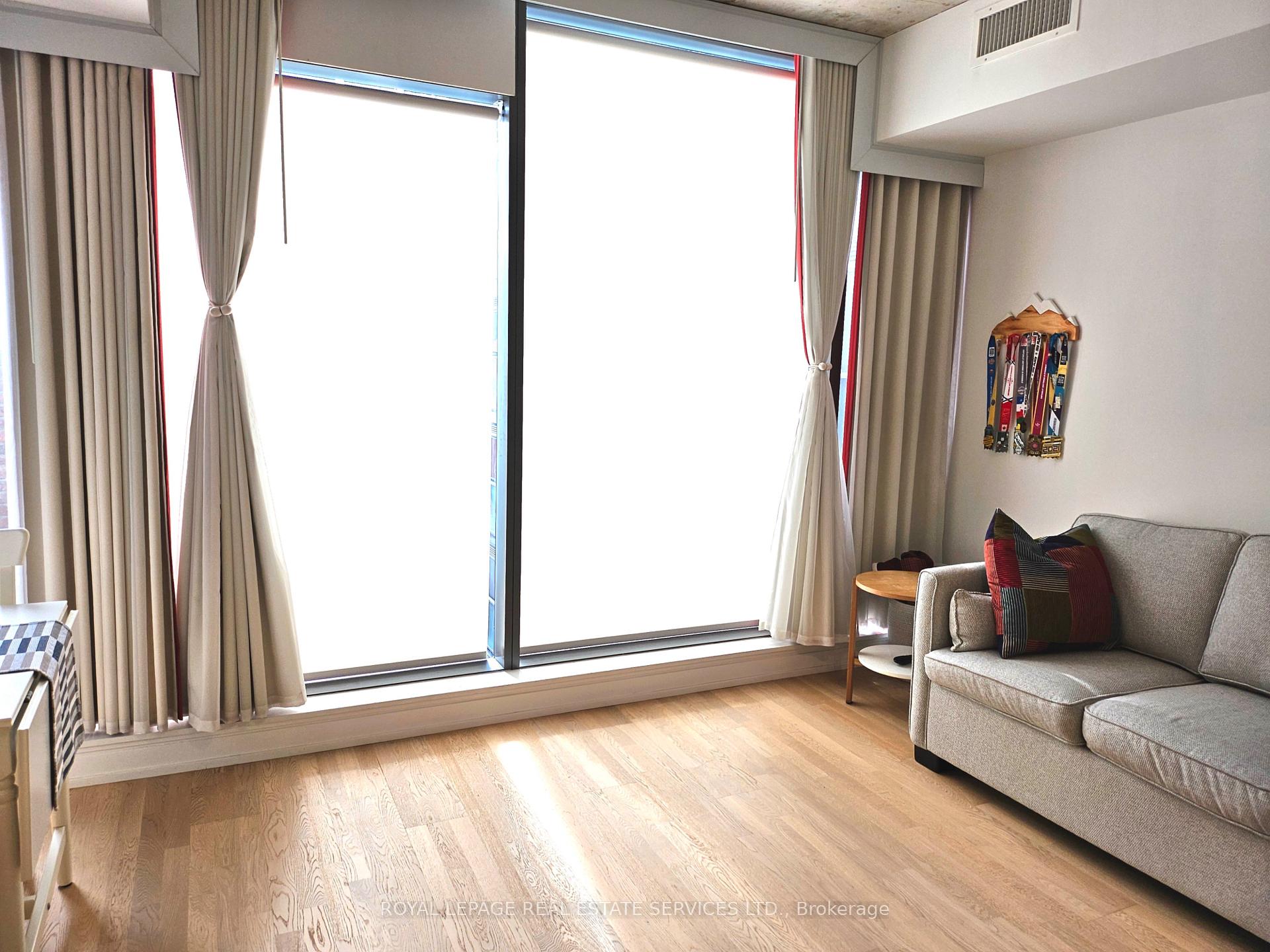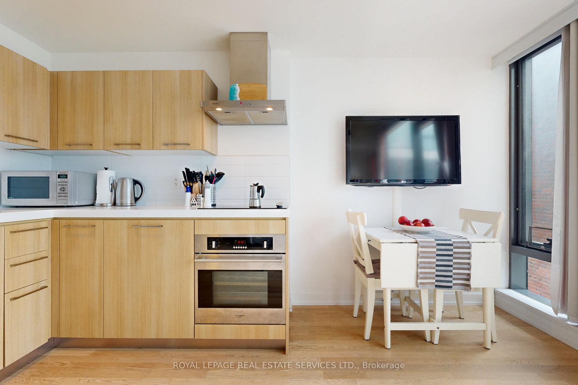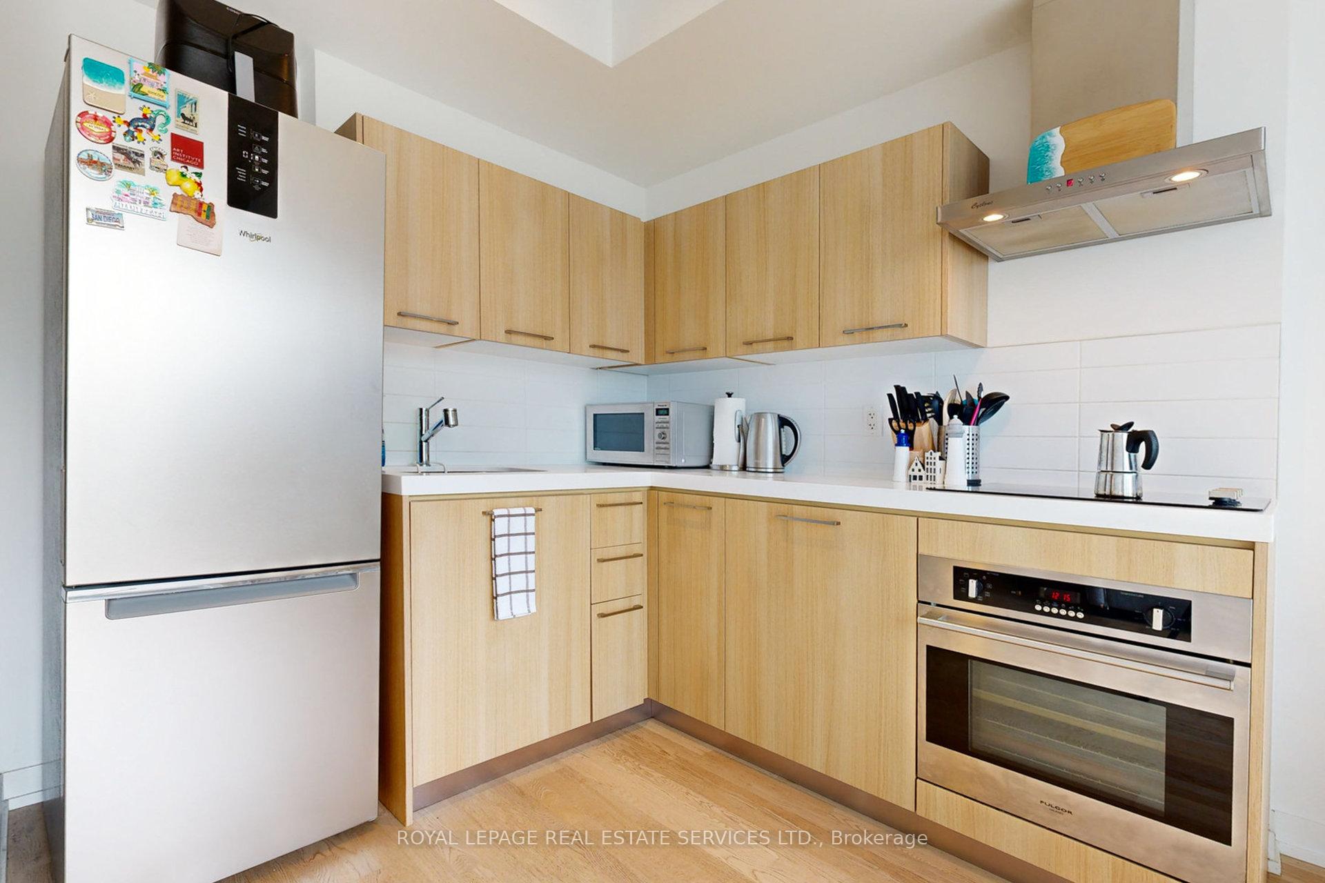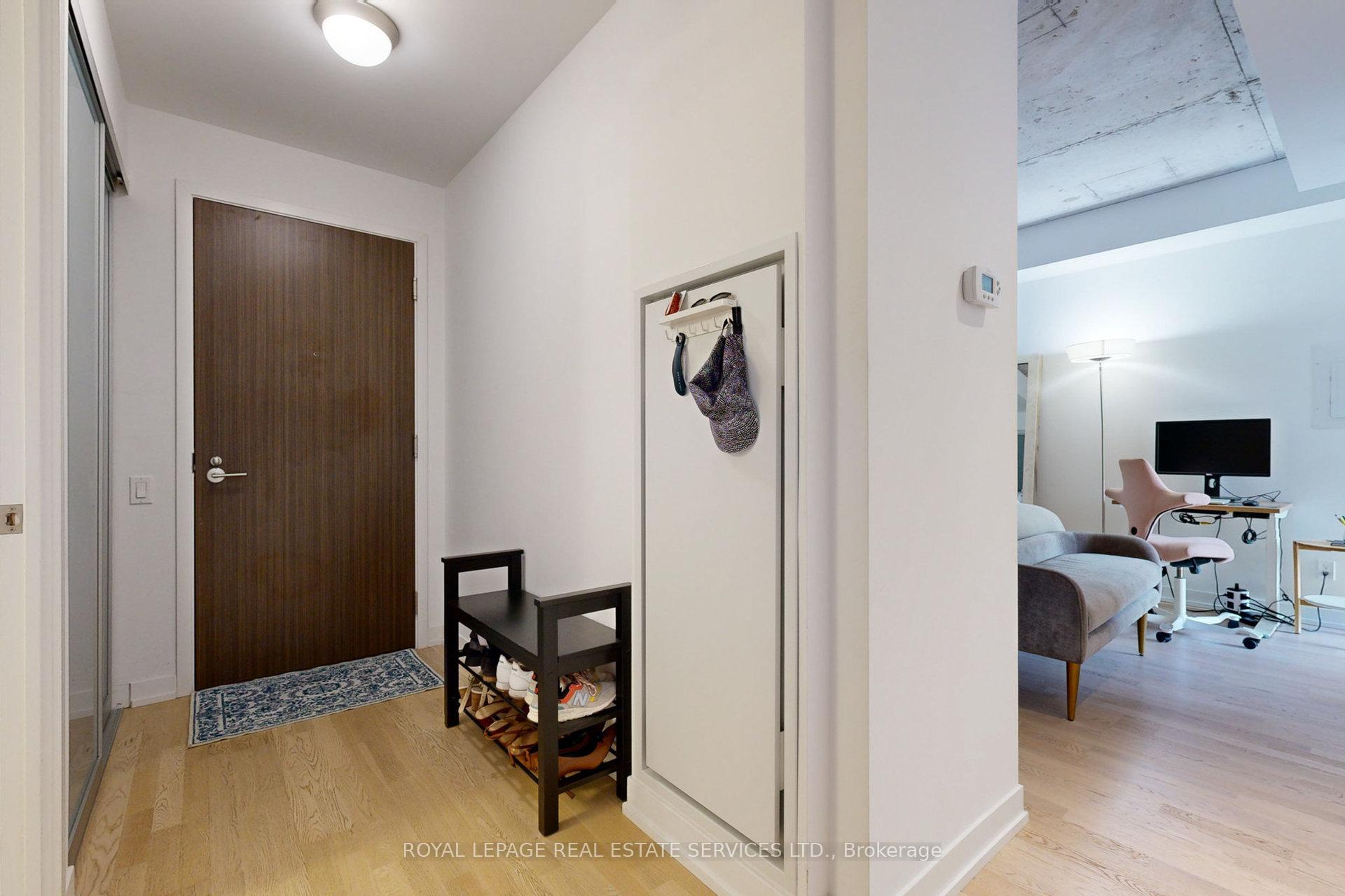 Newly renovated to enclose the bedroom and freshly painted from top to bottom! This 1-bedroom with a locker at the desirable Fashion House in the heart of King West has been impeccably maintained. Loft style, with soaring exposed concrete ceilings, beautiful finishes and floor-to-ceiling windows bringing in ample West-facing light. This 531 sq ft. suite feels comfortable and private, with a well-proportioned living/dining space and efficient layout. Sleek, modern kitchen with stainless steel appliances including a built-in oven, electric radiant cooktop, range hood, countertop microwave, refrigerator and panelled dishwasher. The separate bedroom has a large closet with organizers and a sliding fluted-glass door. Well-managed, boutique building with top-notch amenities: gym, 24 hr concierge, party/meeting room, and a rooftop infinity pool with incredible views of the downtown skyline! Ideal location on King West, close to transit, top restaurants, trendy bars and shopping. Well-established maintenance fees include water, heat, A/C and a storage locker. This unit has been very well cared for by its owner and is ideal for a first-time buy, downtown pied-a-terre, or solid investment. Excellent value in a superb building!