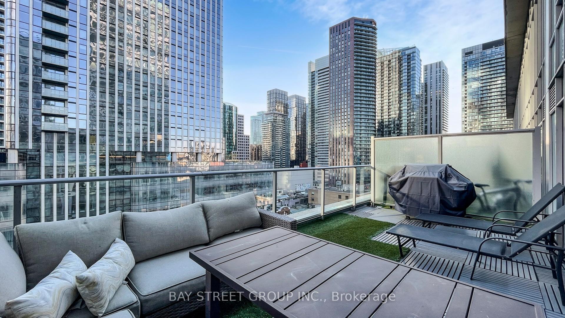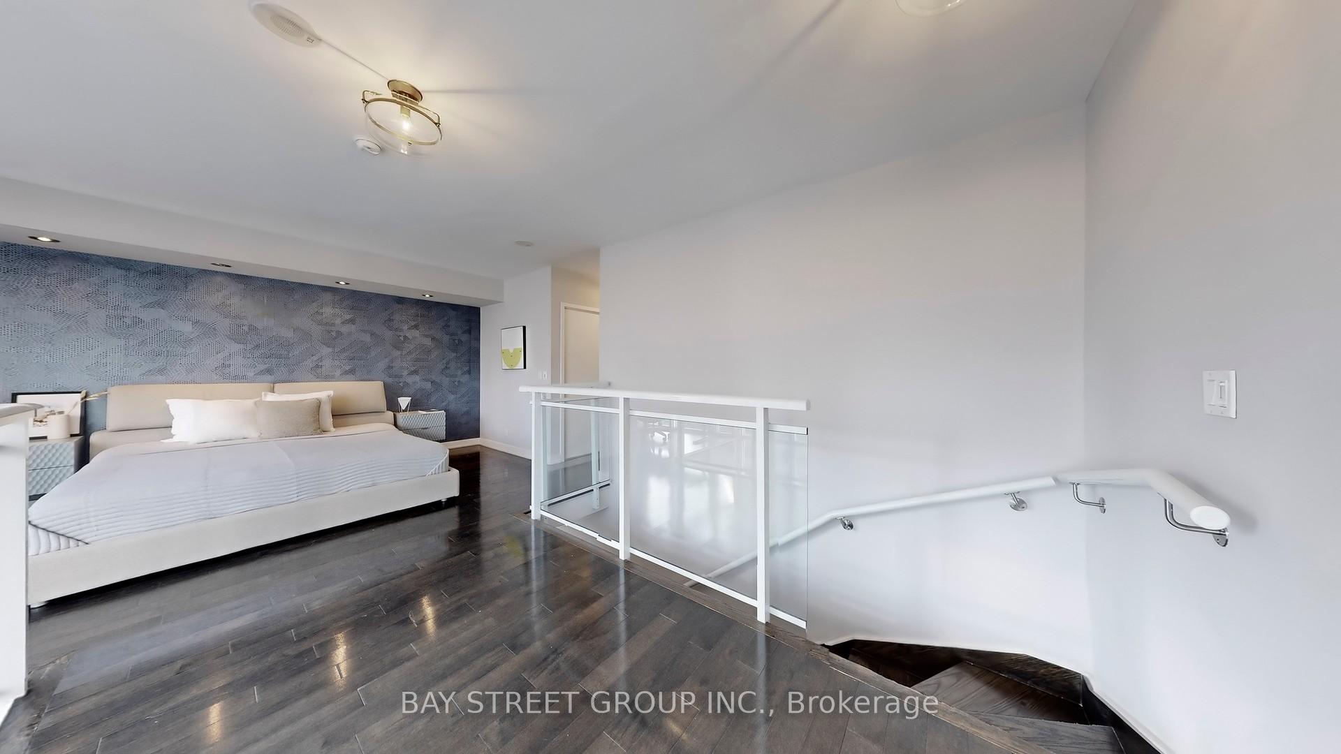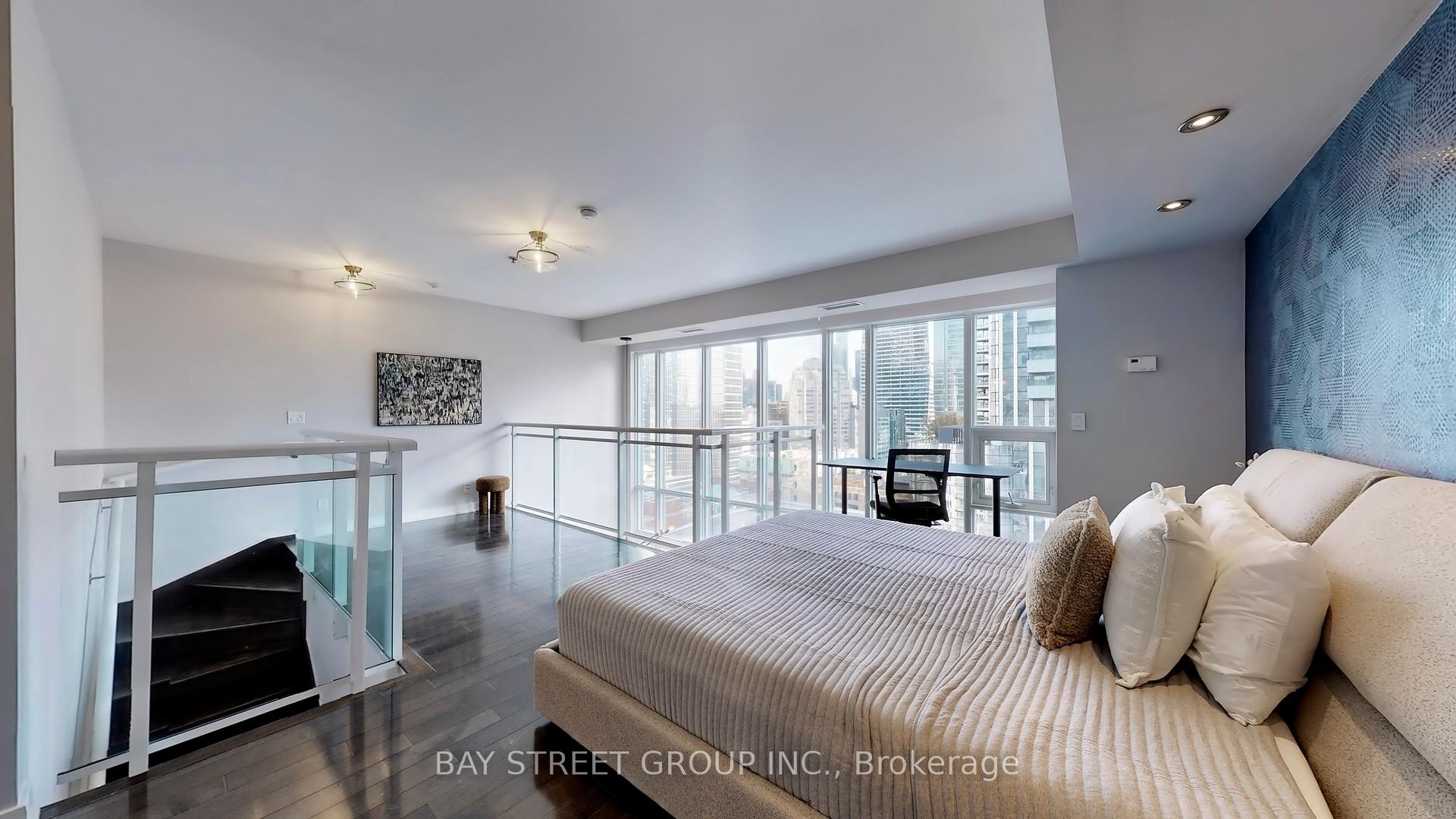 Stunning south-facing 2-storey upper penthouse with dramatic floor-to-ceiling windows flooding the space with natural light. Features an oversized 240 sq ft terrace with BBQ-perfect for entertaining. The main level offers an open-concept layout with hardwood floors and a combined kitchen/living area. The second-floor primary suite includes a dedicated office area, a walk-in closet, and a spa-inspired ensuite. Comes with Tandem 2-car parking and Automatic Blinds, All just steps to the subway and Toronto's Financial & Entertainment Districts.