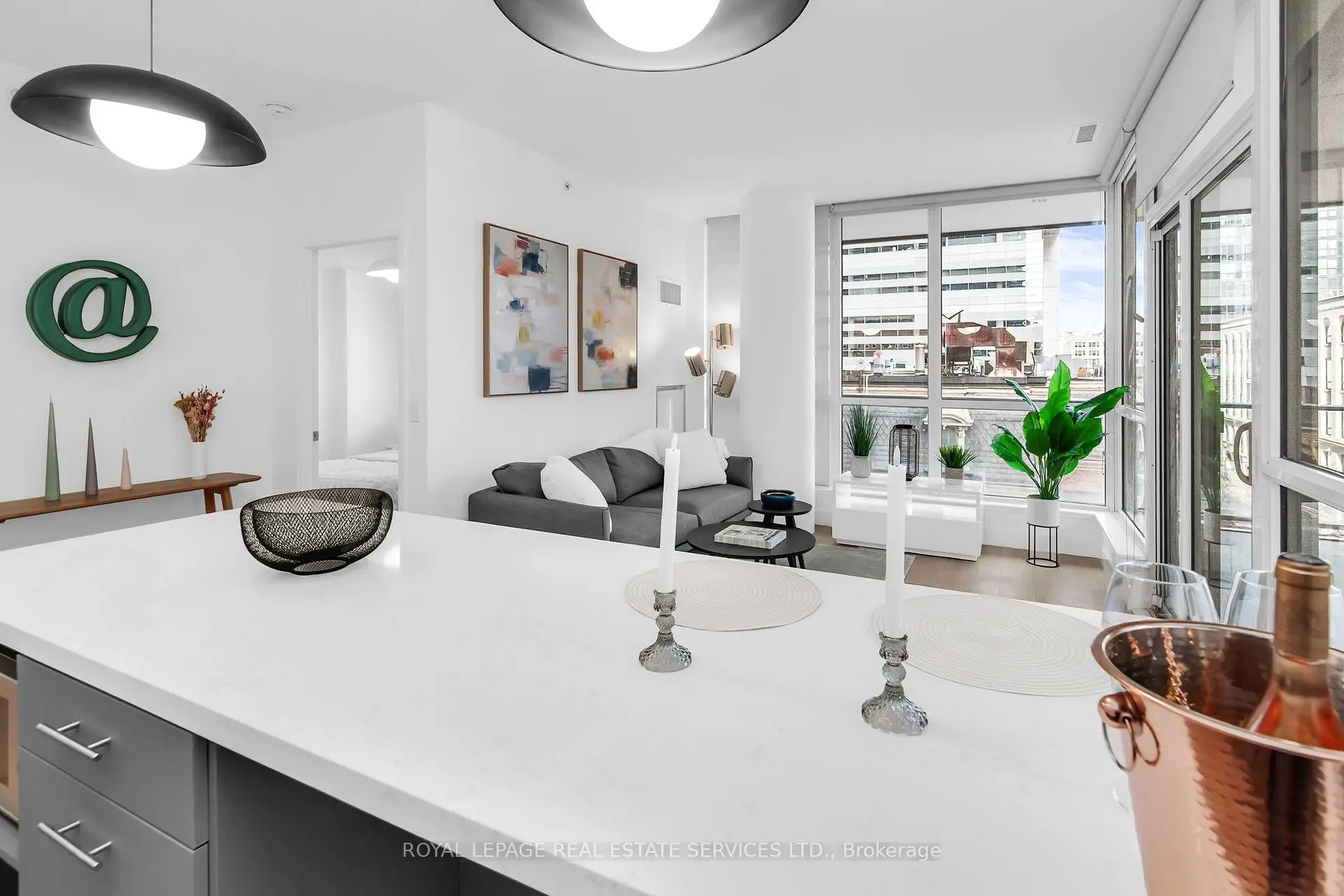 Welcome To The Mercer! This Gorgeous Rare Corner Suite Features Floor To Ceiling Windows And An Extra Large Covered Outdoor L Shaped Terrace. The Majority Of The Terrace Faces East Allowing For Bright Natural Light And Views Of The Queen Elizabeth Theatre To The North And Roger's Centre To The South. This Boutique Stylish Unit Features $50,000 Worth Of Upgrades Including New Floors, Interior Doors, Baseboards, Kitchen Cabinetry, Kitchen Sink, Lighting Throughout, Kitchen Island, Quartz Countertops, New Cooktop, Kitchen Backsplash, Bathroom Vanity, Bathroom Lighting, Bathroom Fixtures, Bathroom Sink, And Fresh Paint Throughout The Entire Suite. The Large Open Concept Kitchen Features A Huge Island With Room For Four Counter Stools For Entertaining, A Miele Fridge, Miele Oven, And Microwave. The Unit Has A Great Hallway Entrance With Large Storage Cabinetry And A Coat Closet. The Unit Is Close To The Staircase For Easy Exit From The Building. It Also Includes A Storage Locker. Move In Ready! Top Of The Line Amenities Include A Gym, Party Lounge, Sauna, Jacuzzi, And A Beautiful 10,000 Sq Ft Rooftop Terrace. Steps To The PATH, St. Andrew Subway Station, TIFF, Roy Thomson Hall, Financial District, Top Restaurants And Everything The King West And Entertainment District Has To Offer.
