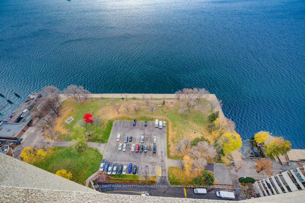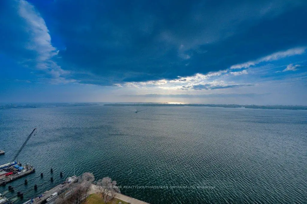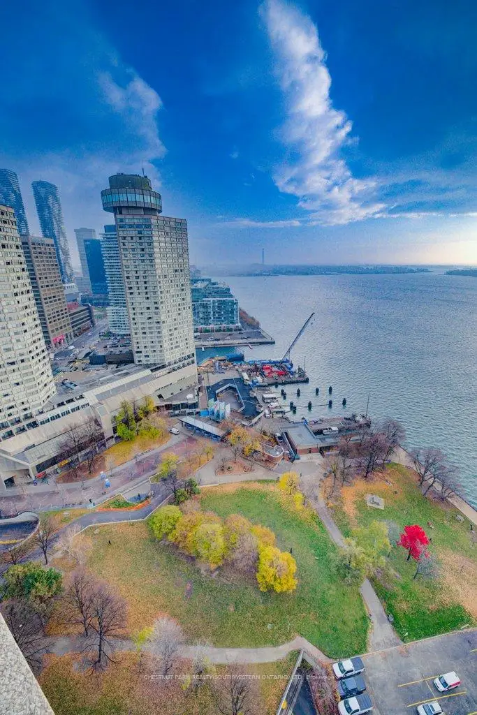 Welcome to Harbour Square Condos - where luxury living meets unforgettable lakefront views! This spacious split-level one-bedroom suite offers approximately 1,040 sq. ft. of beautifully designed living space, highlighted by unobstructed south-facing views of Lake Ontario from nearly every room. The open-concept living and dining area features gleaming hardwood floors and flows effortlessly into a well-appointed kitchen, complete with a convenient breakfast bar perfect for casual meals or entertaining. Head upstairs to your private primary bedroom, showcasing stunning panoramic lake vistas and a 4-piece bath. More than just a home, residents enjoy an impressive array of resort-style amenities, including a 24-hour concierge, fitness centre, indoor pool, saunas, squash courts, party rooms, and a rooftop terrace with BBQs, gardens, and a private park. Additional conveniences include guest parking, a car wash, on-site management, and a complimentary downtown shuttle service. The building also features an underground connection to the Harbour Castle Hotel for easy year-round access. Ideally located just steps from the waterfront boardwalk, ferry terminal, restaurants, shopping, schools, and transit, this is prime downtown lakefront living-without the 2-3 hour drive to the cottage.