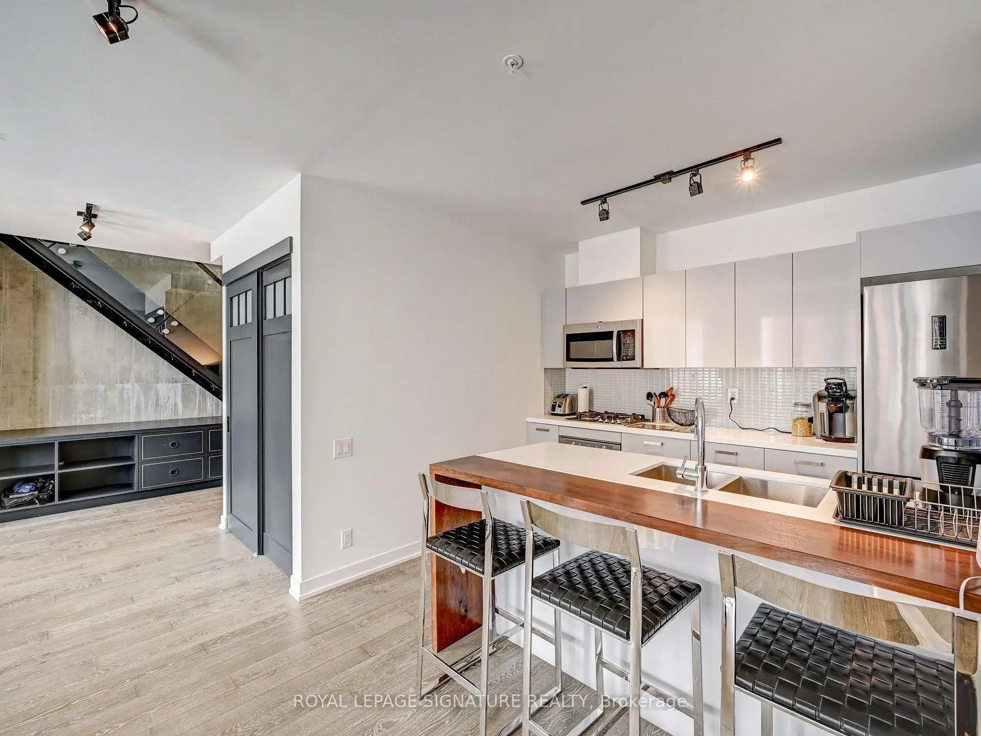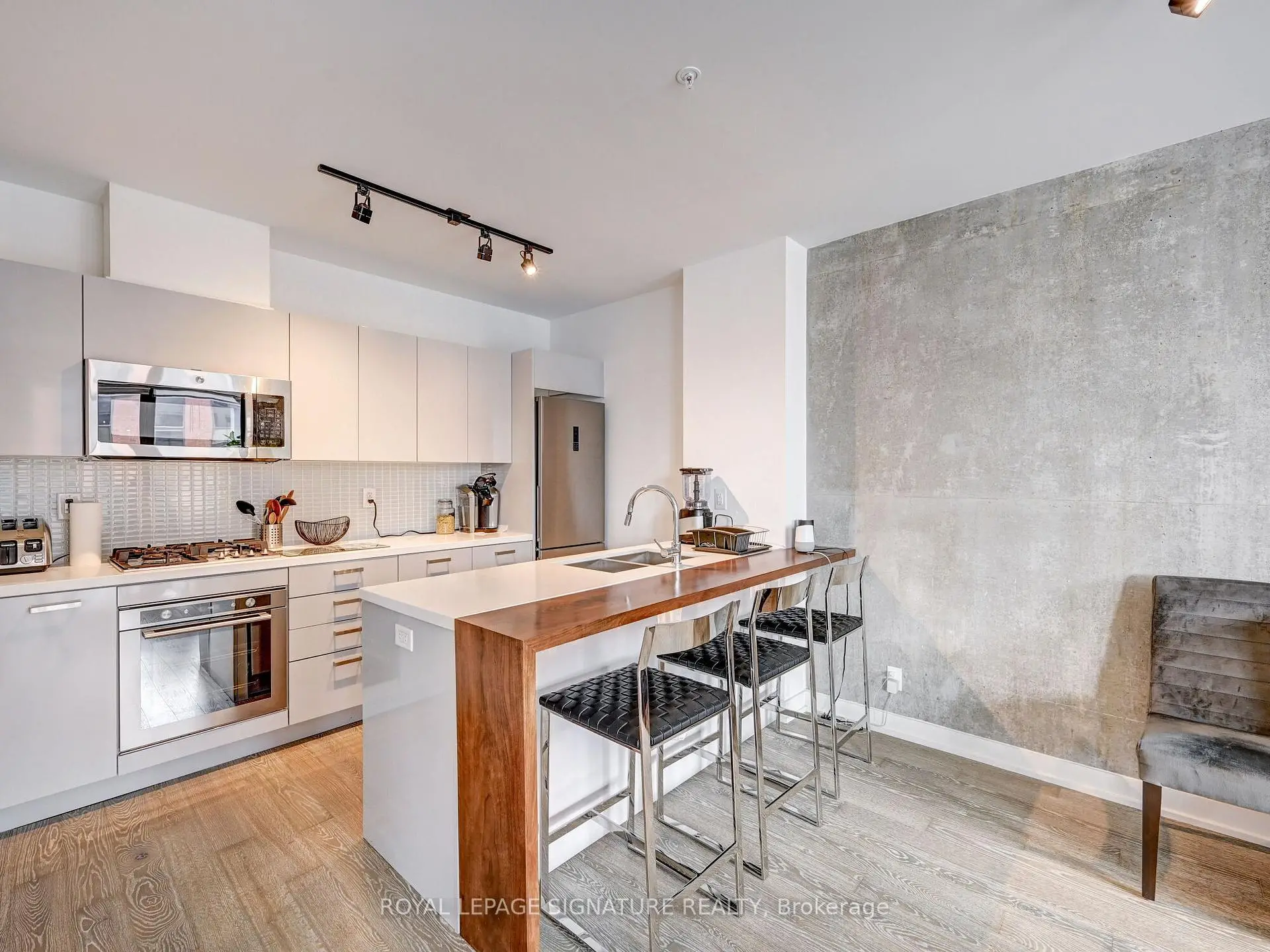 Stunning 2-Storey Penthouse in Prime Downtown Location! Exceptional 2-bedroom, 2.5-bathpenthouse in a newer, boutique and well-managed building. Nearly 1,200 sq. ft. of modern living with floor-to-ceiling windows and an expansive south-facing terrace offering CN Tower views. Features include high ceilings, exposed concrete walls, engineered hardwood floors, and a European-style kitchen with stone counters and stainless steel appliances. Sleek bathrooms, custom built-in cabinetry, and ample storage throughout. Includes 1 underground parking spot. Outstanding Walk Score of 99 with parks, shopping, restaurants, and entertainment at your doorstep. Steps to King, Queen & Spadina streetcars and minutes to the best of downtown living.