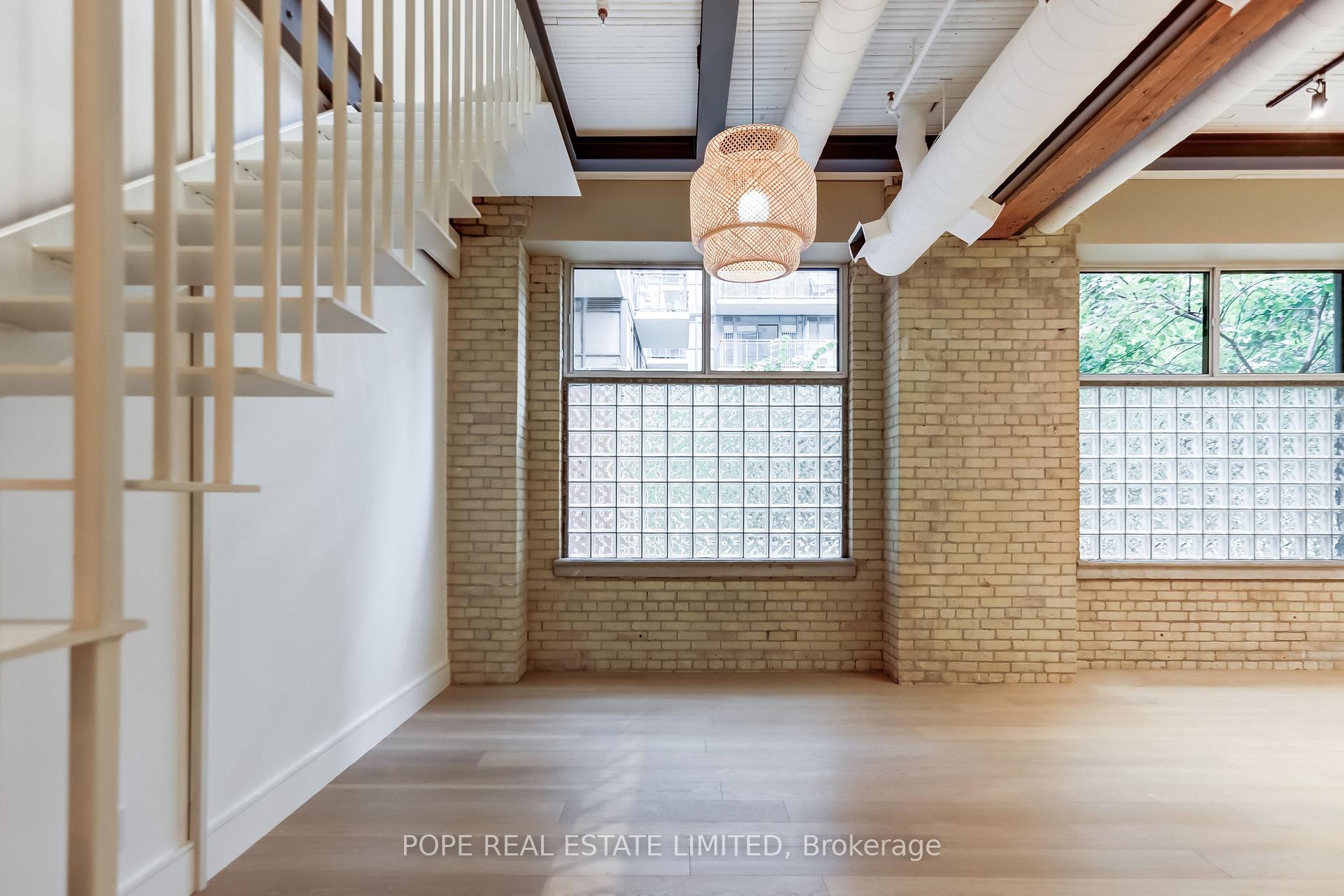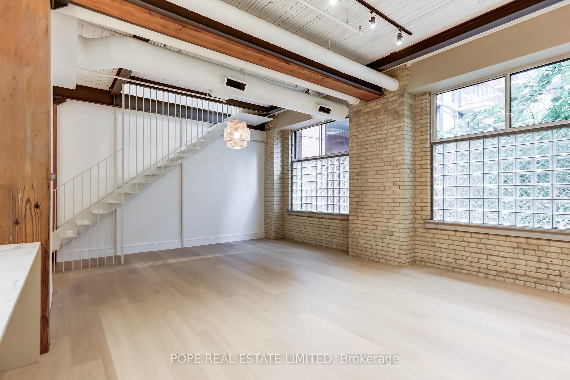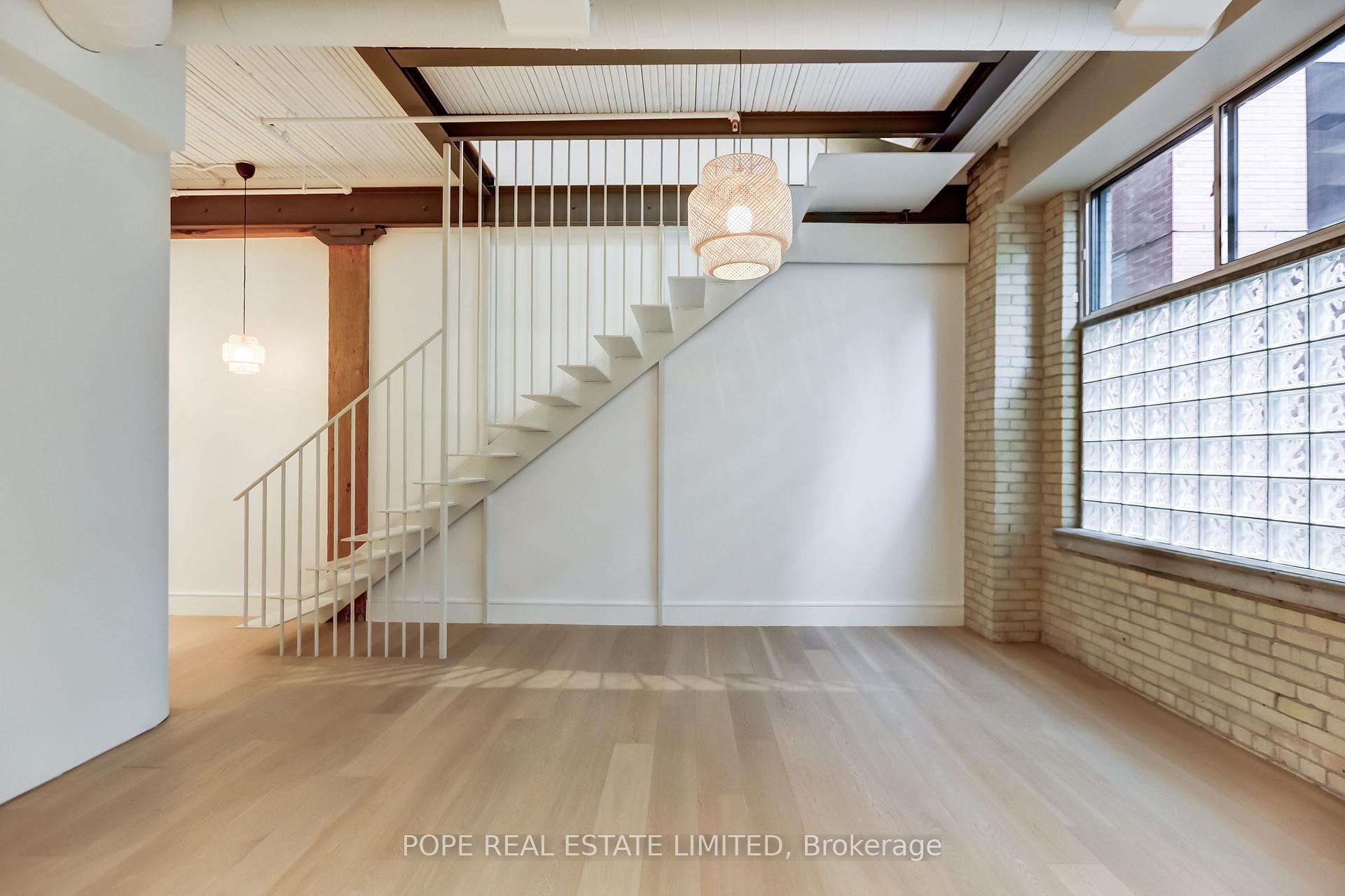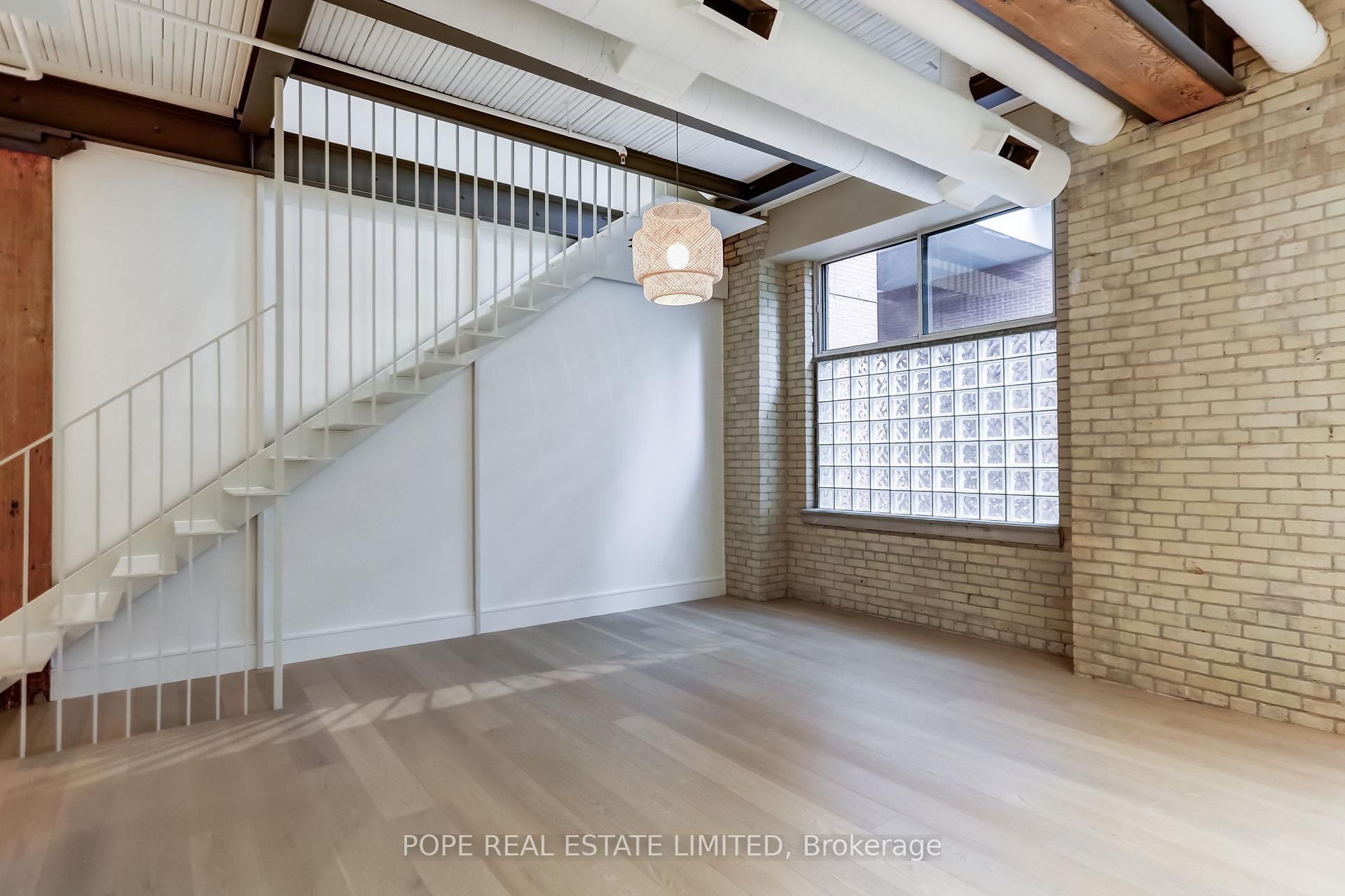 Gotham Vintage Lofts. A rare and much sought after post and beam, exposed brick loft situated in the heart of King West. Formerly constructed between 1903 and 1910 to serve as a horse harness factory and later as a textile mill. After many decades of commercial activity, the 6 storey building building was repurposed and reimagined in 1997 by Paul Anisman into 54 stylish vintage lofts. Recently, the apartment was completely renovated & upgraded to please the most discerning buyer. The apartment showcases 1020 sf of interior space and a rare 30 sf balcony on 2nd floor overlooking the beautifully landscaped garden courtyard Minto 775 complete with fireplace and water feature. This beautiful bespoke loft showcases 2 levels,12 ft wood ceilings on the main floor, a custom white metal open riser staircase leading to the second floor,10 ft wood ceilings on the 2nd floor, white oak plank floors throughout, exposed brick, spiral ductwork, large windows, a walk-in front closet complete with stacked washer/dryer, upgraded lighting throughout. The numerous bespoke finishings continue to showcase a custom kitchen boasting premium integrated appliances, quart counter & backsplash, centre island & breakfast bar. The stylish contemporary baths showcase large format tile, custom vanities, upgraded light & plumbing fixtures, large w/i shower, frameless glass enclosure, rain shower, handheld water wand, concealed indirect lighting & a walk-in closet featuring built-ins. No stone was left unturned, new furnace & AC unit. The building features a handsome lobby, 2 elevators, a gym, meeting rooms & visitor parking. The nearby neighborhood amenities are endless & steps away; TTC 504 & 511 street cars, future Ontario Line subway stop at King & Bathurst, Fort York, Coronation Park, the waterfront trail, Stanley Park complete with outdoor pool, recreation field & off leash dog park, shops, restaurants & cafes of King West, Queen West & Liberty Village. 1 parking & 1 storage locker.
