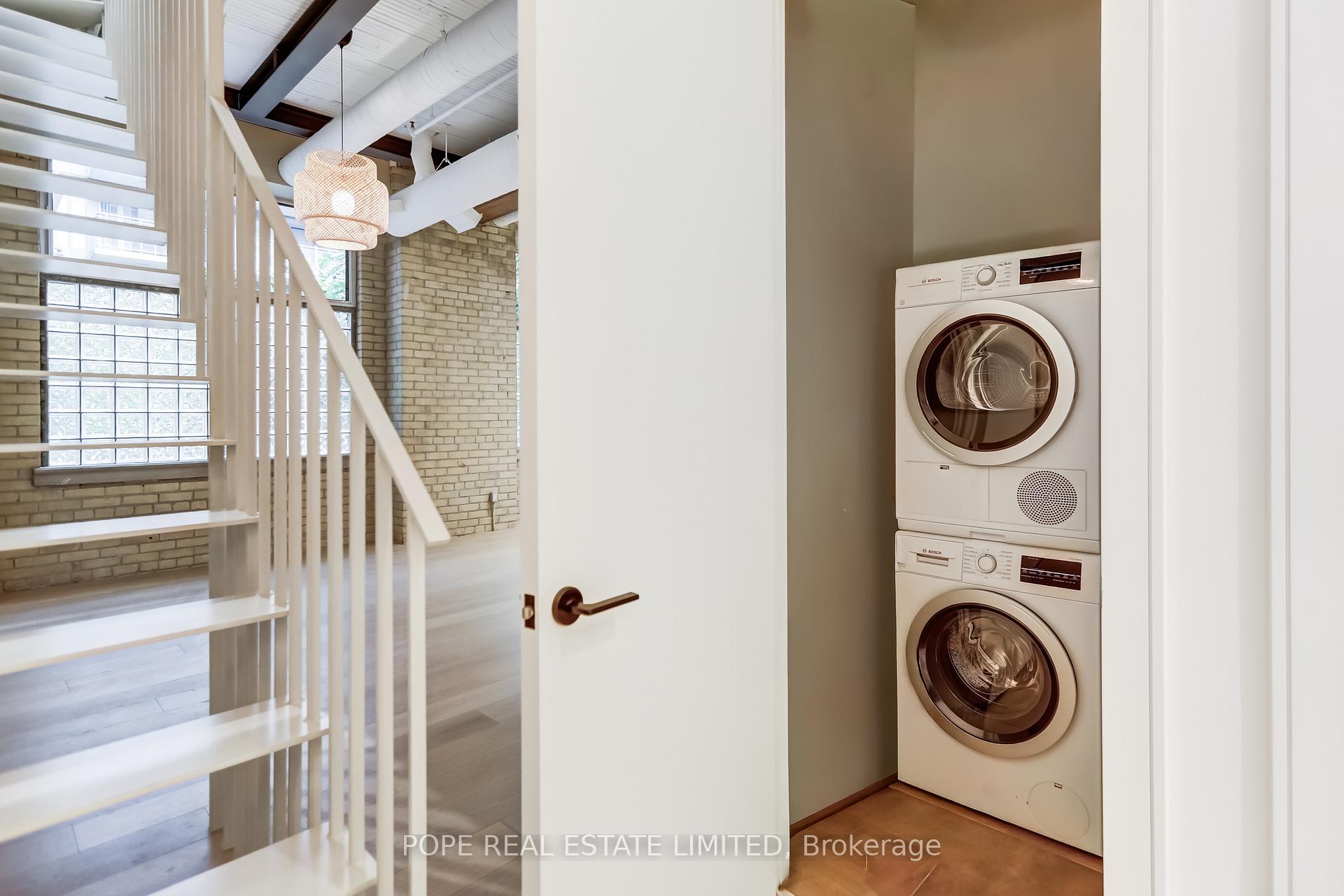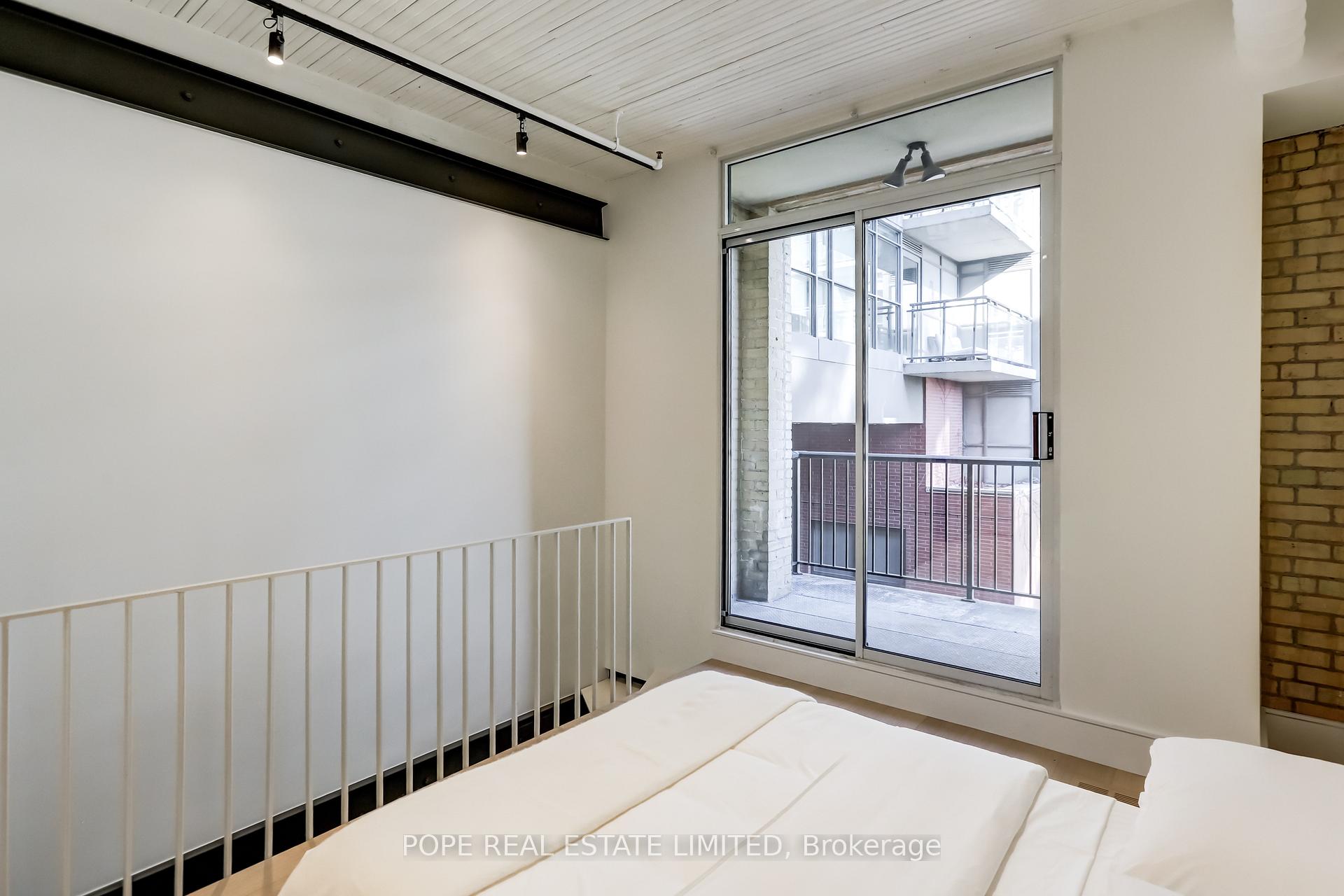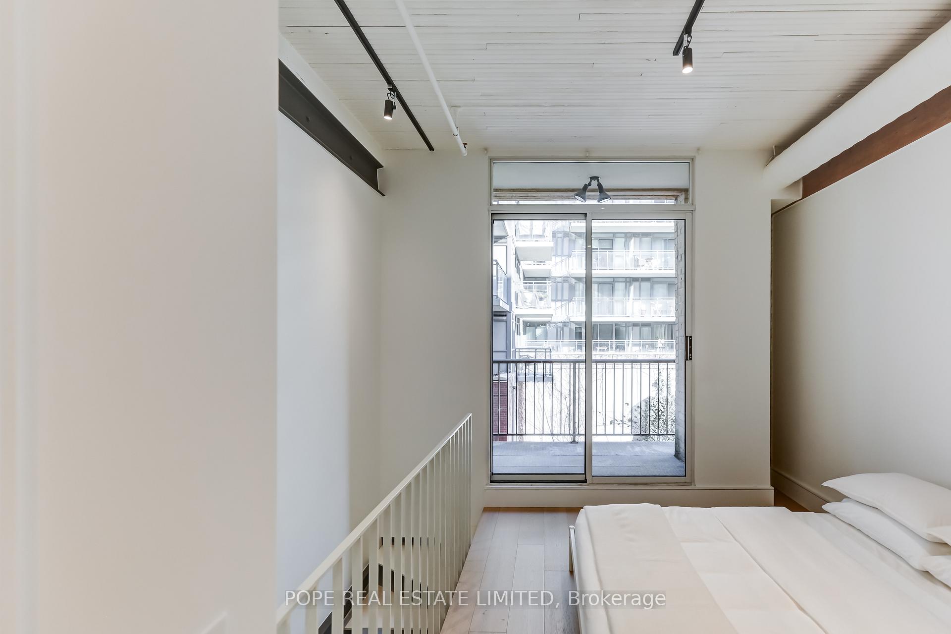 Gotham Vintage Lofts. A rare and much sought after post and beam, exposed brick loft situated in the heart of King West. Formerly constructed between 1903 and 1910 to serve as a horse harness factory and later as a textile mill. After many decades of commercial activity, the 6 storey building building was repurposed and reimagined in 1997 by Paul Anisman into 54 stylish vintage lofts. Recently, the apartment was completely renovated & upgraded to please the most discerning buyer. The apartment showcases 1020 sf of interior space and a rare 30 sf balcony on 2nd floor overlooking the beautifully landscaped garden courtyard Minto 775 complete with fireplace and water feature. This beautiful bespoke loft showcases 2 levels,12 ft wood ceilings on the main floor, a custom white metal open riser staircase leading to the second floor,10 ft wood ceilings on the 2nd floor, white oak plank floors throughout, exposed brick, spiral ductwork, large windows, a walk-in front closet complete with stacked washer/dryer, upgraded lighting throughout. The numerous bespoke finishings continue to showcase a custom kitchen boasting premium integrated appliances, quart counter & backsplash, centre island & breakfast bar. The stylish contemporary baths showcase large format tile, custom vanities, upgraded light & plumbing fixtures, large w/i shower, frameless glass enclosure, rain shower, handheld water wand, concealed indirect lighting & a walk-in closet featuring built-ins. No stone was left unturned, new furnace & AC unit. The building features a handsome lobby, 2 elevators, a gym, meeting rooms & visitor parking. The nearby neighborhood amenities are endless & steps away; TTC 504 & 511 street cars, future Ontario Line subway stop at King & Bathurst, Fort York, Coronation Park, the waterfront trail, Stanley Park complete with outdoor pool, recreation field & off leash dog park, shops, restaurants & cafes of King West, Queen West & Liberty Village. 1 parking & 1 storage locker.