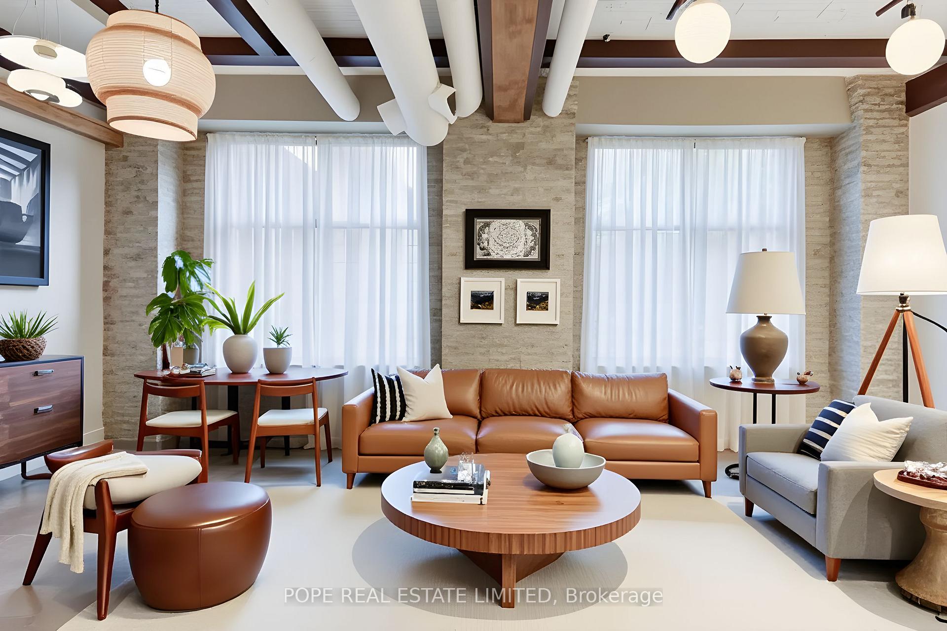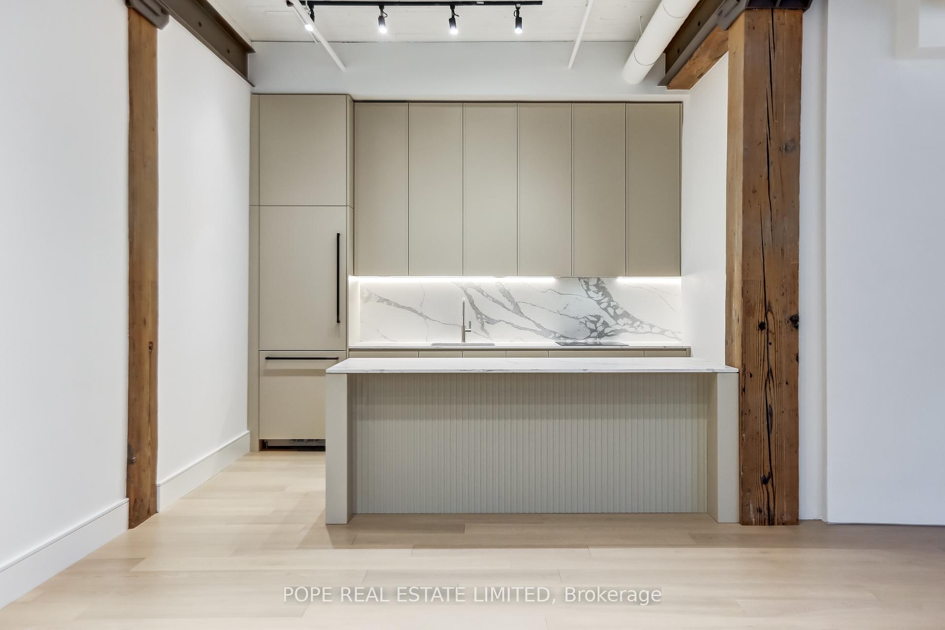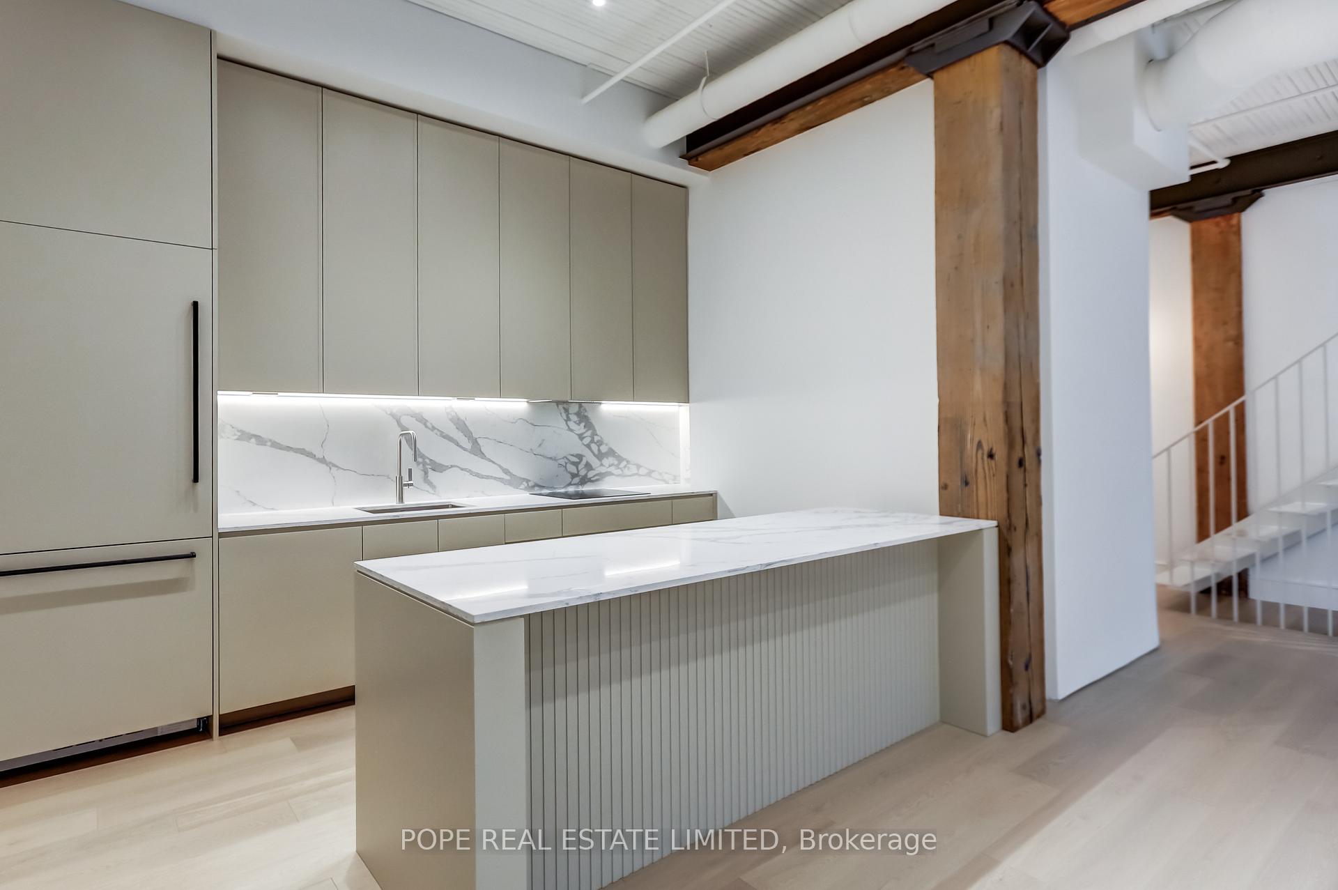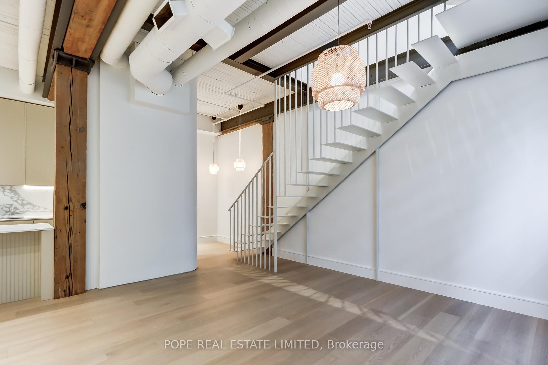 Gotham Vintage Lofts. A rare and much sought after post and beam, exposed brick loft situated in the heart of King West. Formerly constructed between 1903 and 1910 to serve as a horse harness factory and later as a textile mill. After many decades of commercial activity, the 6 storey building building was repurposed and reimagined in 1997 by Paul Anisman into 54 stylish vintage lofts. Recently, the apartment was completely renovated & upgraded to please the most discerning buyer. The apartment showcases 1020 sf of interior space and a rare 30 sf balcony on 2nd floor overlooking the beautifully landscaped garden courtyard Minto 775 complete with fireplace and water feature. This beautiful bespoke loft showcases 2 levels,12 ft wood ceilings on the main floor, a custom white metal open riser staircase leading to the second floor,10 ft wood ceilings on the 2nd floor, white oak plank floors throughout, exposed brick, spiral ductwork, large windows, a walk-in front closet complete with stacked washer/dryer, upgraded lighting throughout. The numerous bespoke finishings continue to showcase a custom kitchen boasting premium integrated appliances, quart counter & backsplash, centre island & breakfast bar. The stylish contemporary baths showcase large format tile, custom vanities, upgraded light & plumbing fixtures, large w/i shower, frameless glass enclosure, rain shower, handheld water wand, concealed indirect lighting & a walk-in closet featuring built-ins. No stone was left unturned, new furnace & AC unit. The building features a handsome lobby, 2 elevators, a gym, meeting rooms & visitor parking. The nearby neighborhood amenities are endless & steps away; TTC 504 & 511 street cars, future Ontario Line subway stop at King & Bathurst, Fort York, Coronation Park, the waterfront trail, Stanley Park complete with outdoor pool, recreation field & off leash dog park, shops, restaurants & cafes of King West, Queen West & Liberty Village. 1 parking & 1 storage locker.
