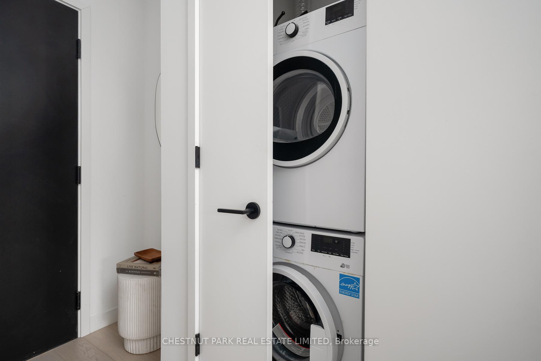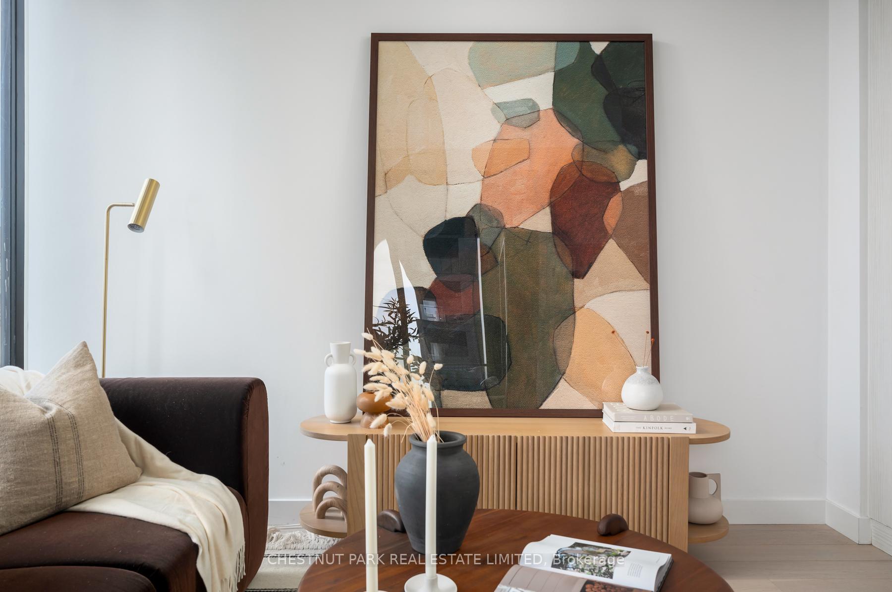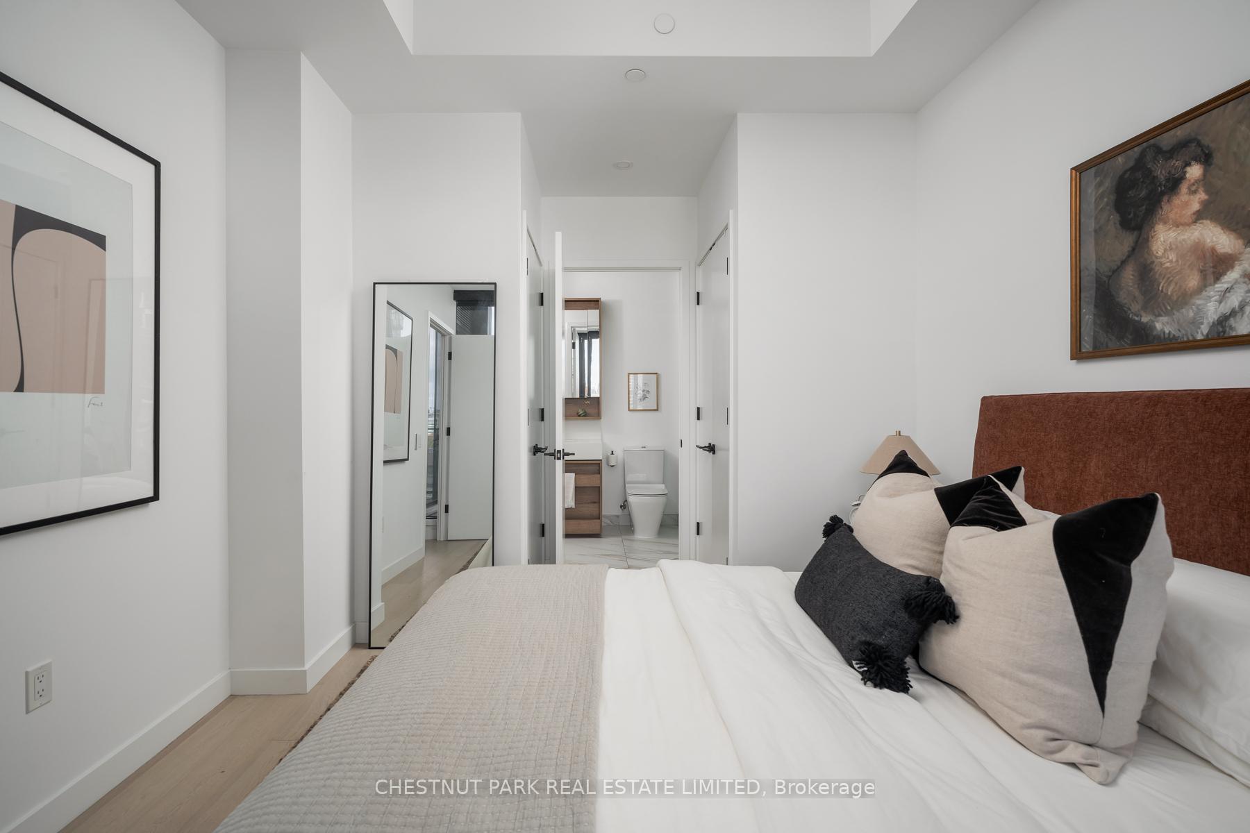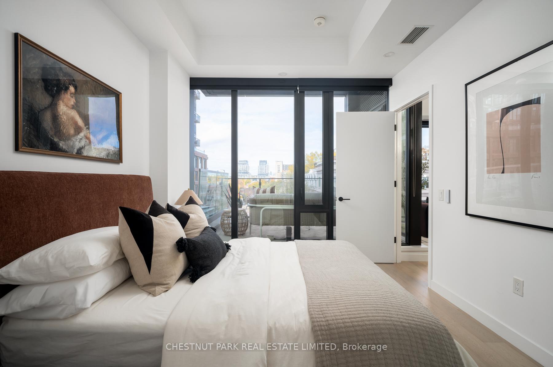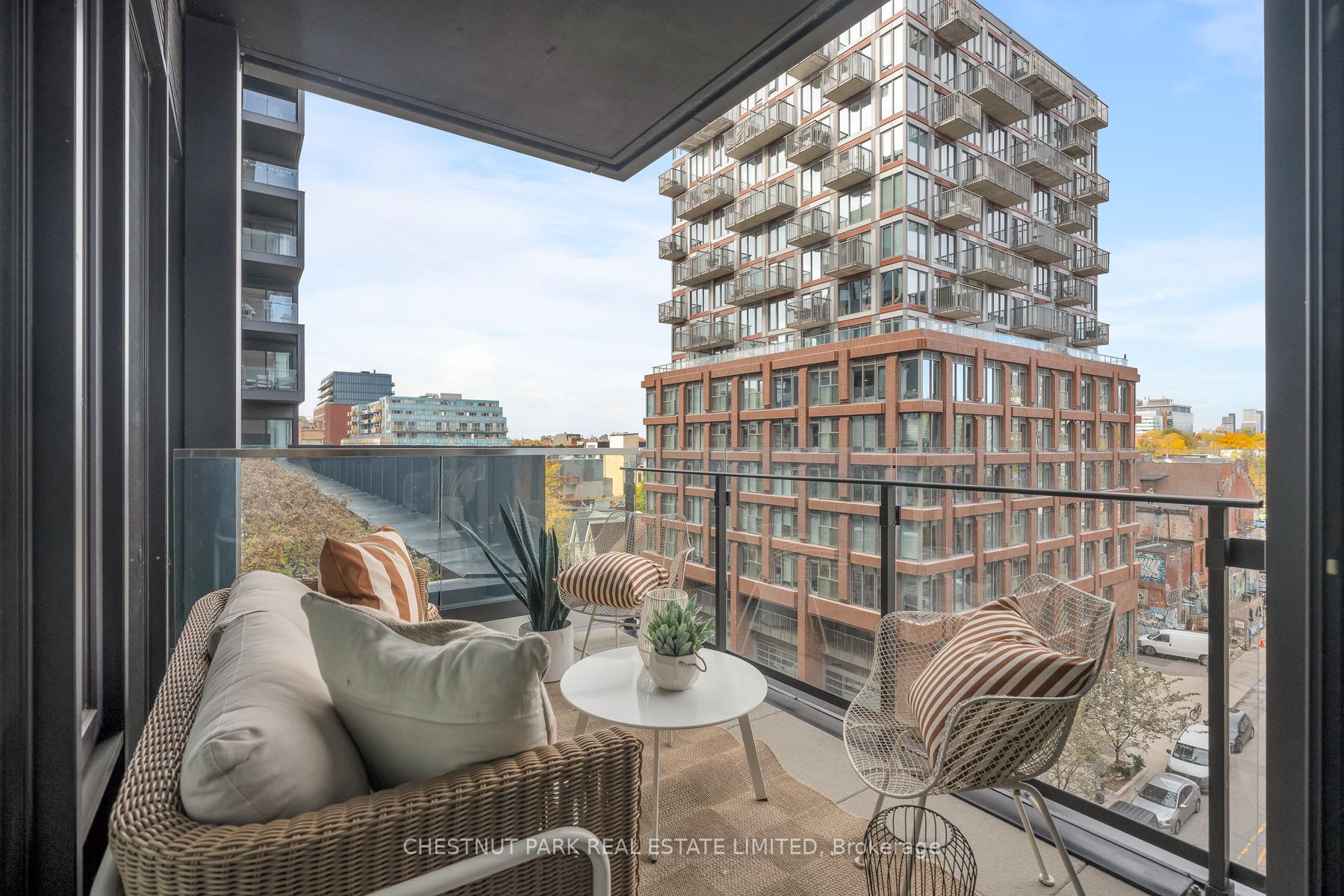 Set within the landmark Waterworks Residences, Suite 414 offers a serene urban retreat above St. Andrew's Park. This 1+1 bedroom, 1 bathroom layout combines just under 700 square feet of interior living with a 112 square-foot northwest-facing terrace, an elegant expression of downtown livability. Ten-foot ceilings, floor-to-ceiling windows, and motorized blinds draw natural light deep into the home, while lighter finishes enhance openness and flow. At its centre, a custom Cecconi Simone kitchen anchors the open-concept plan, featuring Dekton surfaces, full-height millwork, and integrated appliances that unite form and function with quiet precision. The primary bedroom is proportioned for comfort, offering his-and-hers closets and a three-piece semi-ensuite finished in stone and glass. The enclosed den, privately positioned near the entry, transitions naturally into a guest suite or workspace, reflecting the versatility of contemporary living.The northwest terrace extends the living space outdoors, ideal for late-day sun and evening gatherings. Additional features include in-suite laundry, one parking space, and a private locker, offering practical convenience within a refined setting.Residents enjoy access to a state-of-the-art YMCA with 25-metre pool and fitness centre, rooftop terraces, private dining and lounge spaces, and the celebrated Food Hall Toronto within the restored Great Hall. Moments from Queen West, Spadina, and the Financial Core, Suite 414 captures the balance of design, light, and heritage that defines Waterworks.