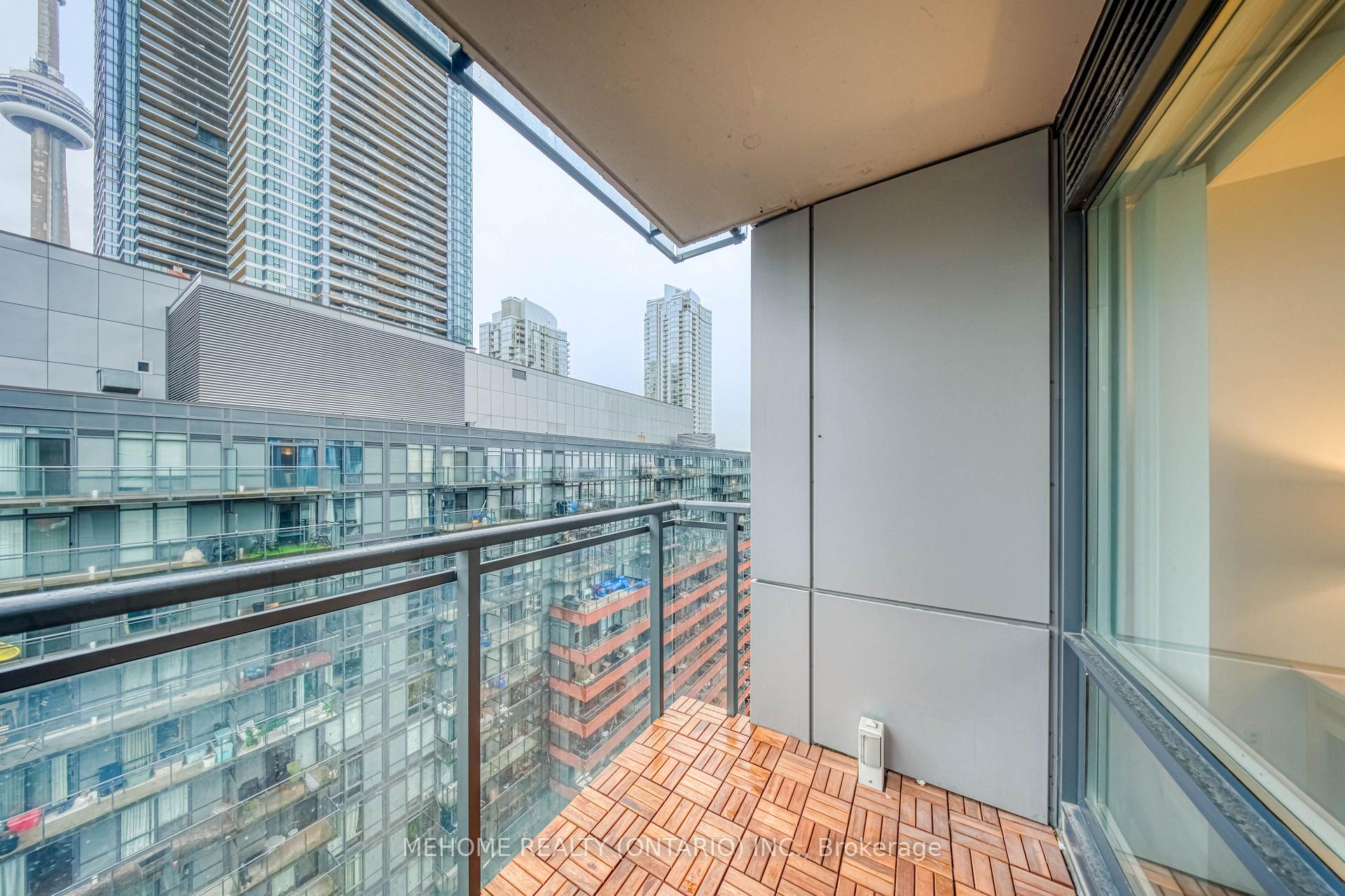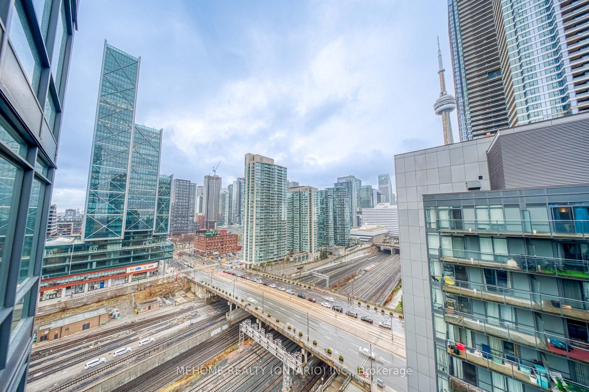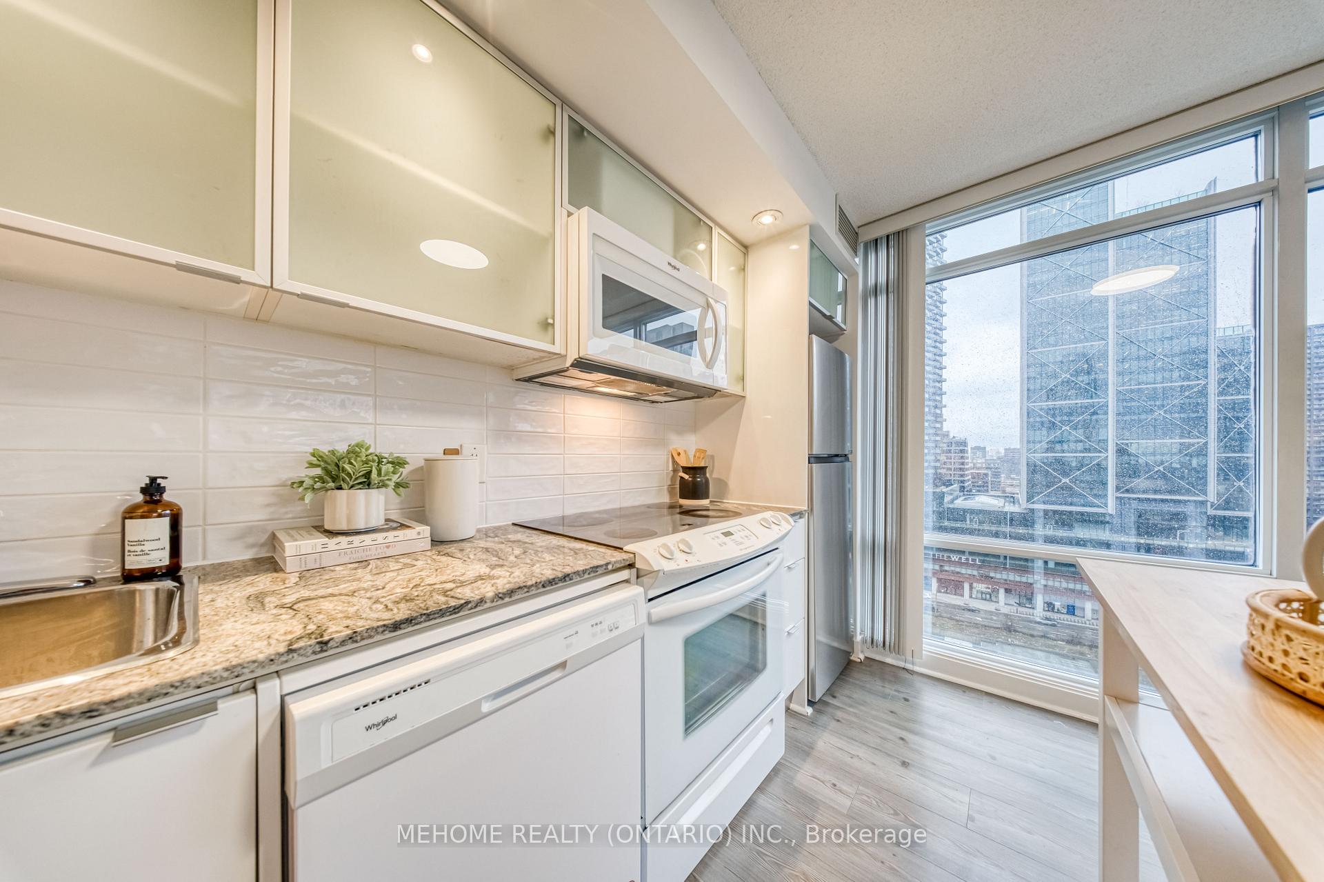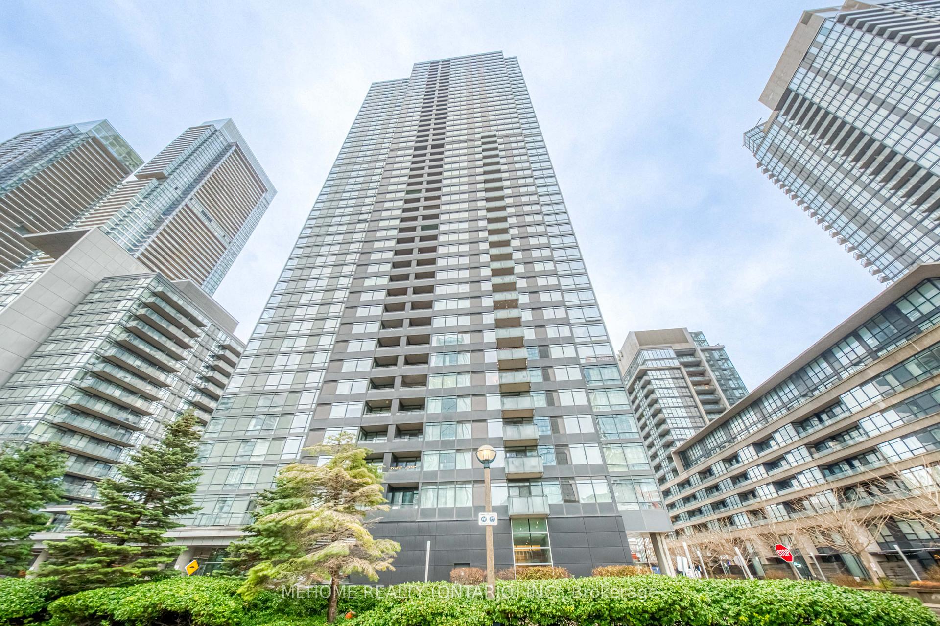 Montage at CityPlace! Enjoy a spectacular 270 view of the city from this bright and spacious 933 sq. ft. corner suite with a full-size balcony! Floor-to-ceiling windows fill the unit with natural light, while the functional split-bedroom layout and open-concept living area create the perfect space for both relaxation and entertaining.Featuring 2 bedrooms, 2 bathrooms, and a versatile open-concept den/study, this thoughtfully designed layout is ideal for comfortable living and working from home. The primary bedroom offers a double closet and 4-piece ensuite, while the second bedroom boasts floor-to-ceiling windows and a double closet overlooking the balcony. Enjoy the convenience of ensuite laundry with a full-size stacked washer and dryer, A stylish new kitchen backsplash, and updated appliances including a microwave with range hood (2023), dishwasher (2023), and fridge (2025). Luxury building with resort-style amenities including an indoor pool, hot tub, gym, theater, outdoor lounge, BBQ area, guest suites, and more. Direct underground access to Sobeys Market for everyday convenience.Steps to Harbourfront, CN Tower, Rogers Centre, The Well, transit, restaurants, and shops. Includes 1 parking space and 1 locker. *Low Maintenance Fee*