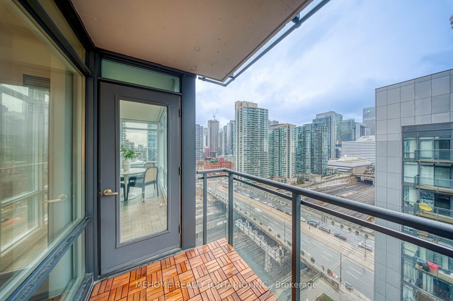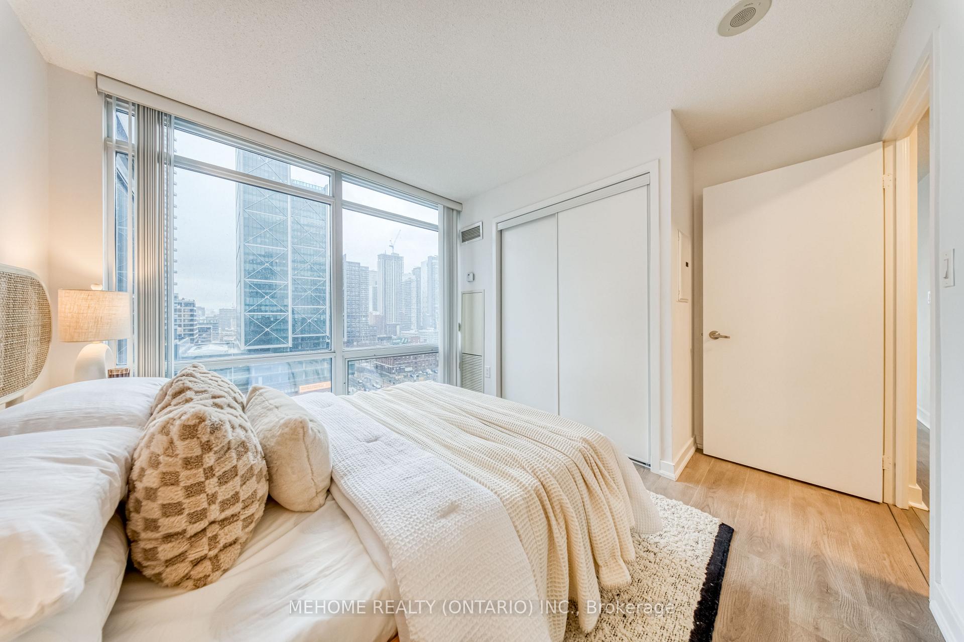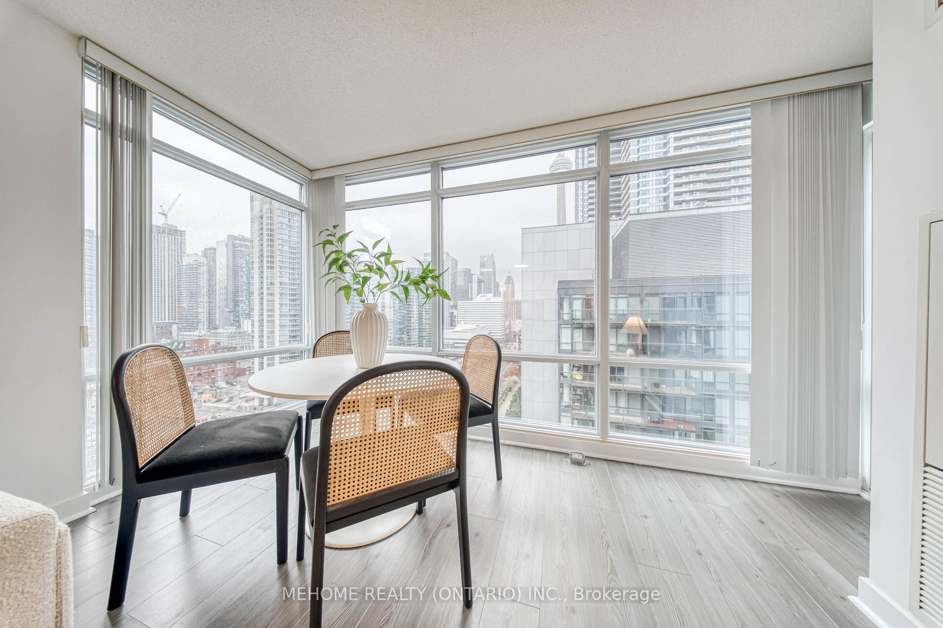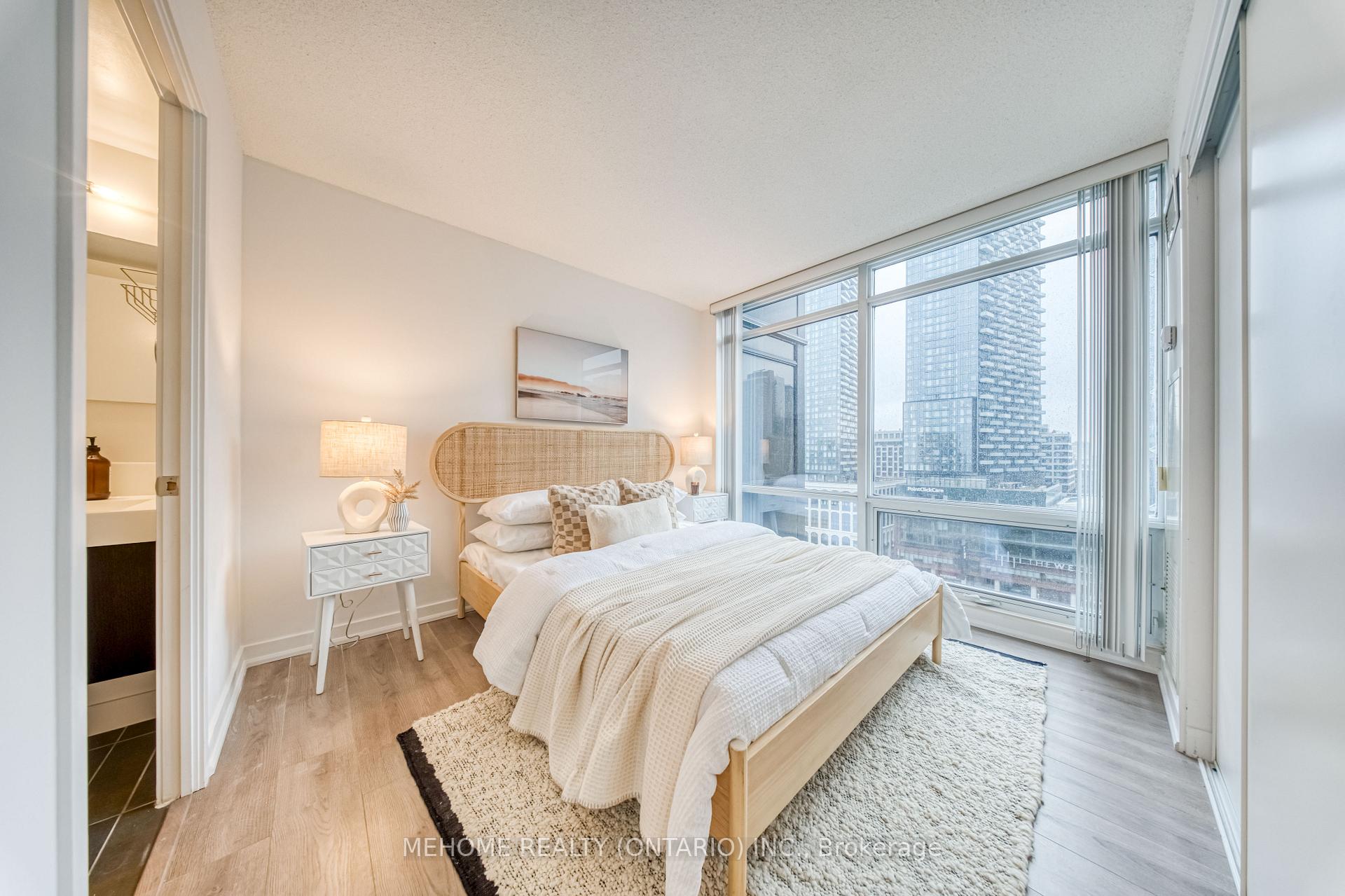 Montage at CityPlace! Enjoy a spectacular 270 view of the city from this bright and spacious 933 sq. ft. corner suite with a full-size balcony! Floor-to-ceiling windows fill the unit with natural light, while the functional split-bedroom layout and open-concept living area create the perfect space for both relaxation and entertaining.Featuring 2 bedrooms, 2 bathrooms, and a versatile open-concept den/study, this thoughtfully designed layout is ideal for comfortable living and working from home. The primary bedroom offers a double closet and 4-piece ensuite, while the second bedroom boasts floor-to-ceiling windows and a double closet overlooking the balcony. Enjoy the convenience of ensuite laundry with a full-size stacked washer and dryer, A stylish new kitchen backsplash, and updated appliances including a microwave with range hood (2023), dishwasher (2023), and fridge (2025). Luxury building with resort-style amenities including an indoor pool, hot tub, gym, theater, outdoor lounge, BBQ area, guest suites, and more. Direct underground access to Sobeys Market for everyday convenience.Steps to Harbourfront, CN Tower, Rogers Centre, The Well, transit, restaurants, and shops. Includes 1 parking space and 1 locker. *Low Maintenance Fee*