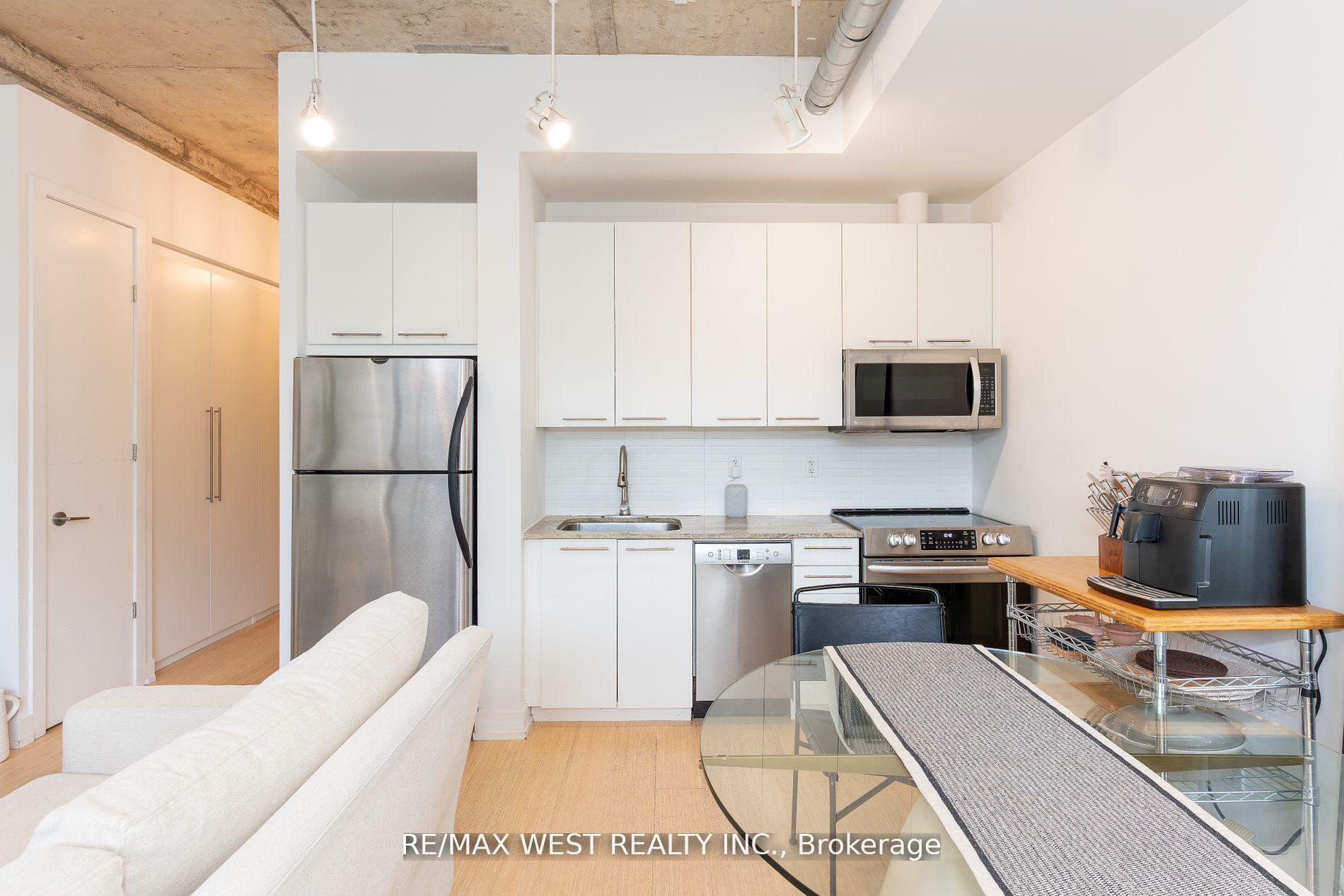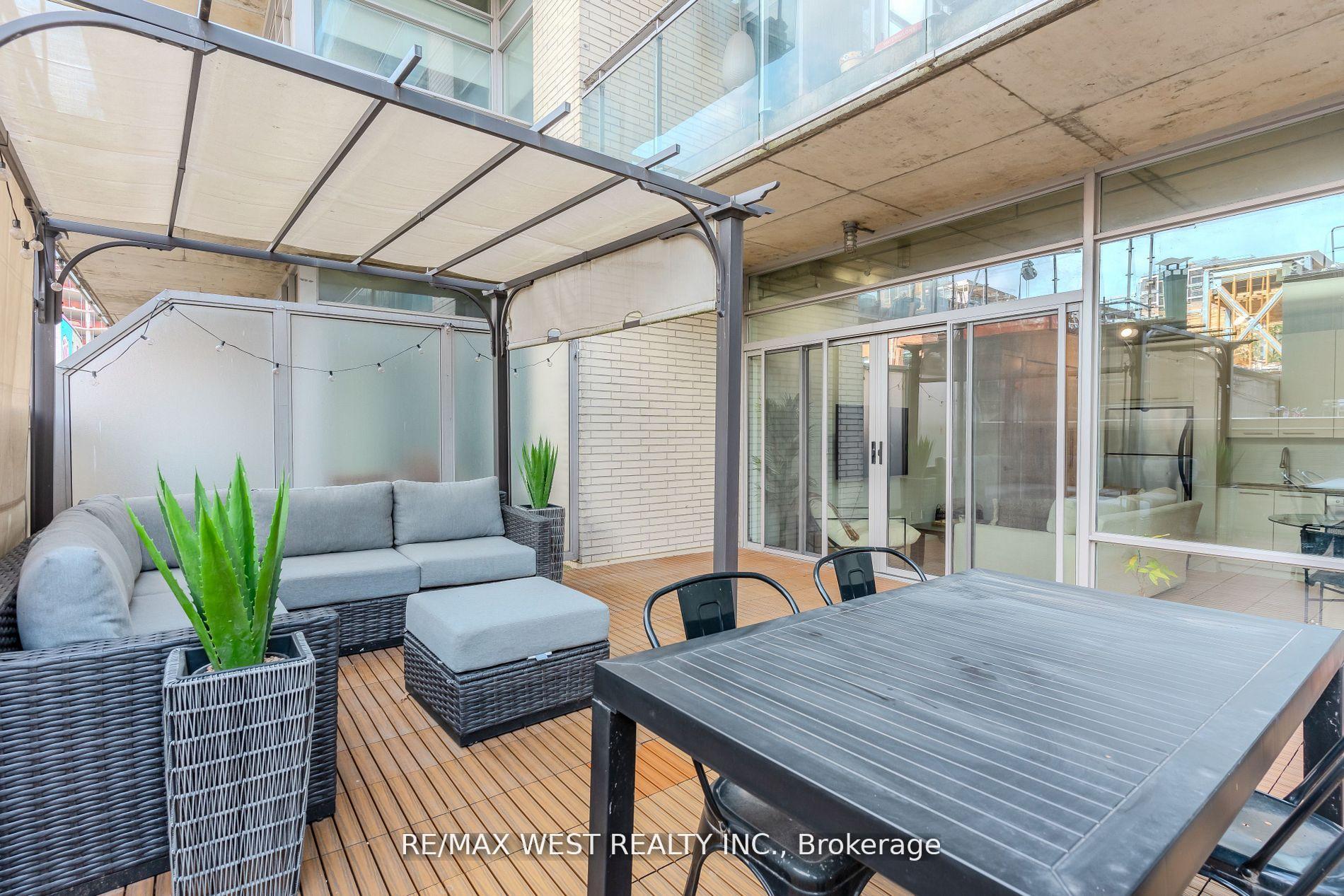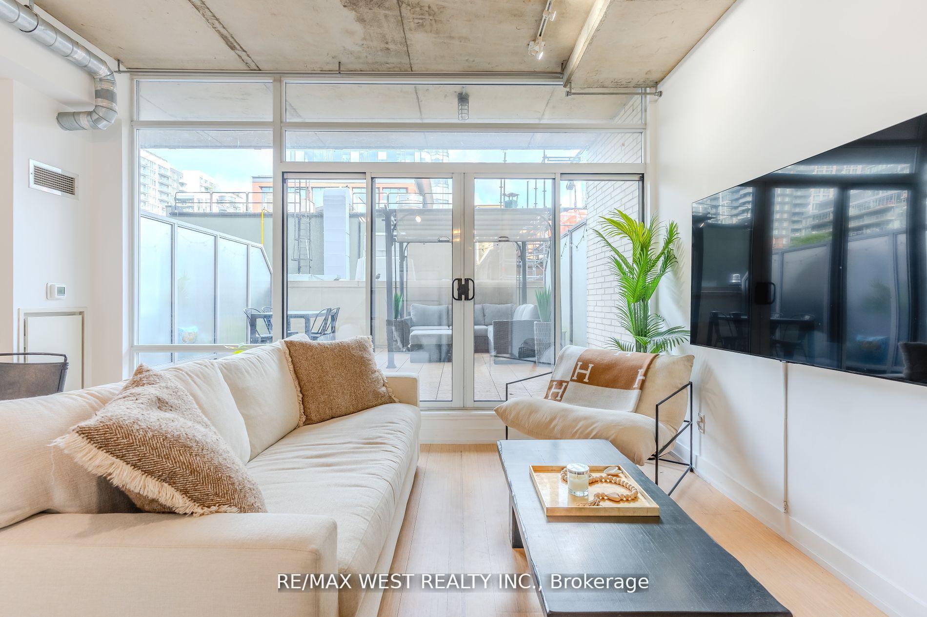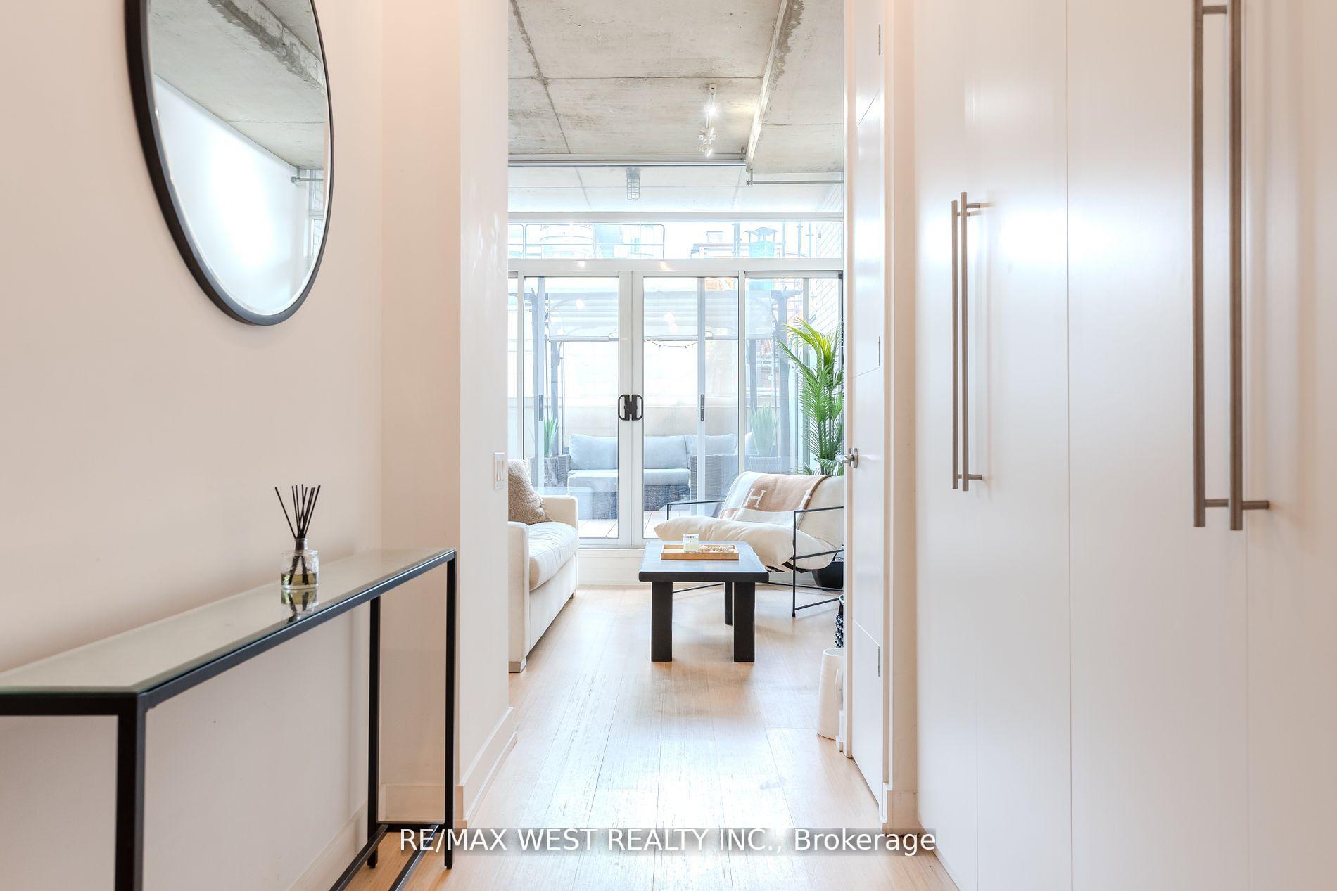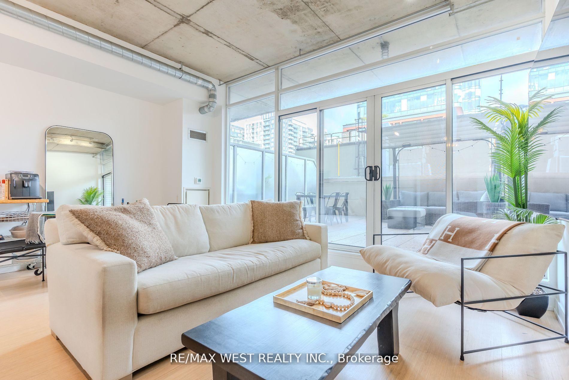 Stylish Loft with Private Terrace in Vibrant King West. Artful, Loft-Style Living In Downtown Toronto. Discover hardwood floors, soaring 10-foot ceilings, and floor-to-ceiling windows that open onto a 287-sq.ft. oversized terrace with stunning skyline views and custom patio tiling. The spacious bedroom offers comfort and privacy, while a custom-built hallway closet (2024) adds smart storage. Enjoy the convenience of gas BBQ hookups for outdoor entertaining. Suite 212 at 66 Portland Street is nestled in a boutique building in the heart of King West, steps from parks, shops, and the TTC.