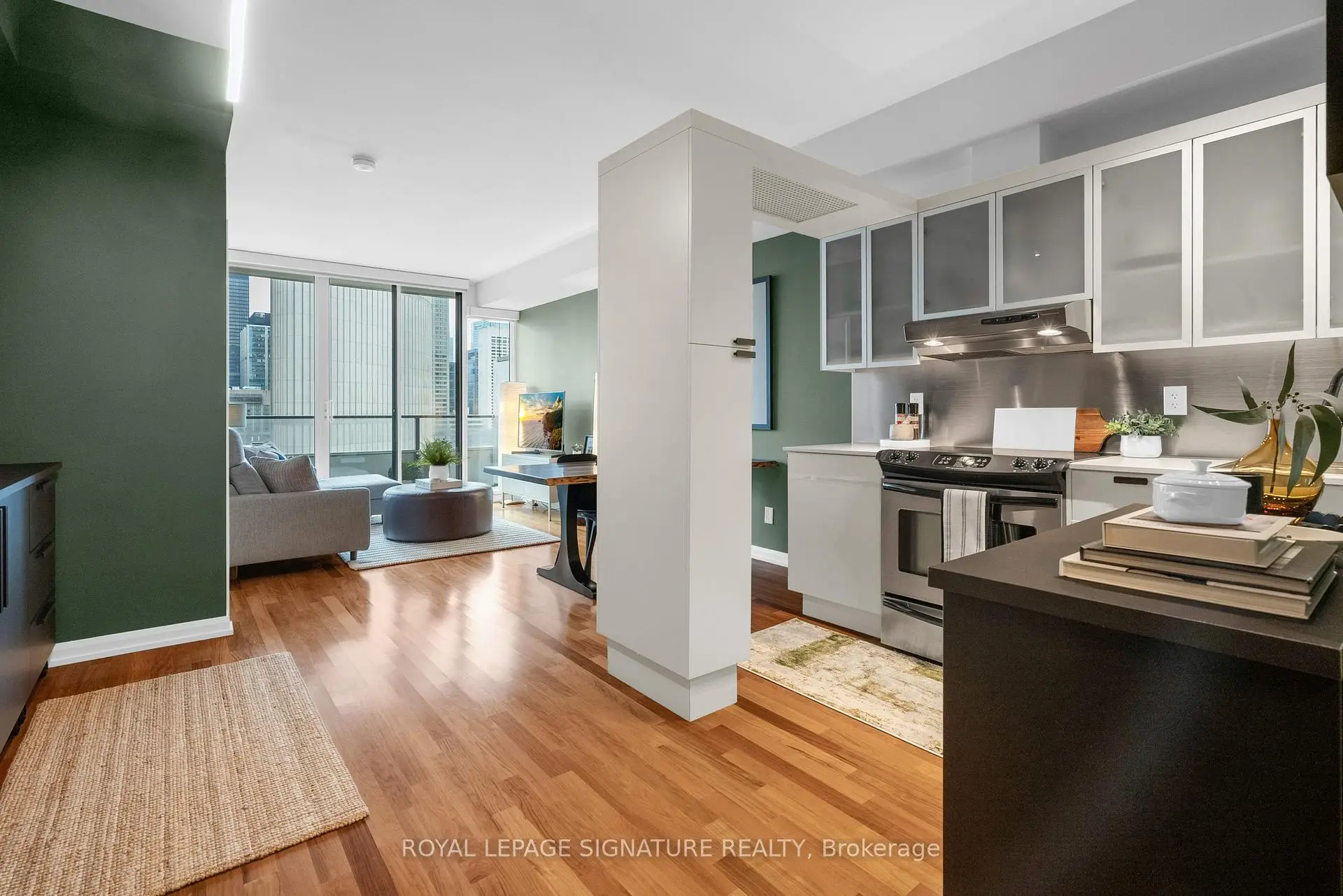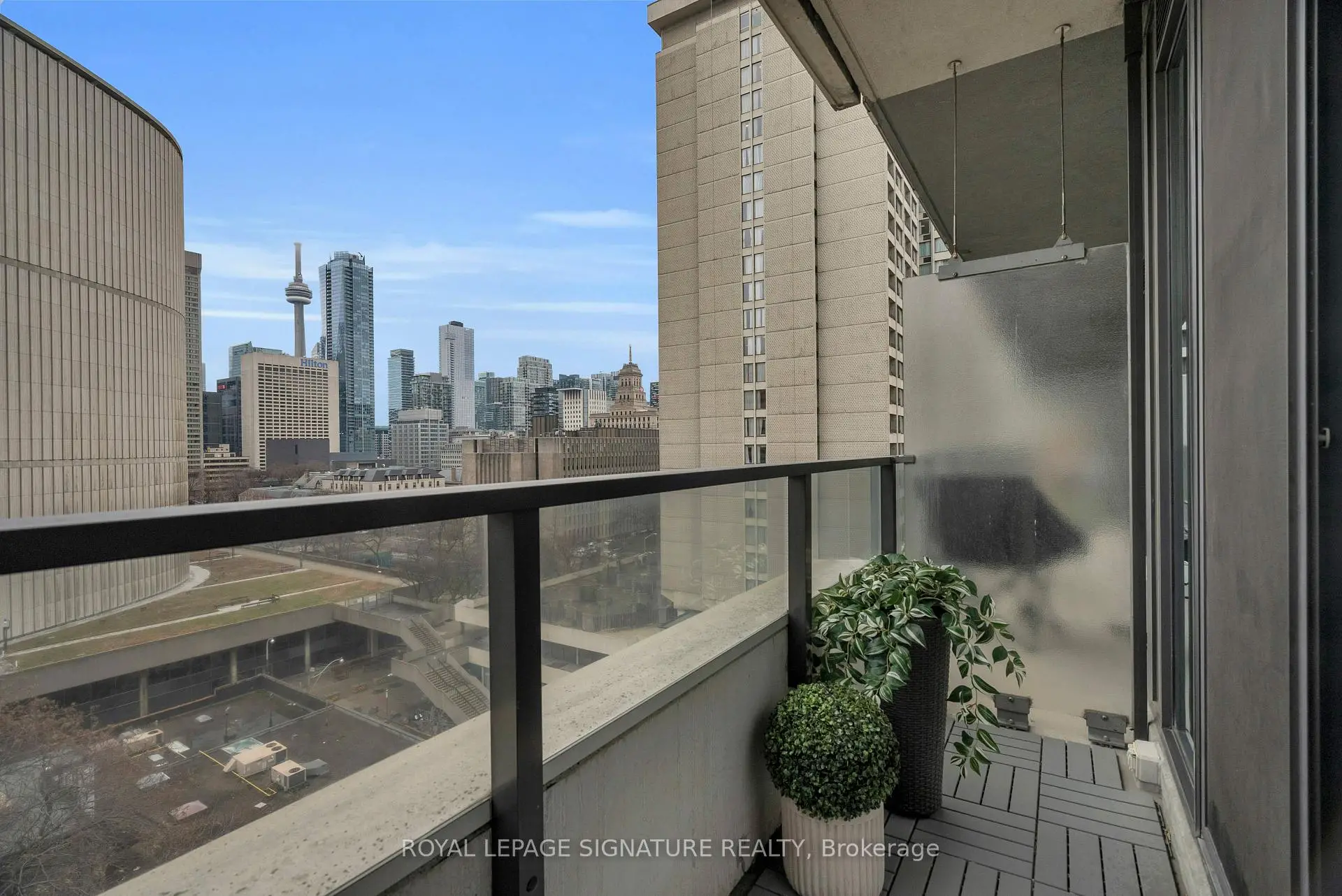 Discover elevated downtown living in this beautifully updated 1+1 bedroom, 2-bath suite with stunning south-facing views. Boasting 779 sq ft of thoughtfully designed space, this sun-drenched unit features engineered hardwood floors throughout, a sleek modern kitchen with stainless steel appliances, full oven, and quartz countertops, plus two recently renovated spa-like bathrooms with new modern vanities. Wake up to iconic CN Tower views from the generous-sized primary bedroom w/ a stunning ensuite. The spacious den, complete with custom closets, offers incredible versatility and can easily be converted into a second bedroom, home office, or nursery perfect for your evolving lifestyle. Step out onto the balcony to soak in the stunning city views or unwind in your open-concept living space flooded with natural light. Your new home will include a prime parking spot on P3, a large 6' x 6' locker conveniently located nearby, and an owned, upgraded heat pump (2024). Located in a well-managed building with a newly updated 24-hour concierge and security desk (2024), offering seamless package reception and secure delivery handling. Residents enjoy access to top-tier amenities: a pool, jacuzzi, sauna, updated gym (2025), and a stylish multi-purpose room with kitchen, boardroom, and two-level entertaining space. EV charging is available for installation at your parking spot. Perfectly positioned in one of Torontos most dynamic and connected neighbourhoods, this location offers a 99 Walk Score and 100 Transit Score. You're surrounded by Torontos top hospitals including Mount Sinai, Toronto General, SickKids, and St. Michaels. Directly next to Toronto City Hall and the Eaton Centre, and with a full-service Longos at the bottom of the building, every convenience is at your doorstep. Experience the best of city living with acclaimed restaurants, cafes, and attractions just around the corner.