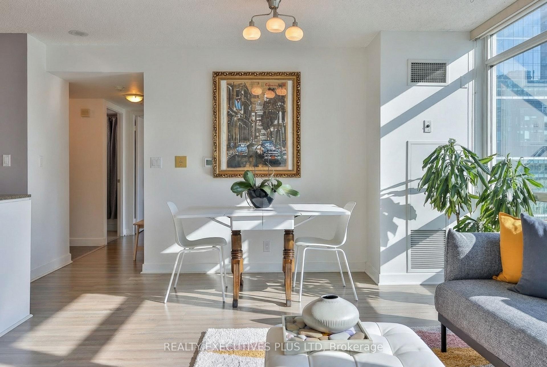 Welcome to this spectacular high-floor corner suite in the heart of downtown Toronto. Framed by floor-to-ceiling windows, the home offers sweeping city views and a thoughtfully designed layout with 2 bedrooms, and 2 4-pc bathrooms, and corner balcony. The open-concept kitchen is bright, with white cabinetry, new stainless range, refrigerator and over the range microwave, functional layout with generous storage, while the large den provides the perfect flexible space for work or study. This owner occupied residence includes 1 owned parking spot and 1 locker, and grants access to an impressive collection of amenities: 24-hour concierge, state of the art fitness center currently being updated, indoor pool with hot tub, sauna, multi sport court for basketball, badminton or volleyball, cinema, billiards room, party room, rooftop garden with BBQ terrace, hair salon, guest suites and visitor parking. With all utilities and even cable TV included in the maintenance fees, this is a true turnkey opportunity. Steps to shops and restaurants, The Well, public transit, CN Tower, Rogers Centre and Scotiabank Arena, Financial and Entertainment Districts, and Harbourfront, this address embodies the best of sophisticated urban living.