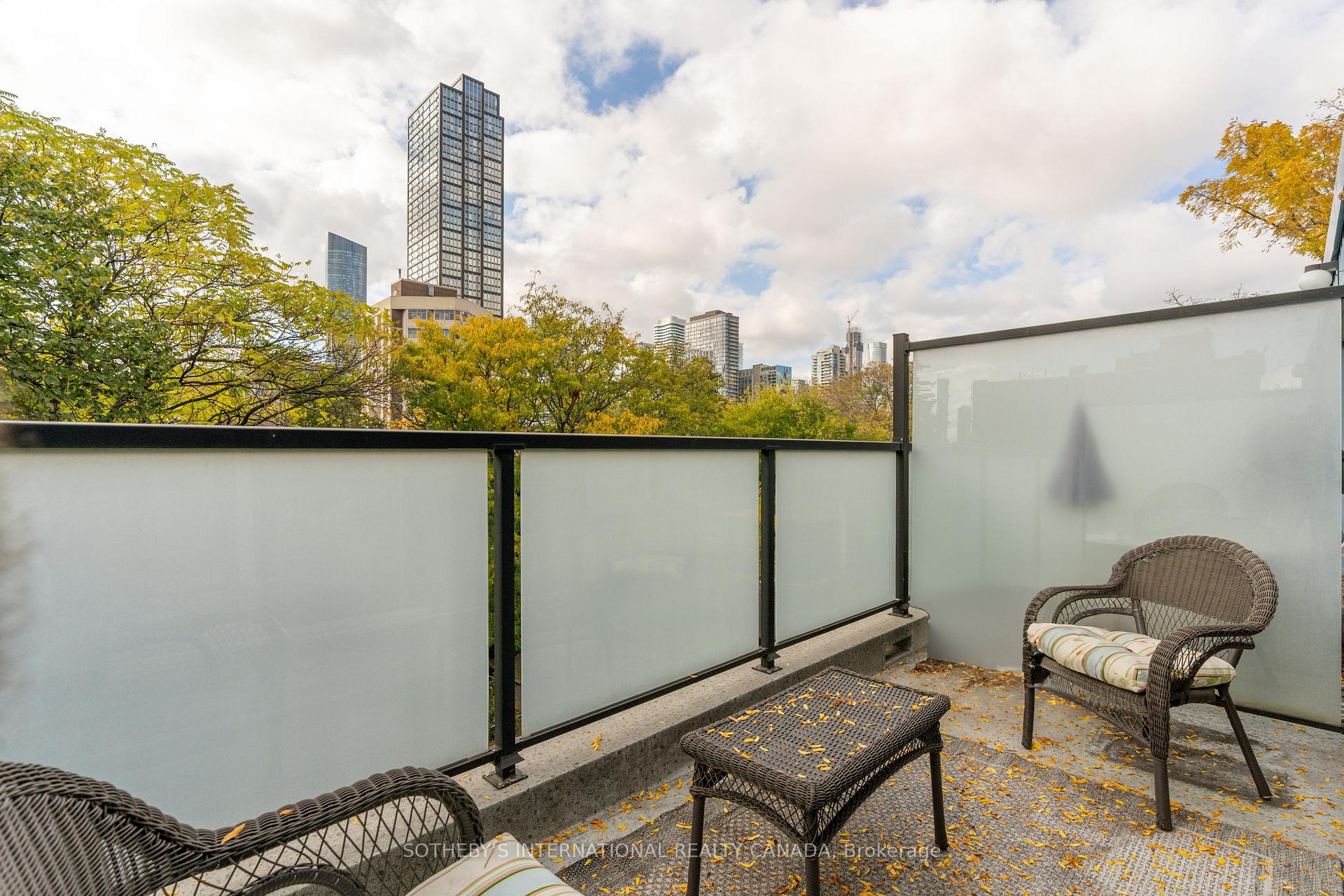Escape the city's hustle and bustle in this superb, 1764-square-foot (MPAC), multi-level Victorian-style townhome. Townhouse 12 is quietly tucked away well back from the street in a serene courtyard garden, featuring mature trees and tiered stone pathways. This 18-unit condominium community with long-term residents, is a hidden treasure in The Garden District, in energetic downtown. This renovated, immaculate, warm, and welcoming townhome is a true home. Bathed in sunlight and is ideal for hosting get-togethers. Quebec Walnut flooring and upgraded baseboards throughout (part of the renovation completed 8 years ago). The updated kitchen is a cook's delight, with high ceilings, ample cupboards, and extensive quartz countertop space. Throughout the home, you will find beautiful stained-glass windows that add a touch of timeless elegance. Dining room for wonderful dinners. The cozy wood-burning fireplace provides warmth on cooler evenings (a rare find!). The breathtaking, 17-foot-high wall of windows with a walk-out leads to your personal, 143-square-foot backyard terrace. This private outdoor space is a tranquil retreat. The second floor has a generously sized bedroom, open concept den (easily converted back to a 3rd bedroom), large closets, and an updated 3-piece bathroom. Ascend to the third floor to discover a spacious primary bedroom suite (easily accommodates a king-sized bed) featuring a four-piece ensuite bathroom, a walk-in closet, and a private balcony with peaceful treetop views. The property is conveniently located with a 98% walk score. You are just a short stroll from Bay Street, College Park, St. Michael's Hospital, the Eaton Centre, the Distillery District, St. Lawrence Market, Toronto Metropolitan University, and George Brown College. The secured, covered parking at the back of this gated complex adds to the convenience and security. This home offers a perfect blend of peaceful living and urban accessibility.