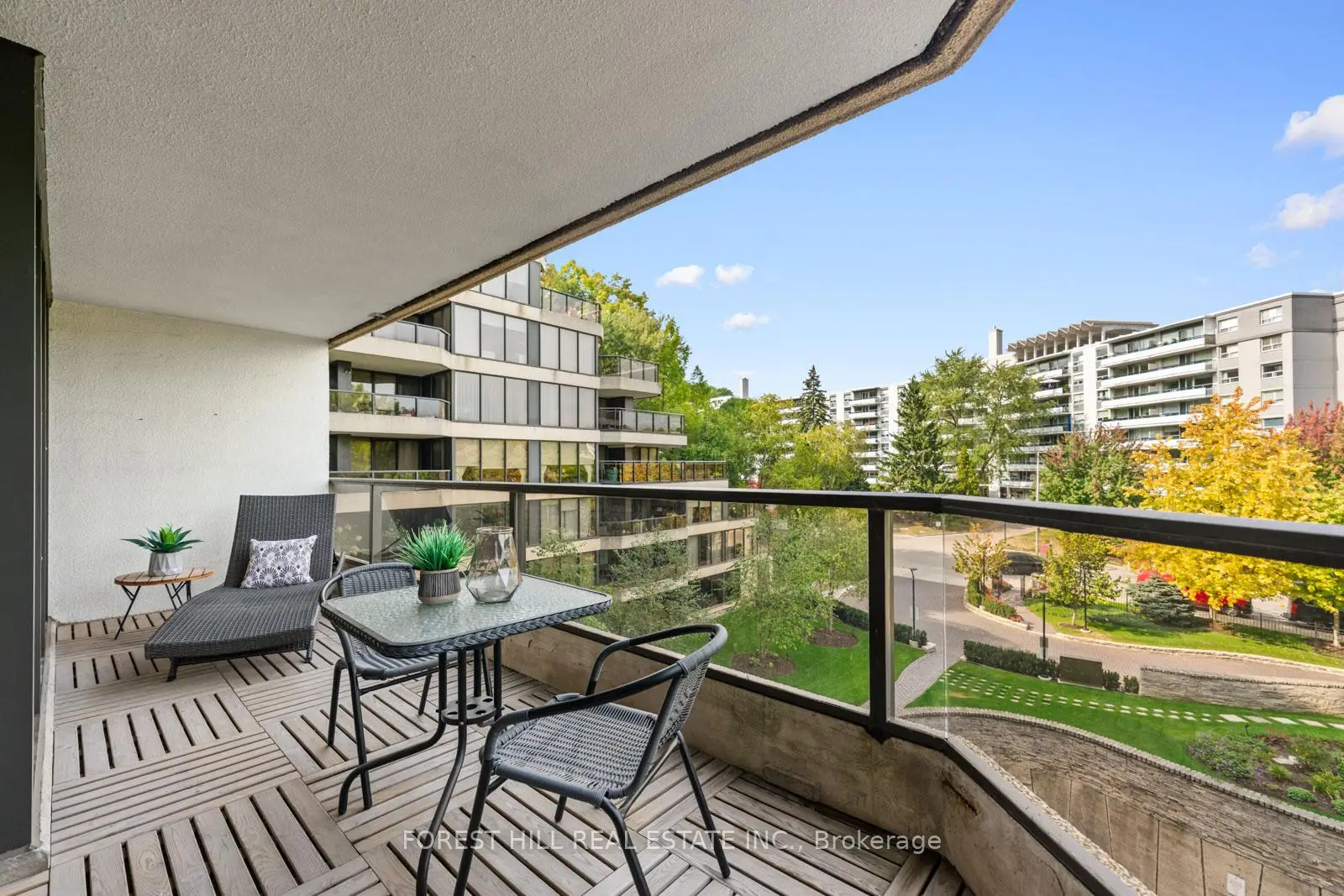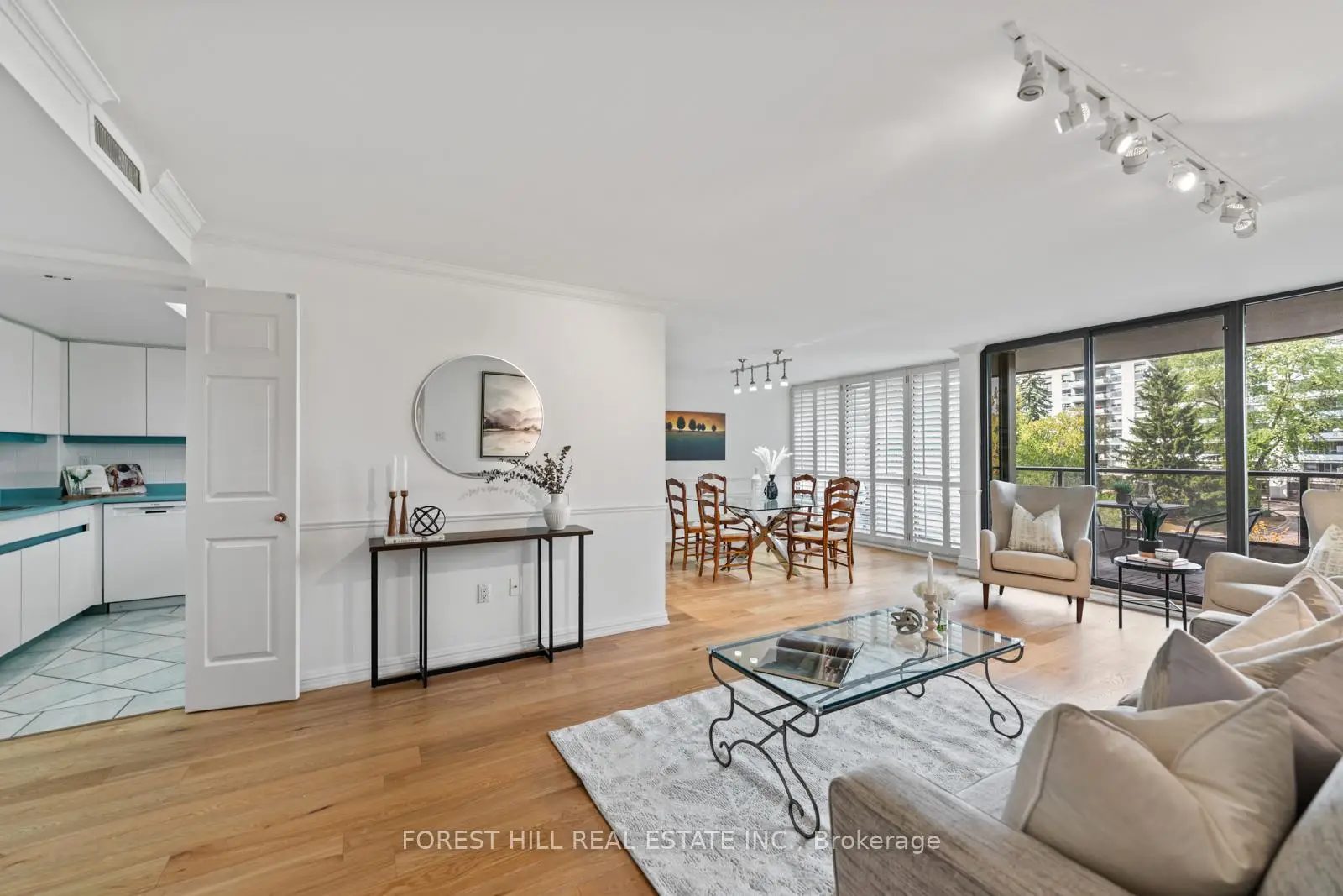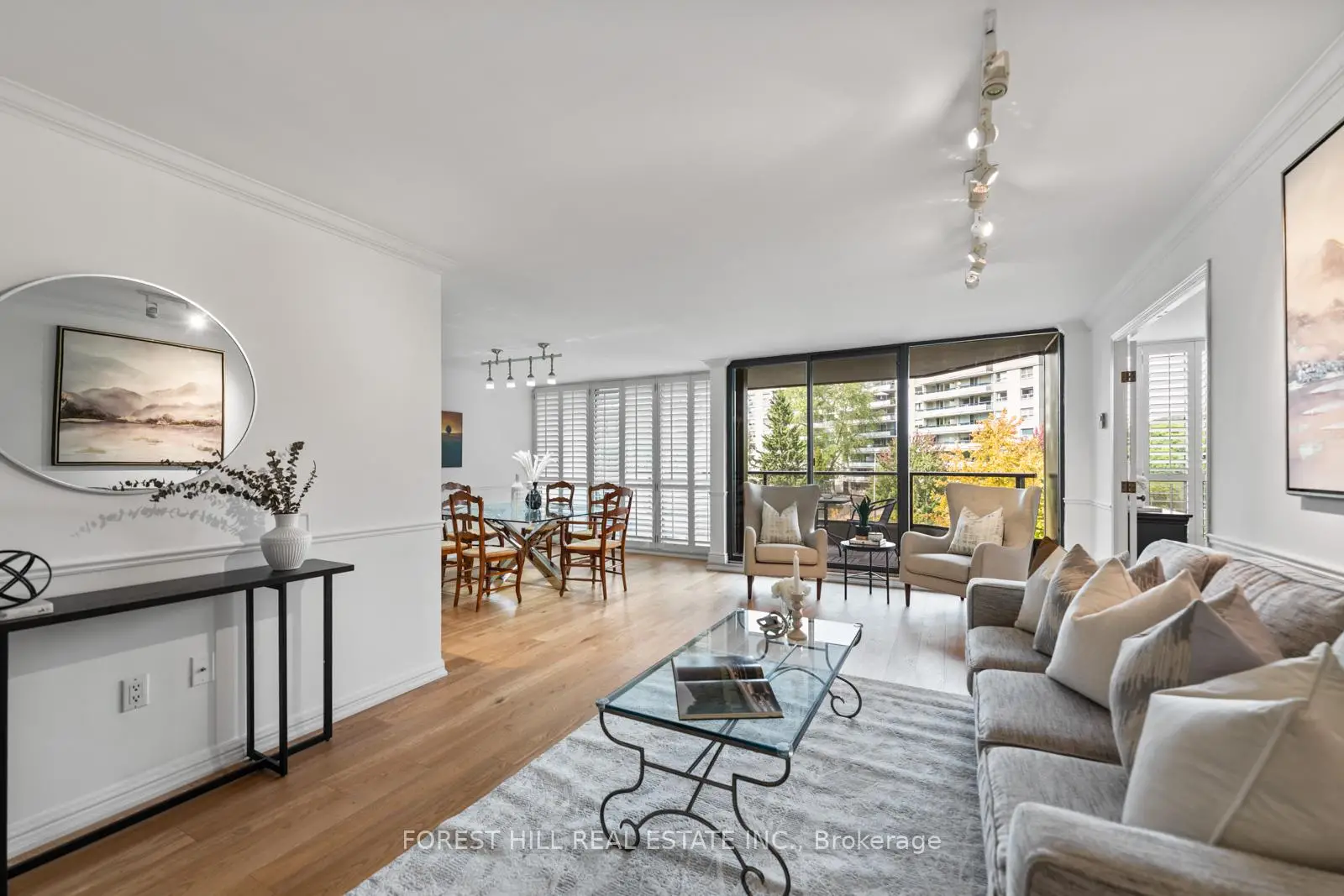 Welcome to this spacious & gracious suite at coveted York Mills Place. This charming home of approximately 1240 sf with no wasted space, offers the perfect setting for a simplified lifestyle without compromise. Wall-to-wall windows with walk-out to the balcony fill the home with natural light, including the open concept kitchen with urban & treetop views. The versatile 2nd bedroom complete with frosted glass French doors & closet, offer maximum versatility as a true 2nd bedroom or as an extension of the living room for your office, yoga studio or creative hobby area. The primary bedroom features a walk-in closet, ensuite & custom built-in's to maximize storage. The walk-in laundry/utility room includes a heat pump to individually control the temperature in your suite. Downsize or right-size in style while enjoying the space & comfort you value. The suite is well located within easy proximity to the elevator & 1 of the 2 parking spaces is on the 4th floor for maximum convenience. The hallways & other common areas are under renovation for a contemporary, sophisticated &fresh update.