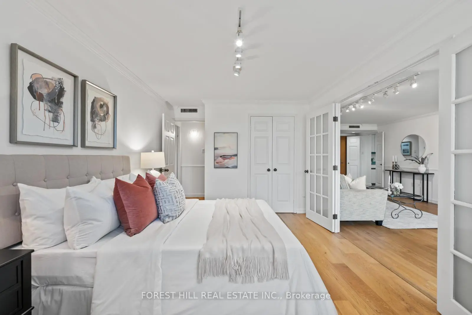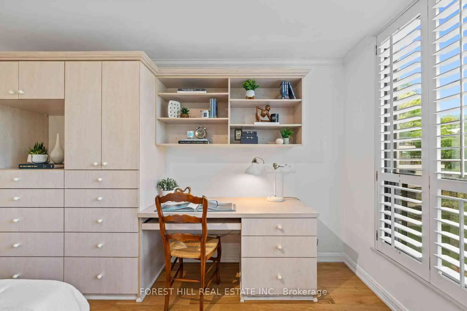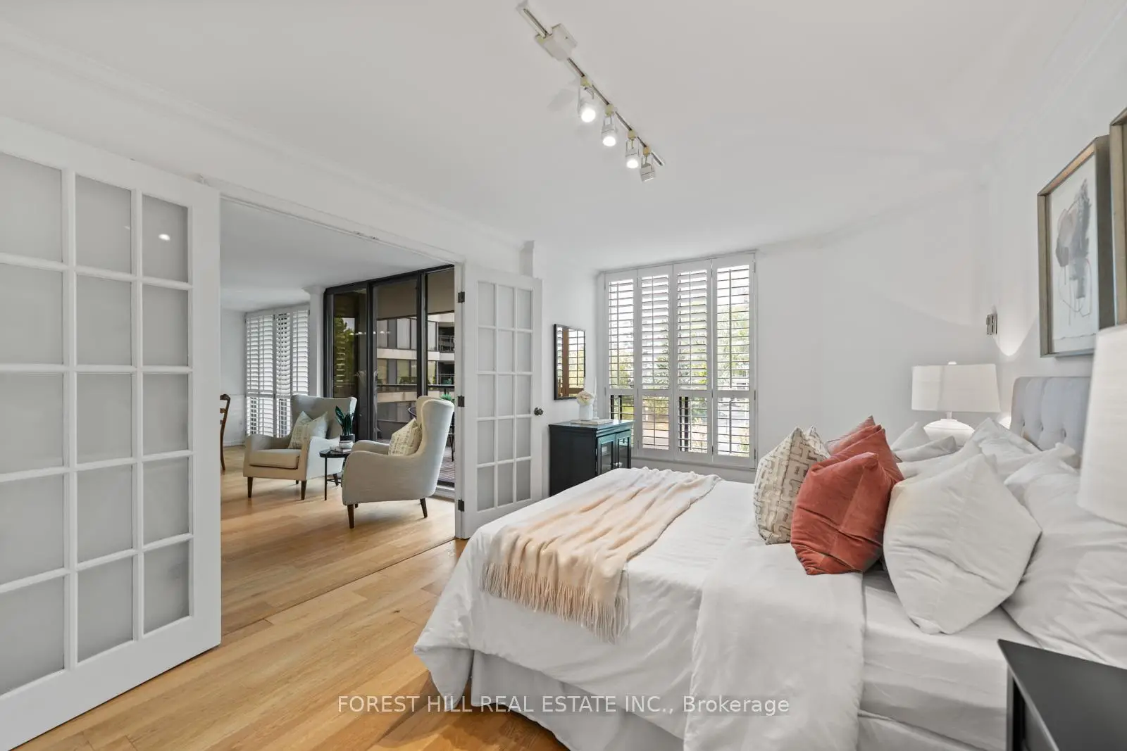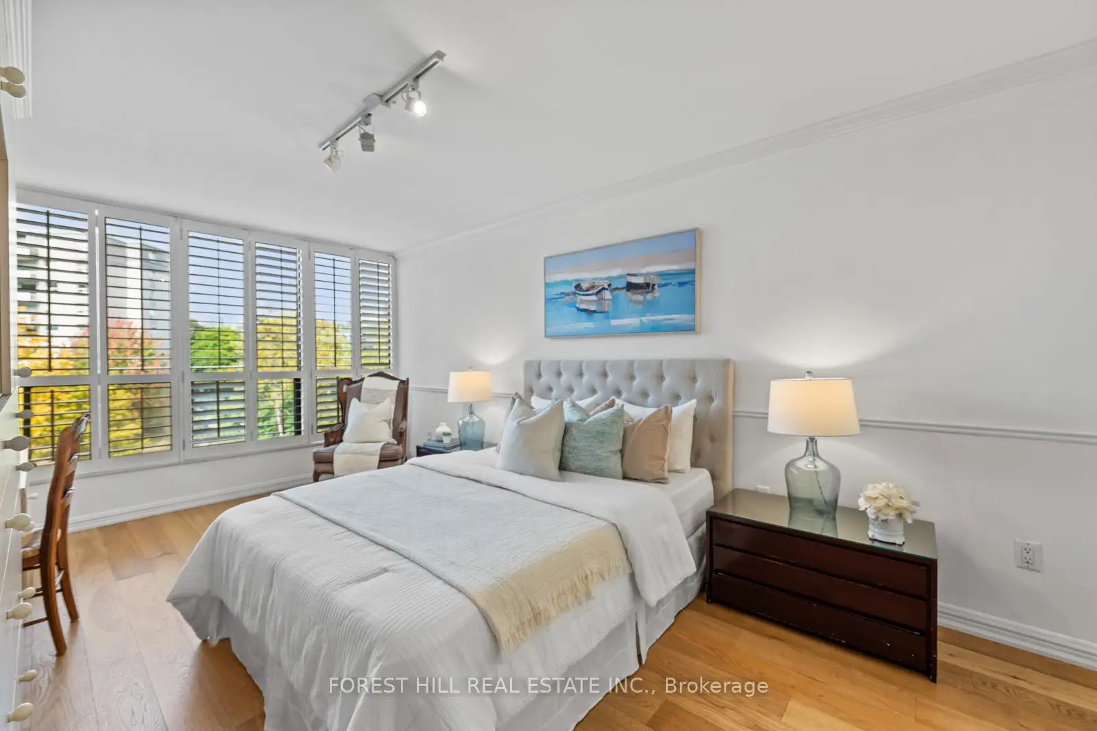 Welcome to this spacious & gracious suite at coveted York Mills Place. This charming home of approximately 1240 sf with no wasted space, offers the perfect setting for a simplified lifestyle without compromise. Wall-to-wall windows with walk-out to the balcony fill the home with natural light, including the open concept kitchen with urban & treetop views. The versatile 2nd bedroom complete with frosted glass French doors & closet, offer maximum versatility as a true 2nd bedroom or as an extension of the living room for your office, yoga studio or creative hobby area. The primary bedroom features a walk-in closet, ensuite & custom built-in's to maximize storage. The walk-in laundry/utility room includes a heat pump to individually control the temperature in your suite. Downsize or right-size in style while enjoying the space & comfort you value. The suite is well located within easy proximity to the elevator & 1 of the 2 parking spaces is on the 4th floor for maximum convenience. The hallways & other common areas are under renovation for a contemporary, sophisticated &fresh update.