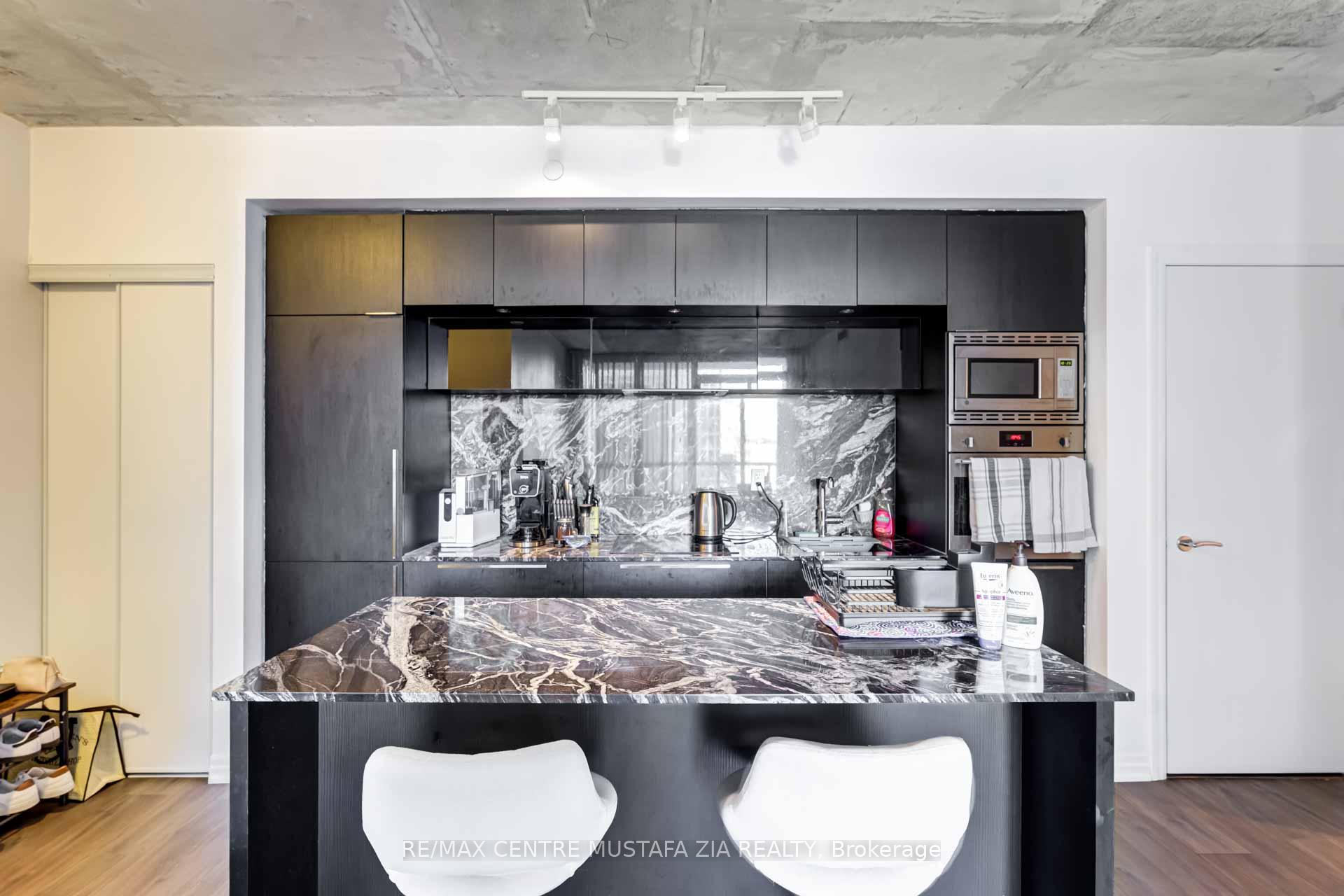 Spectacular 1 Bedroom + Den, Corner Condo Unit located At The Bisha Residence. Elegance And Luxury Throughout The Building And The Suite. Dark Flooring And Kitchen With Dramatic Granite Counter And Backsplash, Integrated Stainless Steel Appliances. Bright Open Concept, 9Ft Ceilings, Floor To Ceiling Windows, Gorgeous View Of The City! Just An Elevator ride From Your Suite Up To One Of The City's Best Rooftop Restaurants W/Expansive City Views.