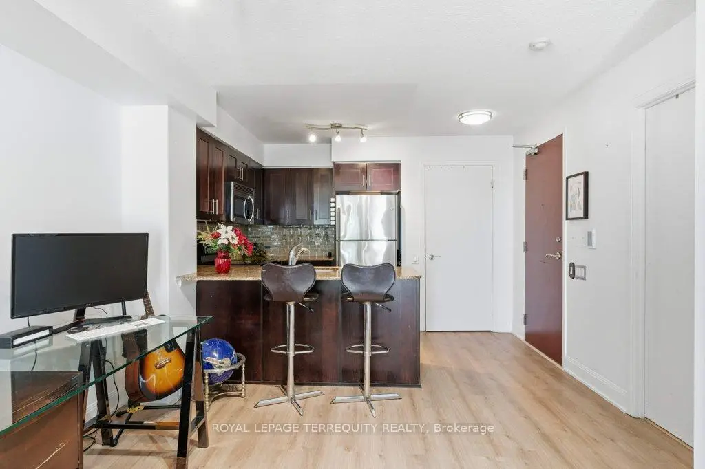 Welcome to Minto's prestigious Quantum community, perfectly located in the heart of Yonge & Eglinton-one of Toronto's most vibrant and desirable neighbourhoods. This beautifully maintained 1-bedroom suite offers a sun-filled open-concept layout with an exceptional South East exposure, bringing in natural light all day long and providing stunning morning and daytime views. Step inside and enjoy engineered hardwood floors throughout, a modern kitchen with granite countertops, breakfast bar, upgraded cabinetry, and stainless steel appliances. The spacious living area flows seamlessly to the bedroom, creating an inviting and functional space perfect for both relaxing and entertaining. Located steps away from the Subway, TTC, restaurants, cafés, shops, grocery stores, entertainment, and the upcoming LRT, you'll enjoy unmatched convenience in one of the city's most connected neighbourhoods.