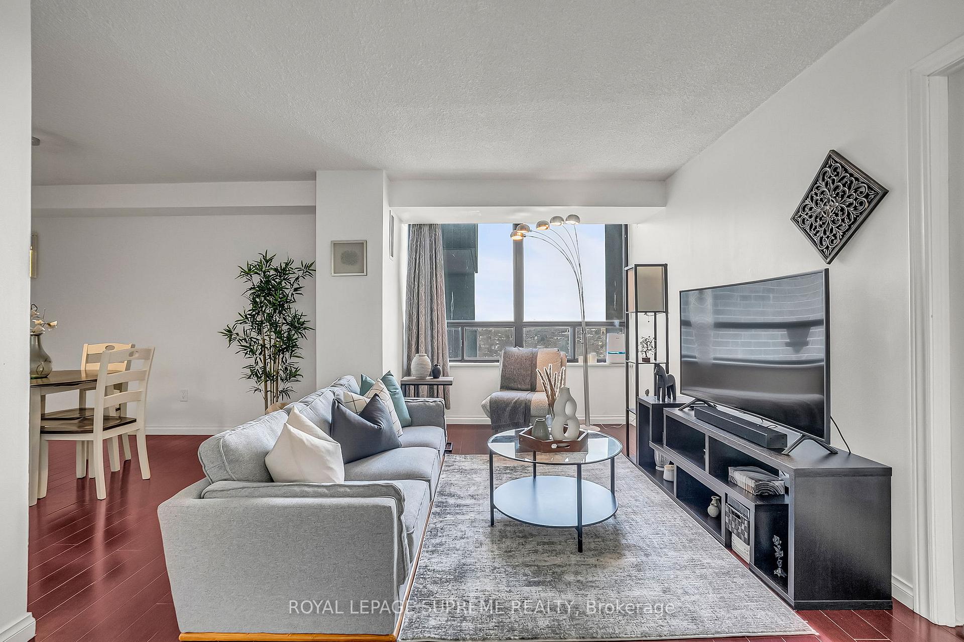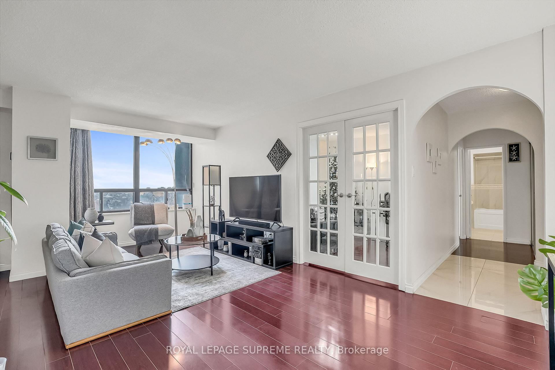 A beautifully updated, family-sized apartment in a prime location. This bright and welcoming 1-bedroom + large den suite offers a highly functional layout with abundant natural light and thoughtful upgrades throughout. The spacious den-complete with French doors-comfortably functions as a second bedroom or a dedicated home office, making it ideal for professionals, couples, or small families. The open-concept living and dining area features upgraded laminate flooring, while the family size eat-in kitchen provides great space for cooking and everyday living. The large primary bedroom includes double closets and new flooring. The den opens onto an east-facing balcony, perfect for morning light and fresh air. Additional highlights include in-suite laundry, gated grounds, and fabulous building amenities. With TTC at your doorstep, you're just steps from Don Mills Subway Station, Fairview Mall, and minutes to the DVP/404/401/407.