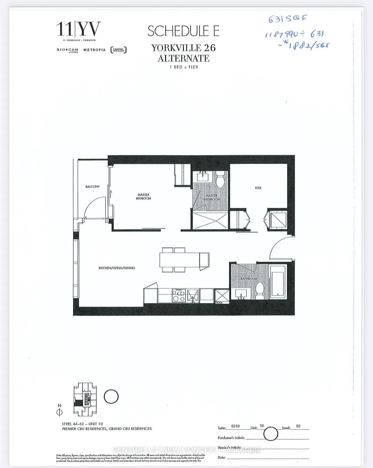 Vacant*Brand New 11 YV Premium Luxury Cono* One Bed W/ Flex Unit , Two Bathrooms, Built by Metropia. High floor w/Best View, Enjoy Living in the Lap of Luxury. Live in a Brand New Suite at the iconic 11YV in the Heart of Yorkville. Exquisite design features meet modern function in this never occupied 1-bedroom + Den residence. Yorkville's most distinguished new address is set in the vibrant Bloor-Yorkville corrido. This beautiful 54th-floor suite offers 9 ft Ceilings sweeping views of downtown Toronto, the lush Rosedale Valley, and beyond. the open-concept layout includes Catering to a modern urban lifestyle, this location put you just Steps from designer boutiques, acclaimed restaurants, upscale nightlife, galleries, and cultural institutions. One of Toronto's most prestigious neighbourhood at your doorstep. Residents enjoy exclusive access to hotel-style amenities, including private lounges, media rooms, a cutting-edge fitness centre, Yoga Room, wine-tasting room, indoor swimming pool, piano lounge and elegant social spaces tailored for refined living at its best. Truly A Must See !!!