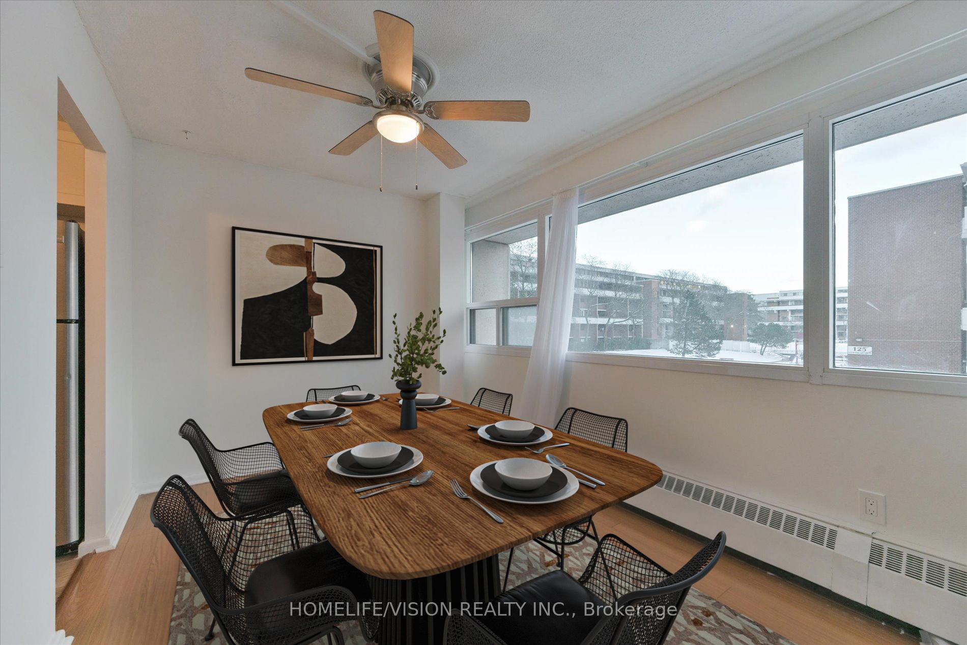 Move-in ready! This beautifully updated 2-bedroom condo offers an open and functional layout with fresh paint throughout, a 4-piece bathroom, storage closet and pantry in the foyer, two generously sized bedrooms, and a large open-concept living and dining area filled with natural light from south-facing views. Enjoy one of the lowest maintenance fees in the area, which include ALL utilities, 1 parking spot, and 1 locker. The building is packed with conveniences and ongoing improvements: onsite daycare, property management office, security, a convenience store, four elevators with short wait times, and excellent amenities including a huge indoor swimming pool, a fully equipped gym, and a party room. Prime location within walking distance to shopping and daily conveniences, very convenient transit access to TTC, Eglinton Crosstown LRT, Future Ontario Line, DVP, schools, shopping at Costco, Real Canadian Superstore, parks, and more. Ideal for first-time buyers, downsizers.